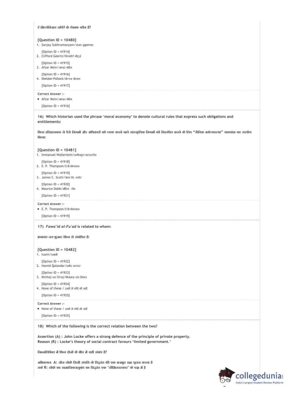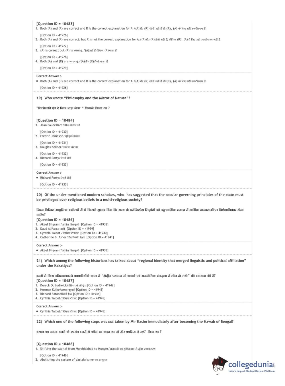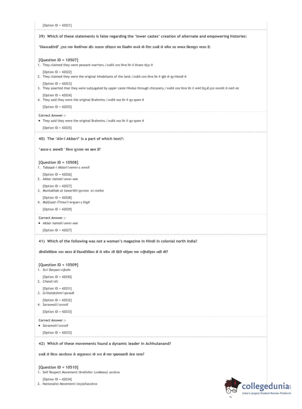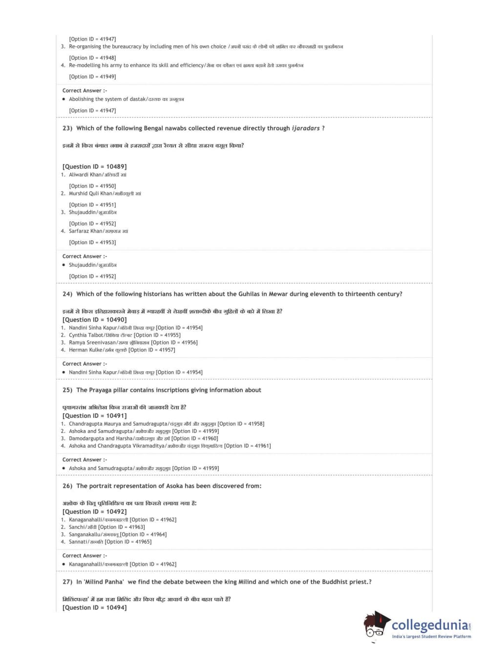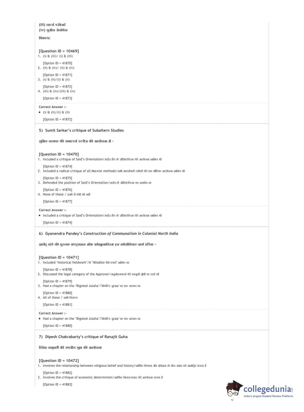 DUET 2020 M.Phil./Ph.D. in History Question Paper with Answer Key PDF Shift 2