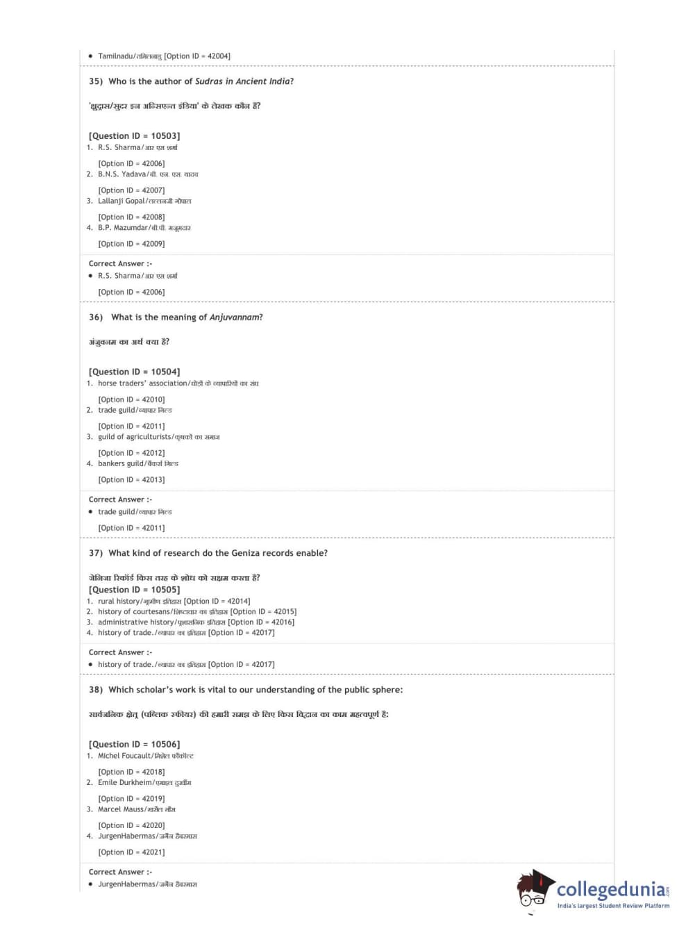 DUET 2020 M.Phil./Ph.D. in History Question paper with answer key pdf conducted on August 9, 2020 in Shift 2 is available for download. The exam was successfully organized by National Testing Agency (NTA). The question paper comprised a total of 50 questions.