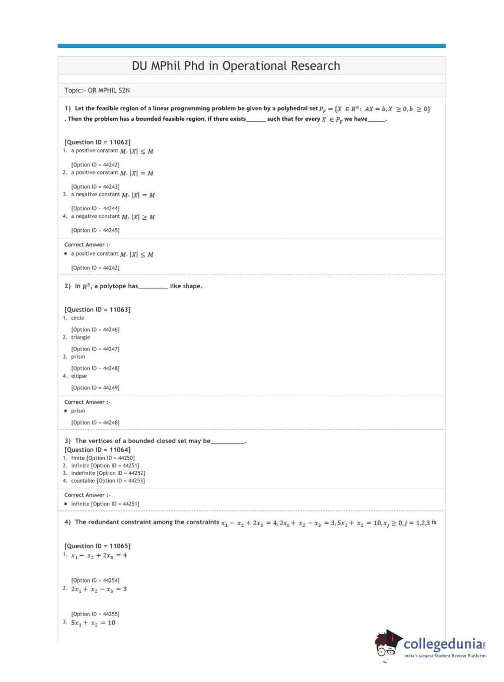 DUET 2020 M.Phil./Ph.D. in Operational Research Question Paper with Answer Key PDF Shift 3