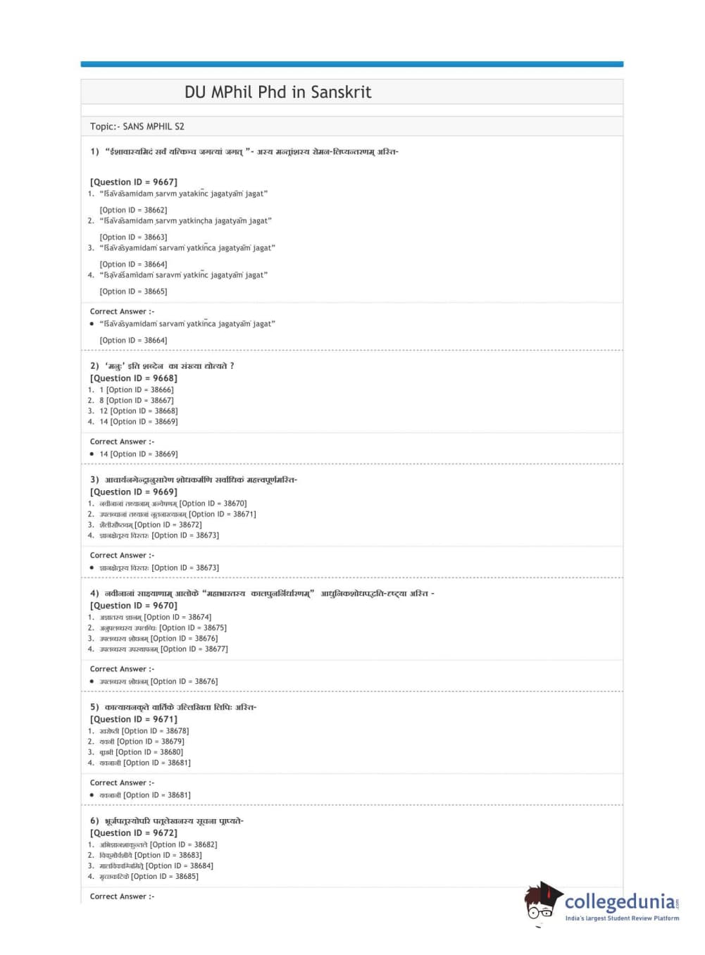 DUET 2020 M.Phil./Ph.D. in Sanskrit Question paper with answer key pdf conducted on October 9, 2020 in Shift 3 is available for download. The exam was successfully organized by National Testing Agency (NTA). The question paper comprised a total of 50 questions.