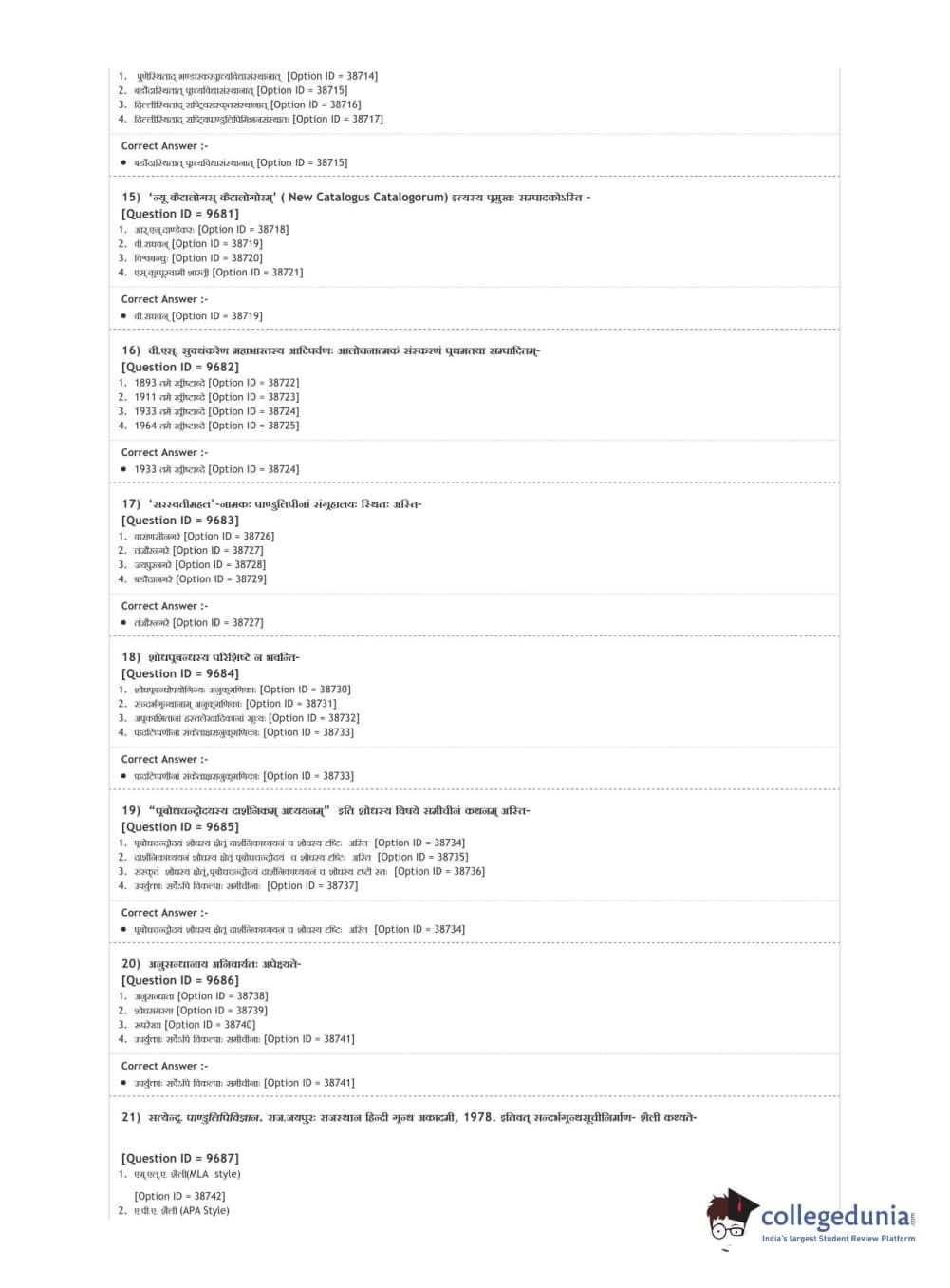 DUET 2020 M.Phil./Ph.D. in Sanskrit Question Paper with Answer Key PDF Shift 3