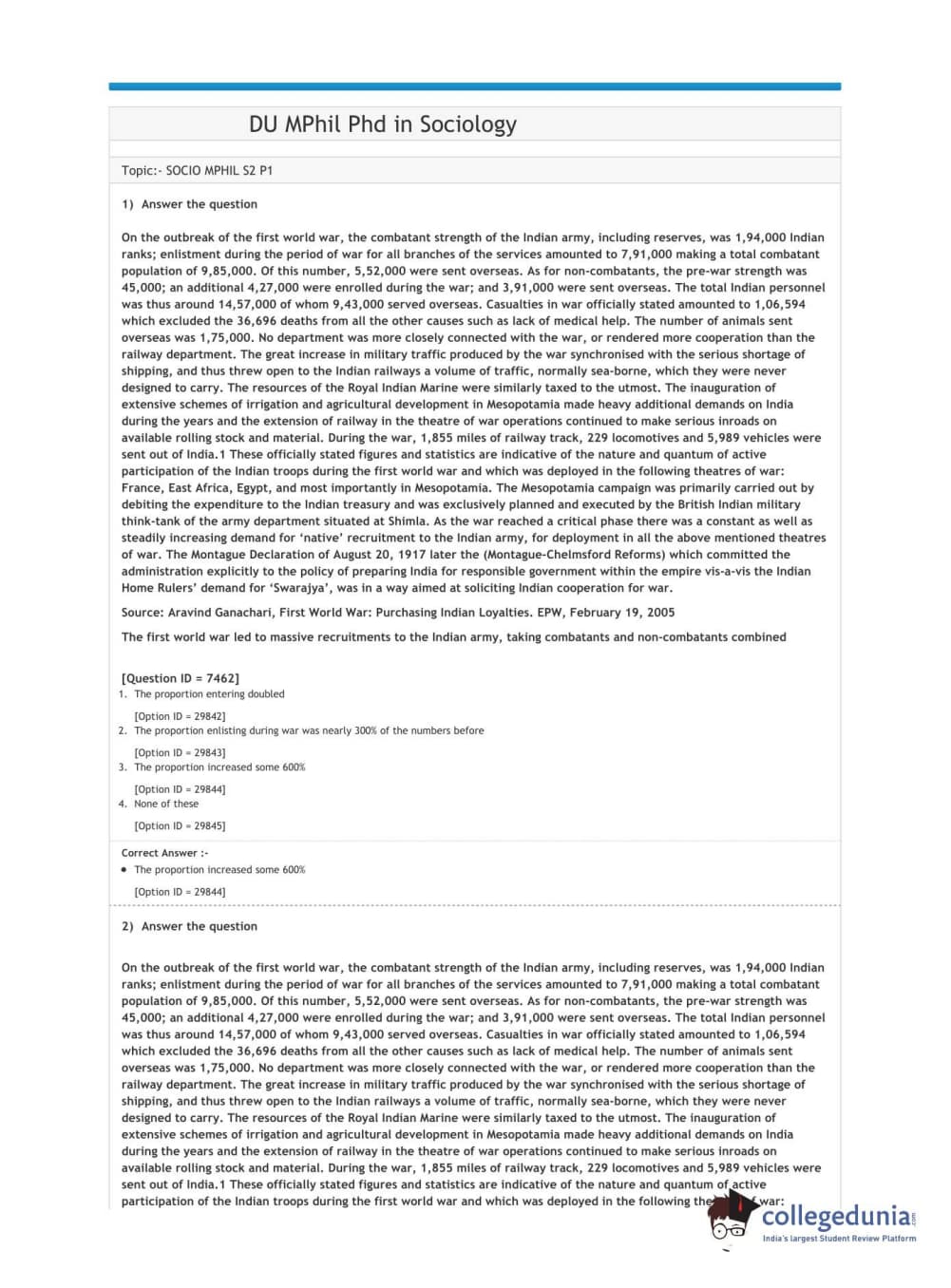DUET 2020 M.Phil./Ph.D. in Sociology Question paper with answer key pdf conducted on November 9, 2020 in Shift 3 is available for download. The exam was successfully organized by National Testing Agency (NTA). The question paper comprised a total of 50 questions.