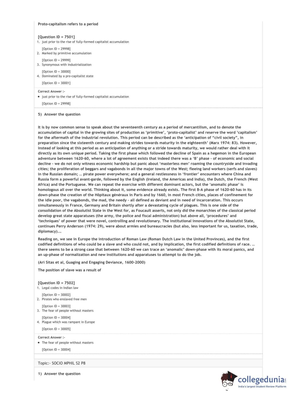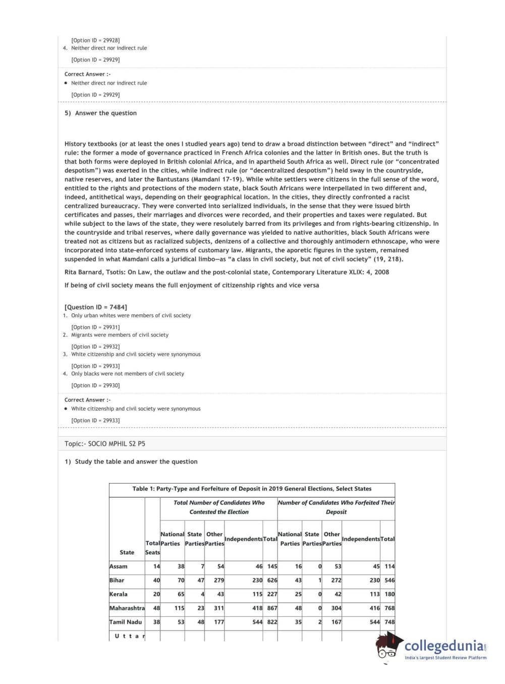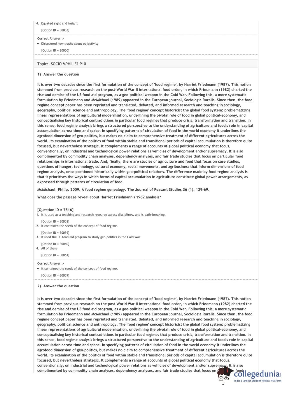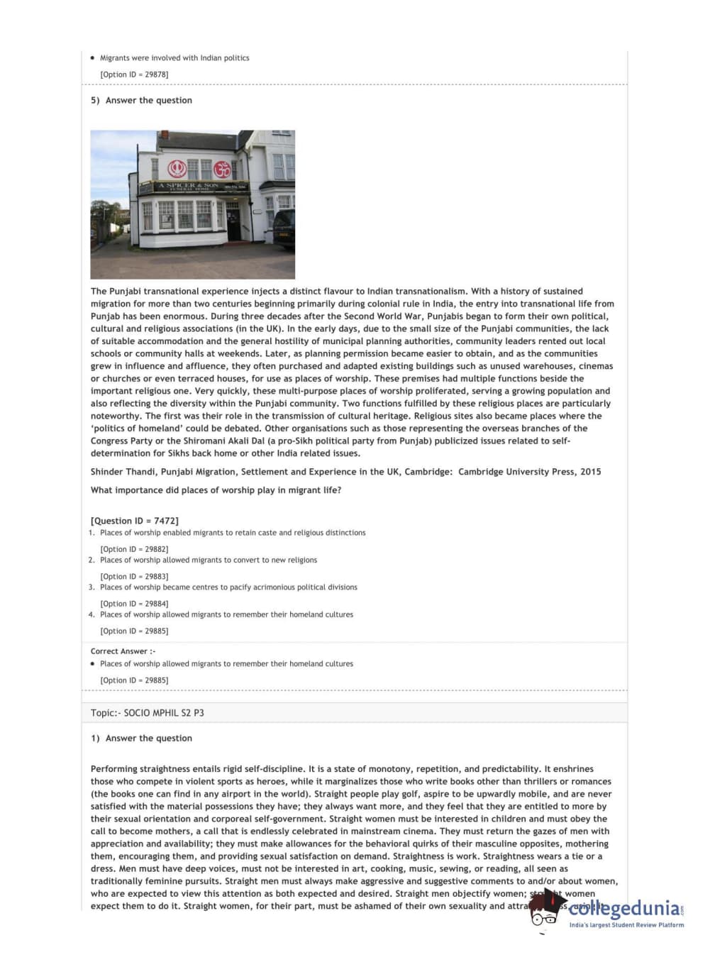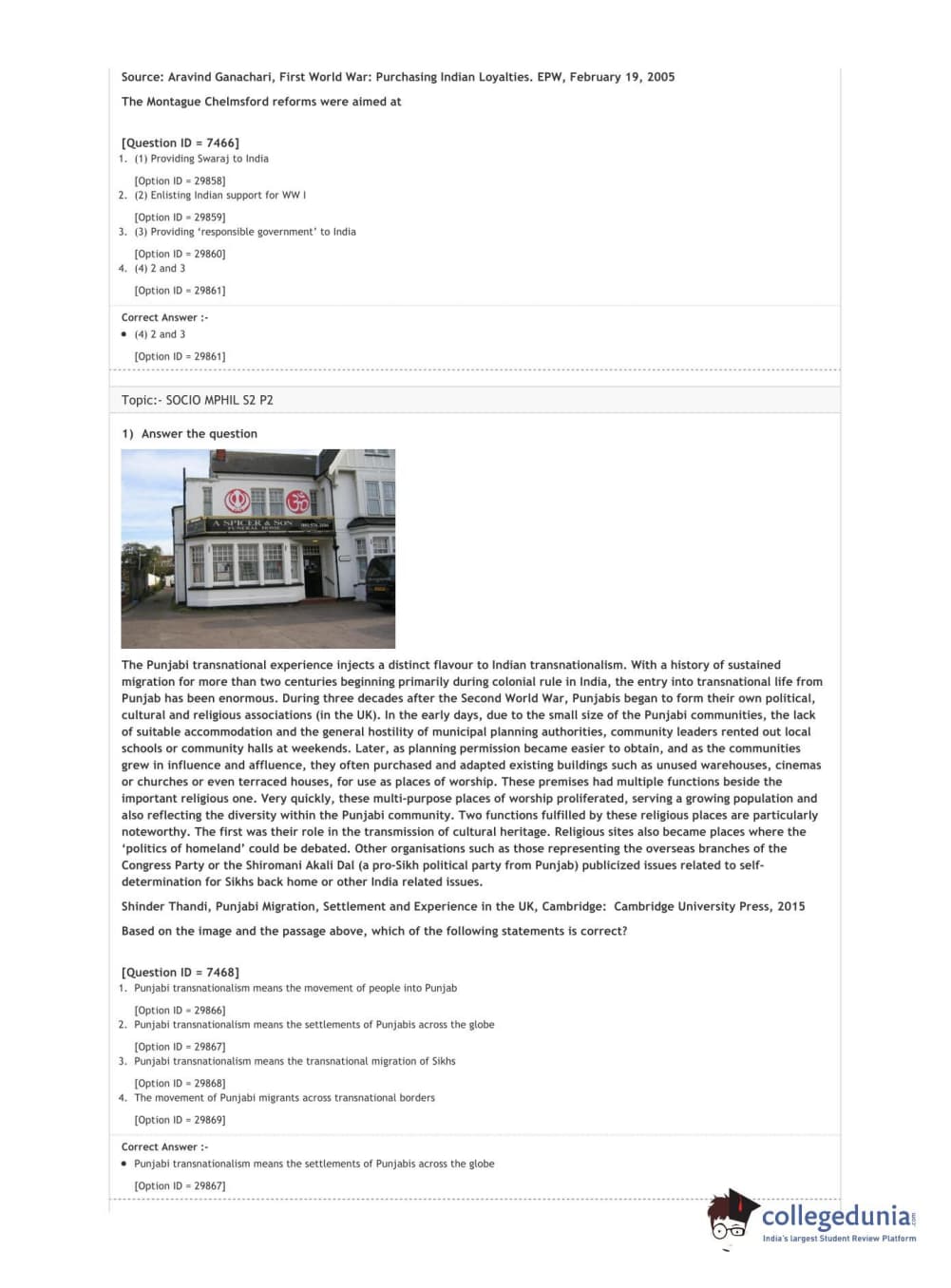 DUET 2020 M.Phil./Ph.D. in Sociology Question Paper with Answer Key PDF Shift 3