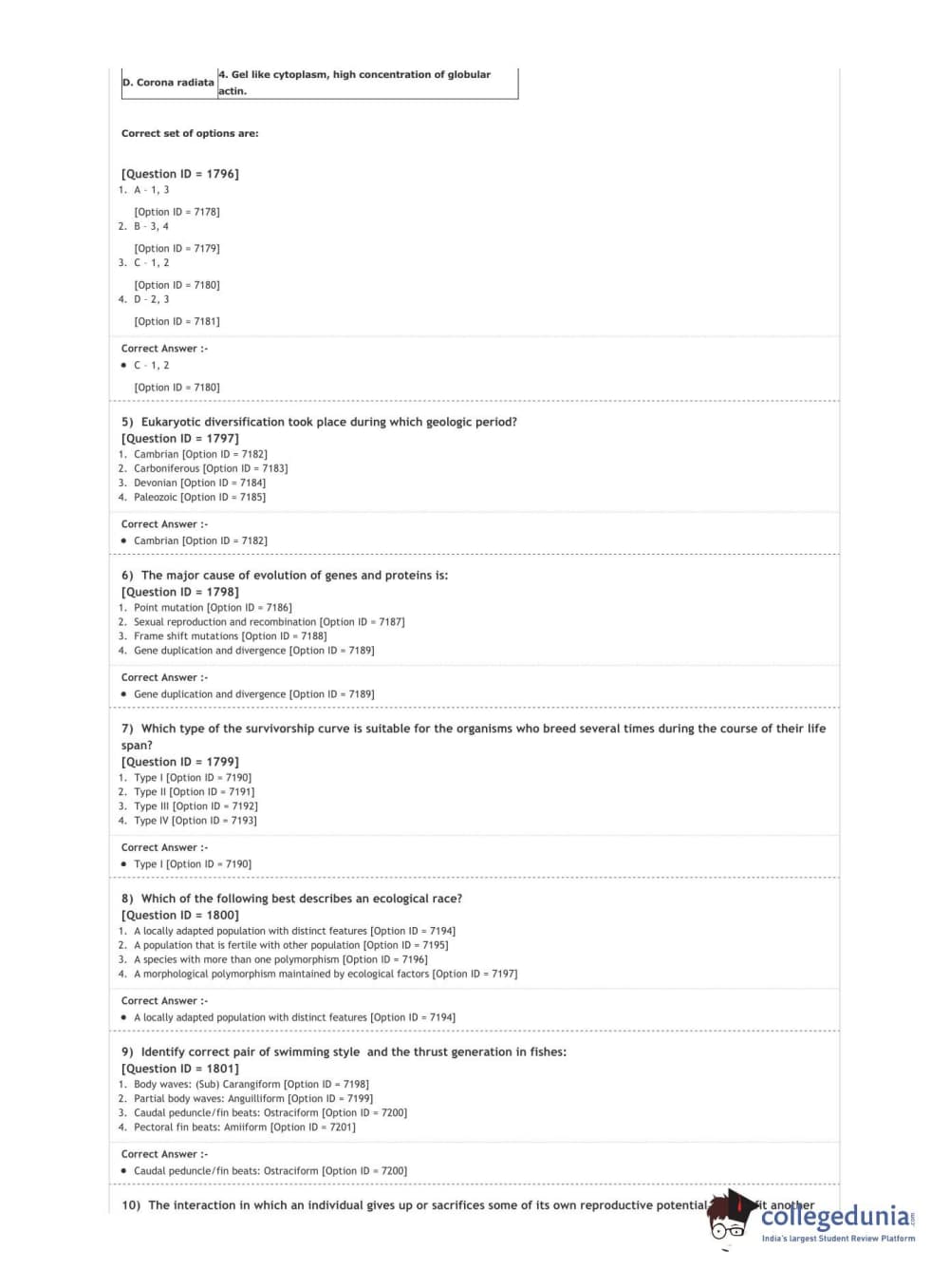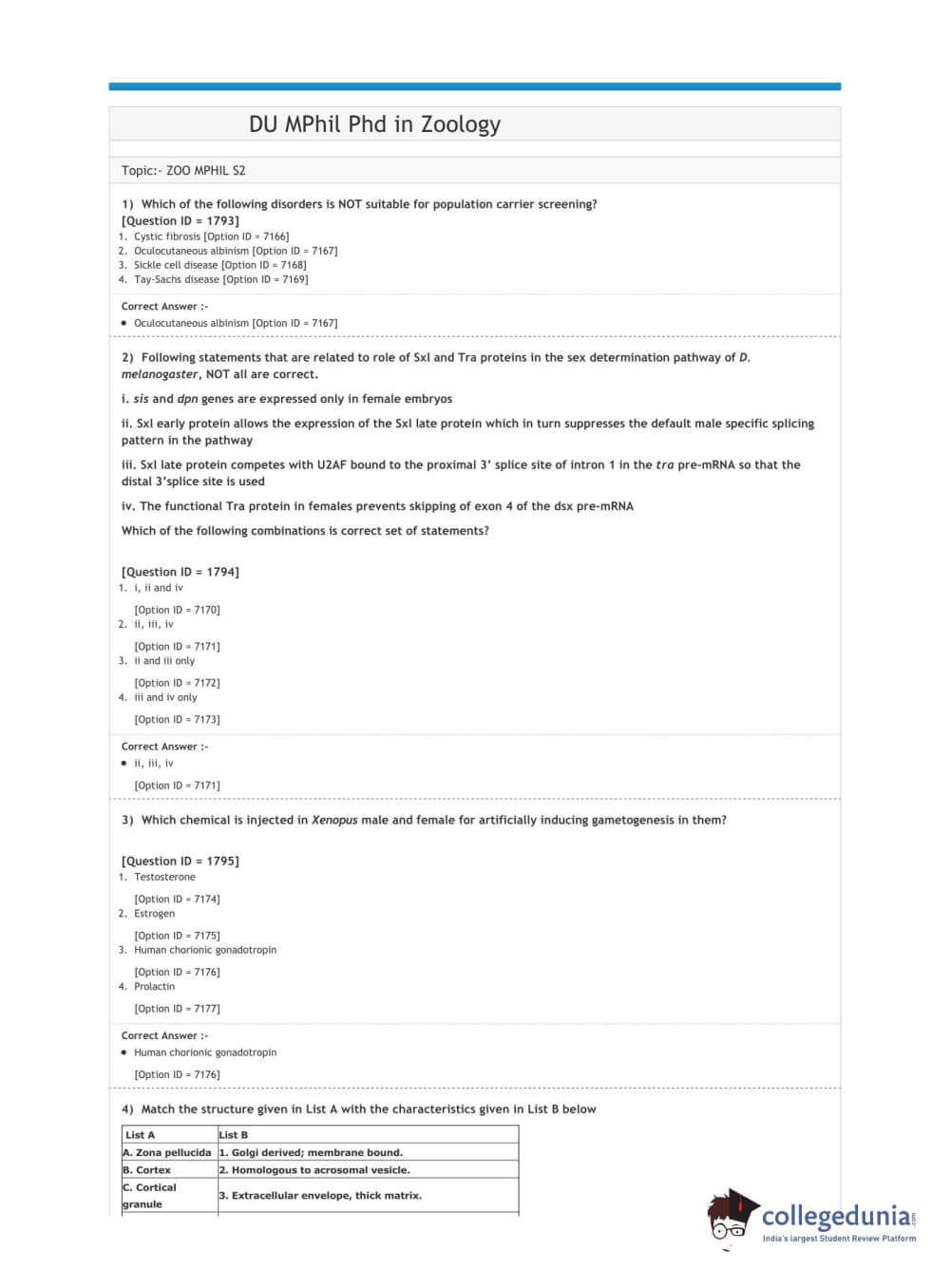 DUET 2020 M.Phil./Ph.D. in Zoology Question Paper with Answer Key PDF Shift 2
