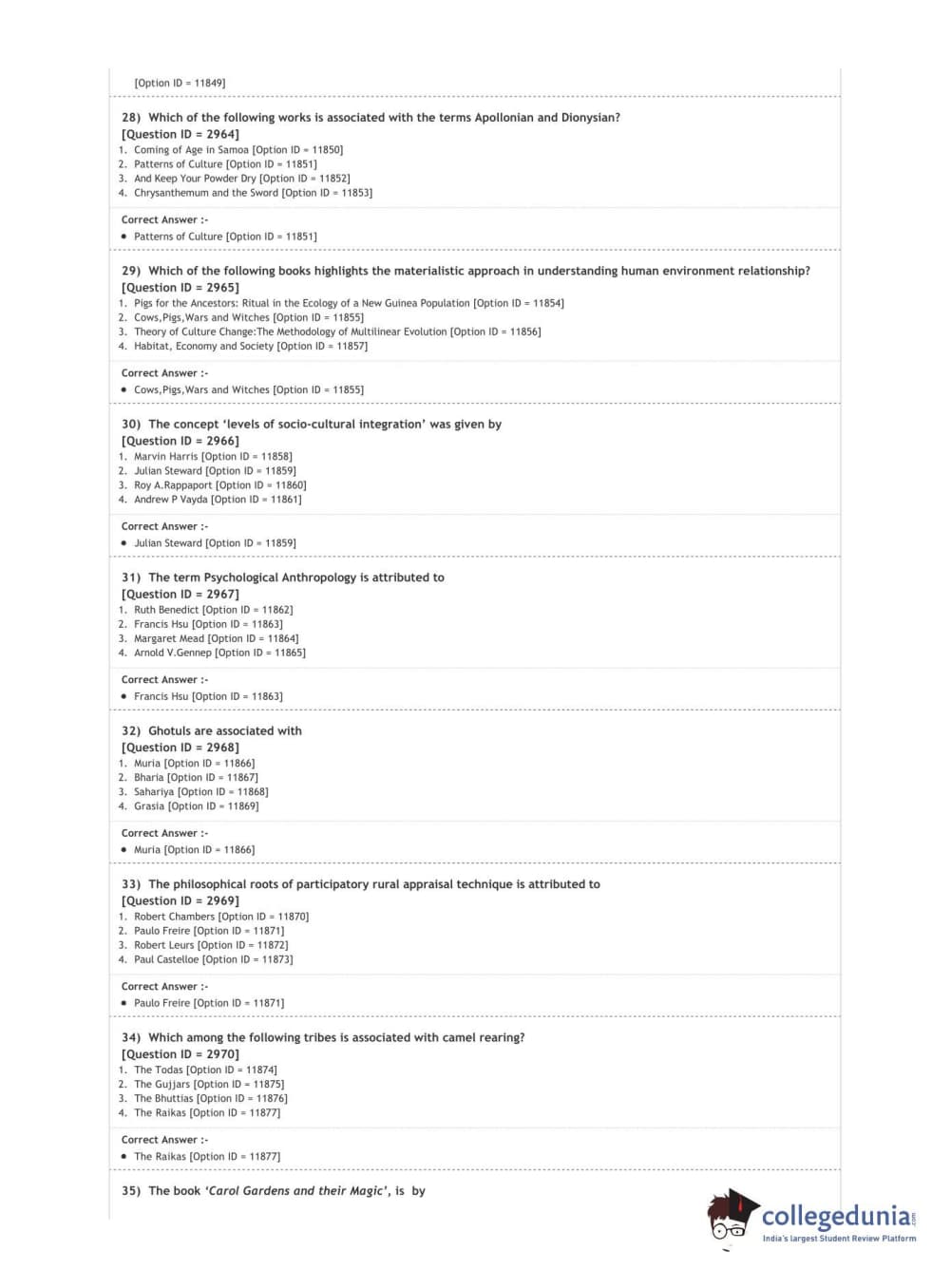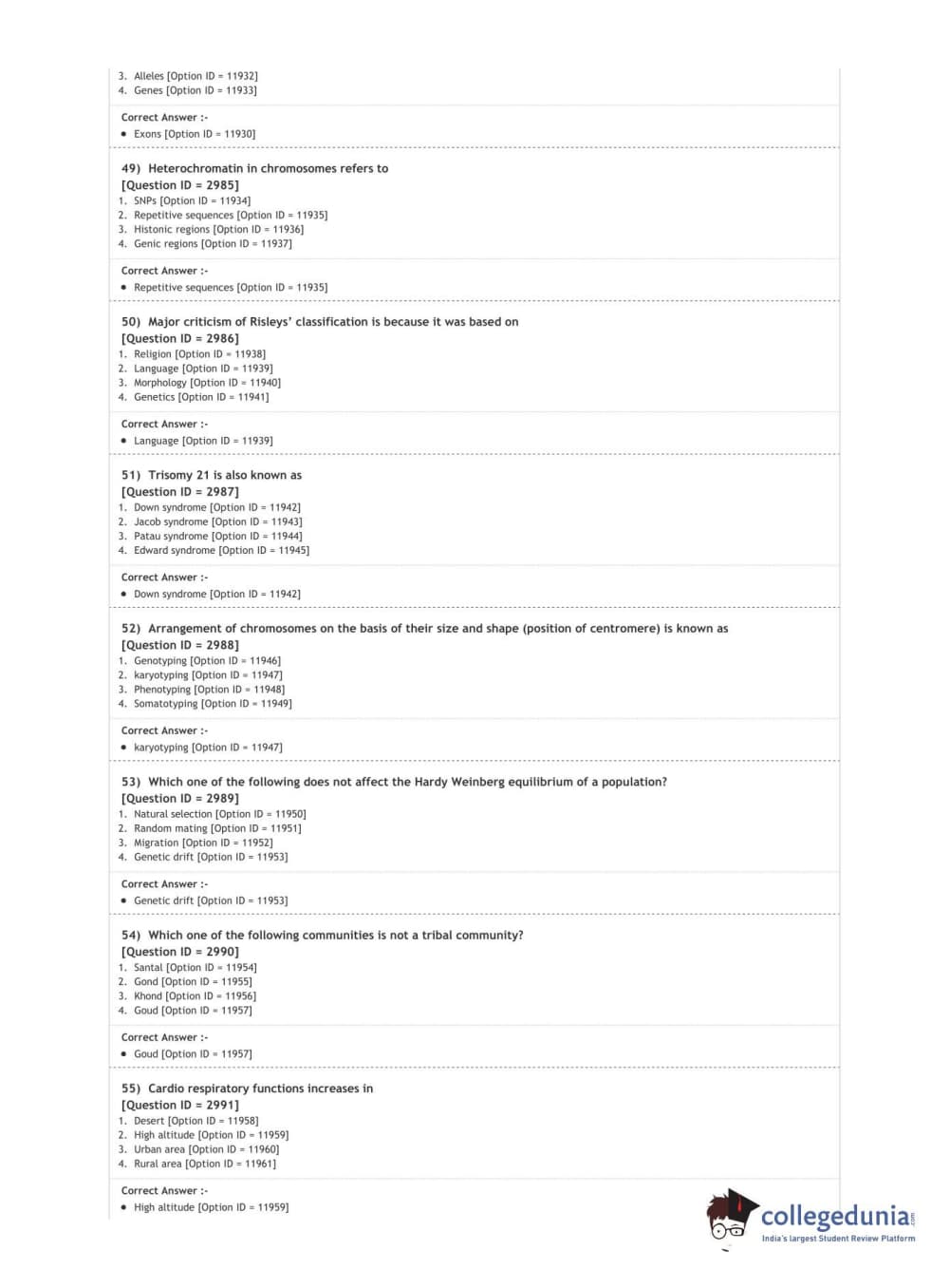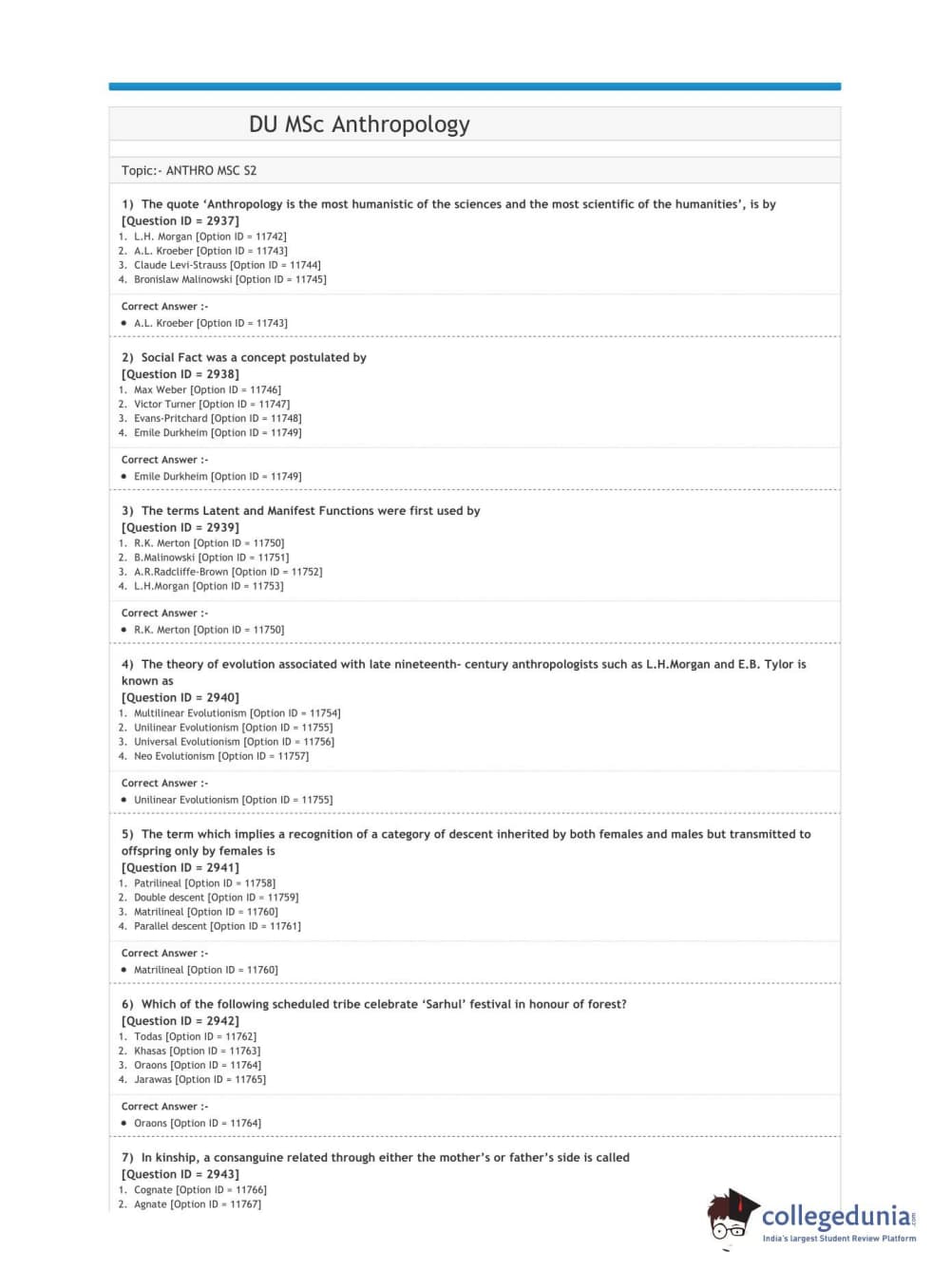 DUET 2020 M.Sc. Anthropology Question paper with answer key pdf conducted on October 9, 2020 in Shift 1 is available for download. The exam was successfully organized by National Testing Agency (NTA). The question paper comprised a total of 100 questions.