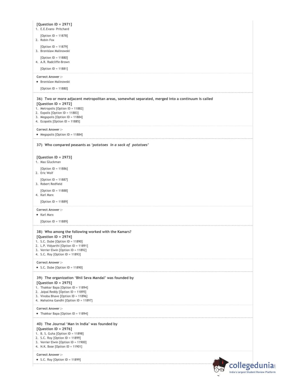 DUET 2020 M.Sc. Anthropology Question Paper with Answer Key PDF Shift 1