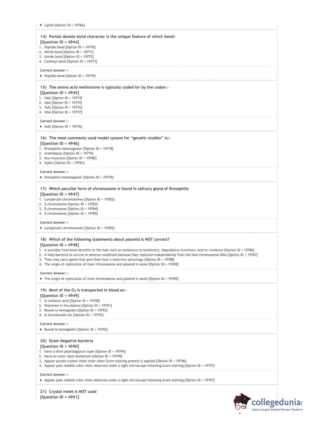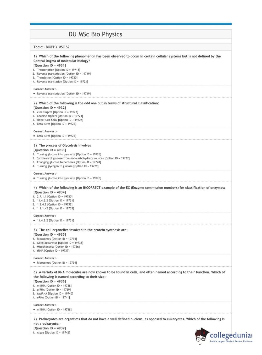 DUET 2020 M.Sc. Bio-Physics Question paper with answer key pdf conducted on July 9, 2020 in Shift 1 is available for download. The exam was successfully organized by National Testing Agency (NTA). The question paper comprised a total of 100 questions.