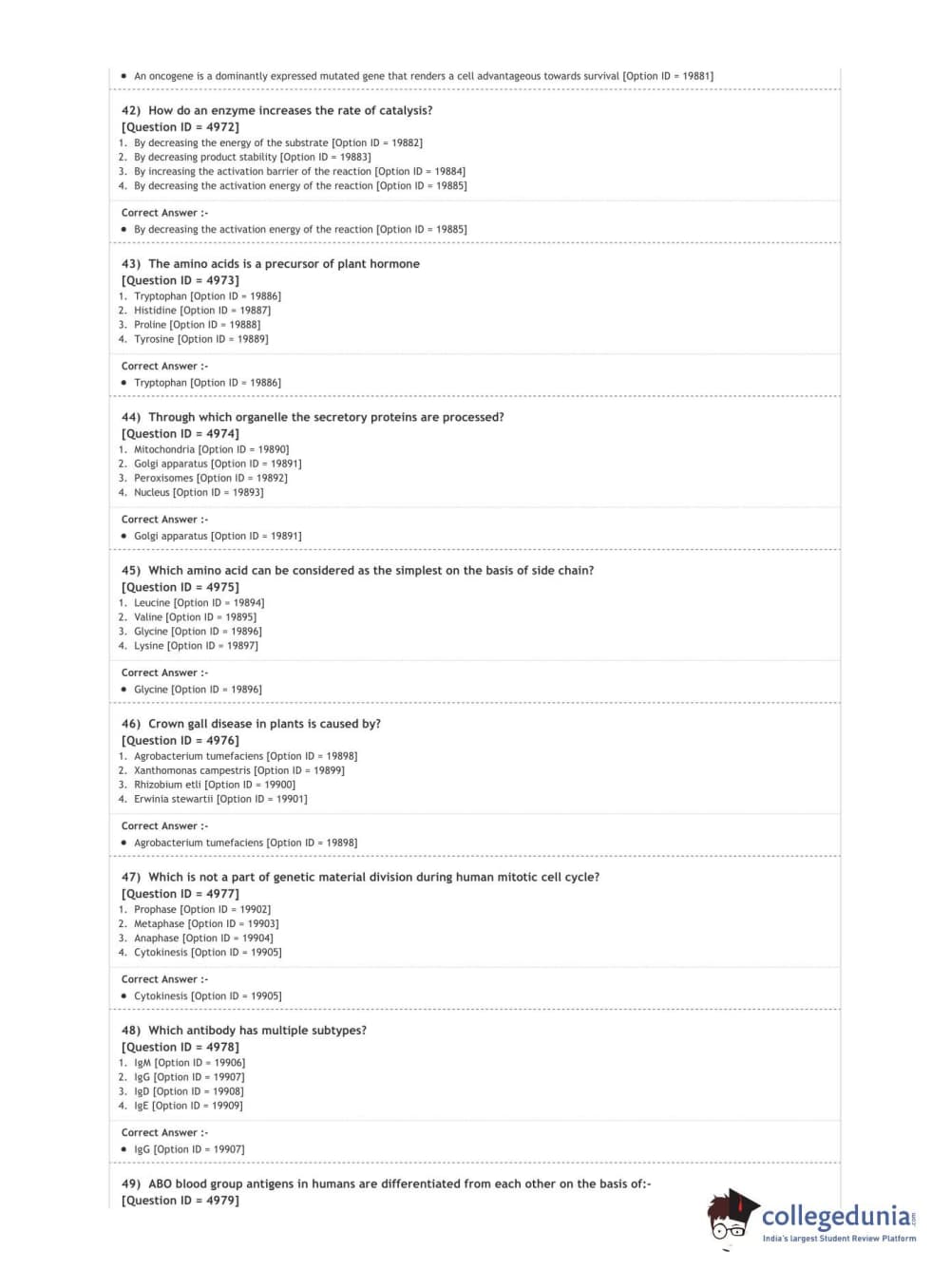 DUET 2020 M.Sc. Bio-Physics Question Paper with Answer Key PDF Shift 1