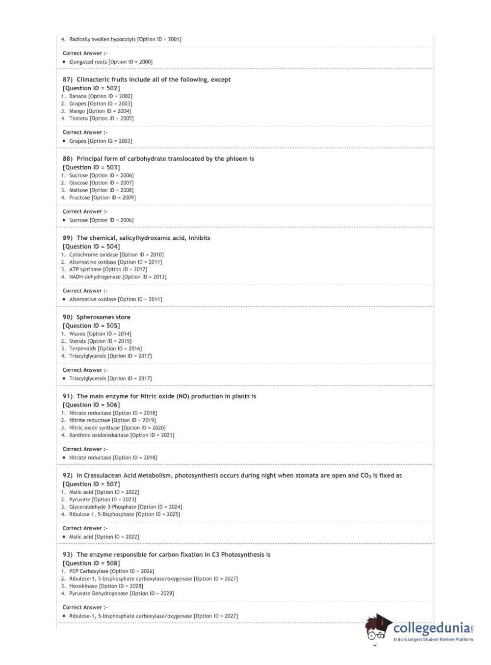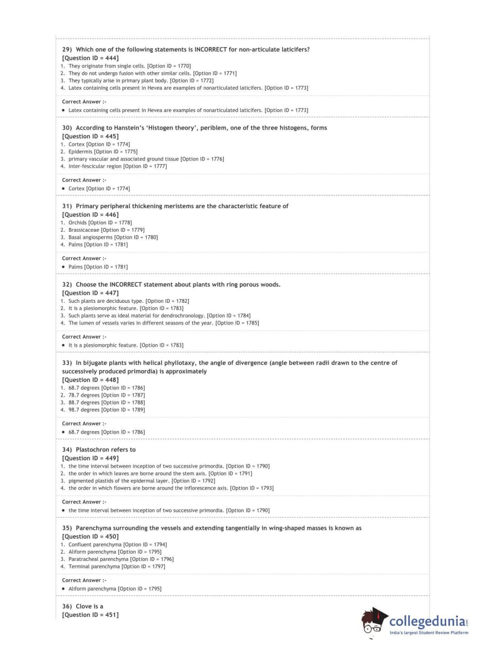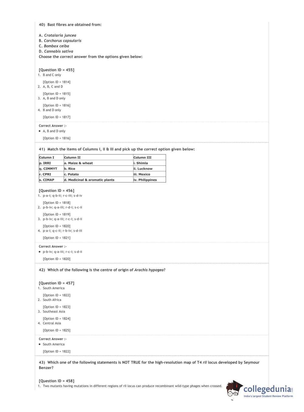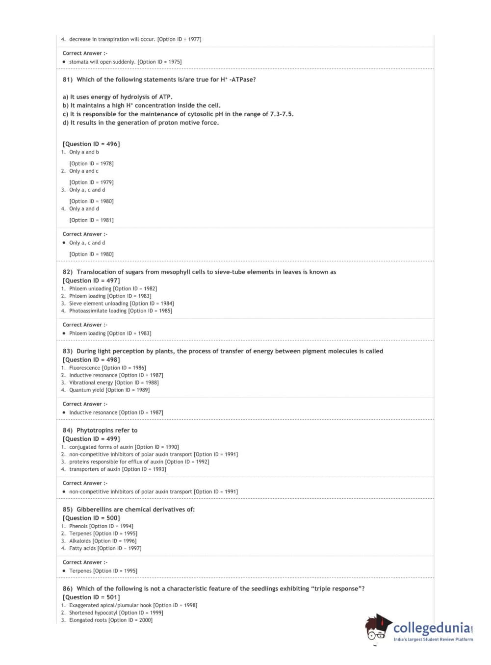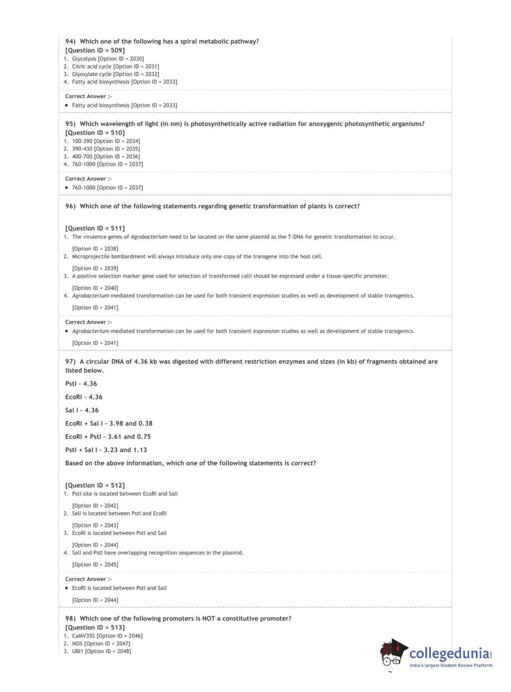DUET 2020 M.Sc. Botany Question Paper with Answer Key PDF Shift 3