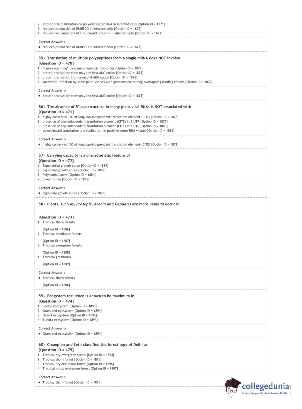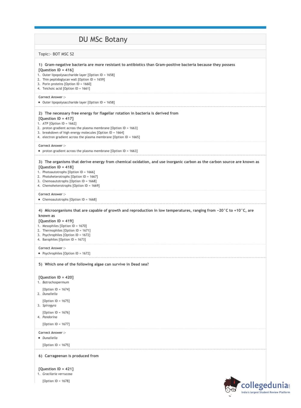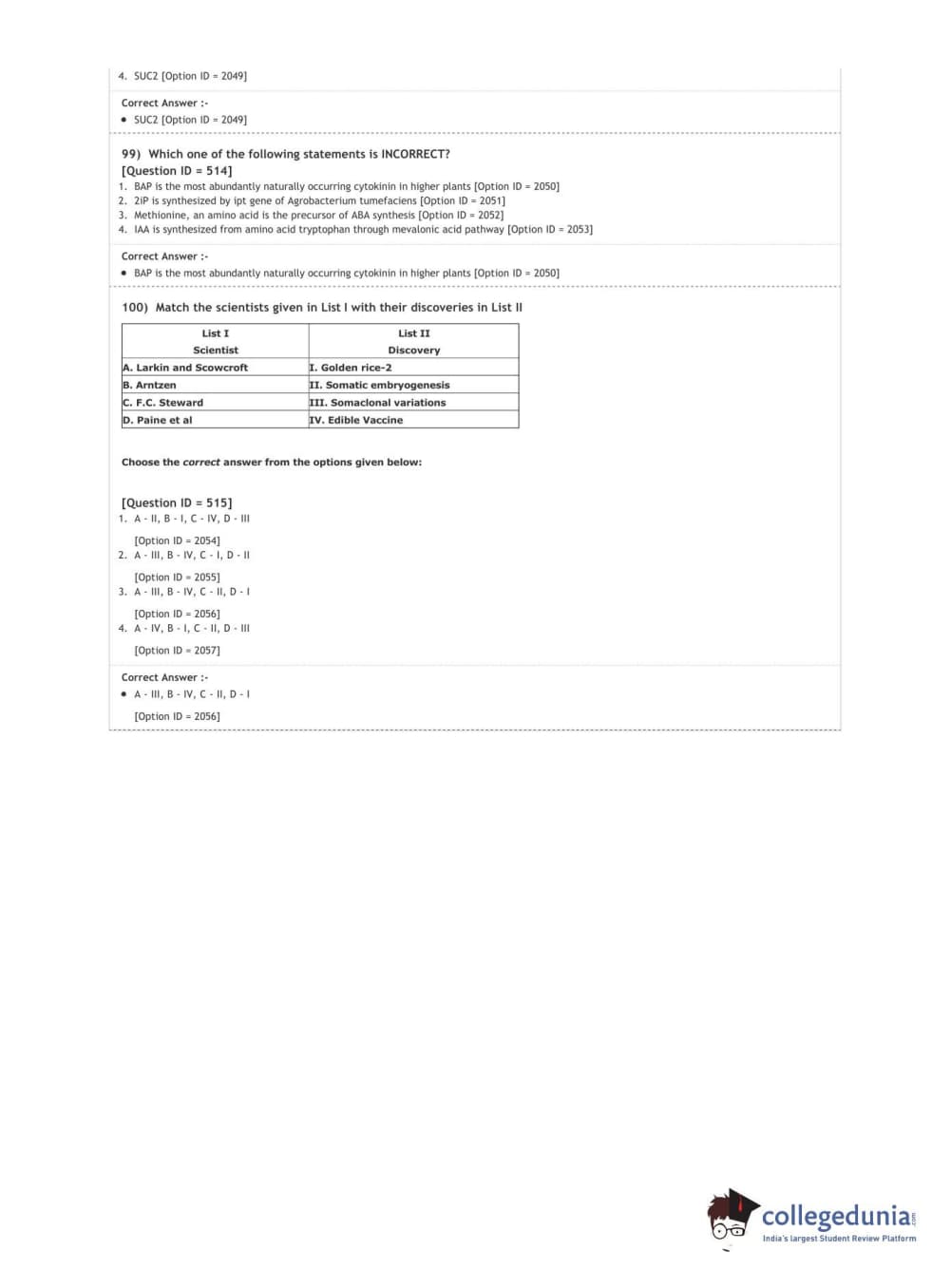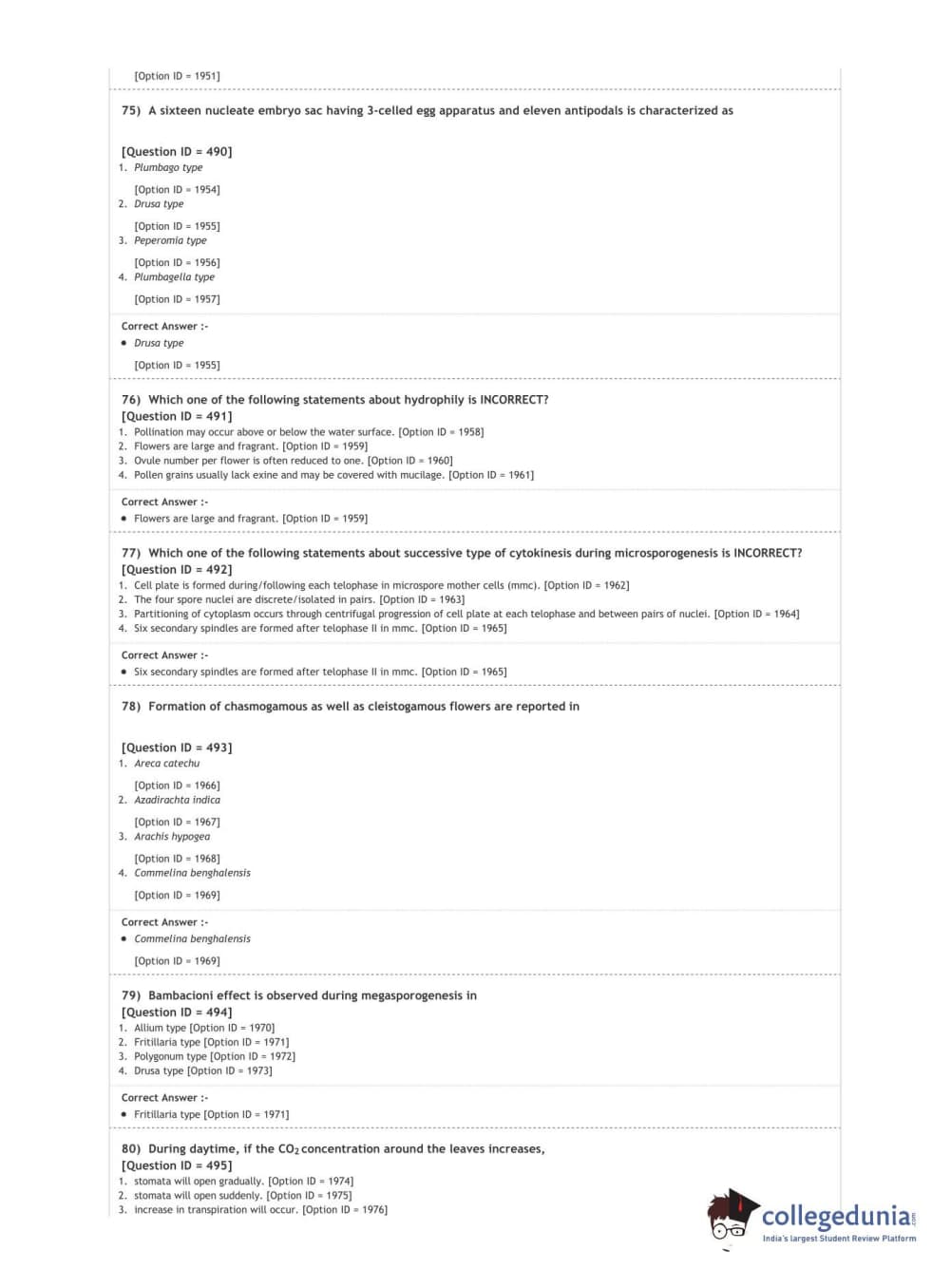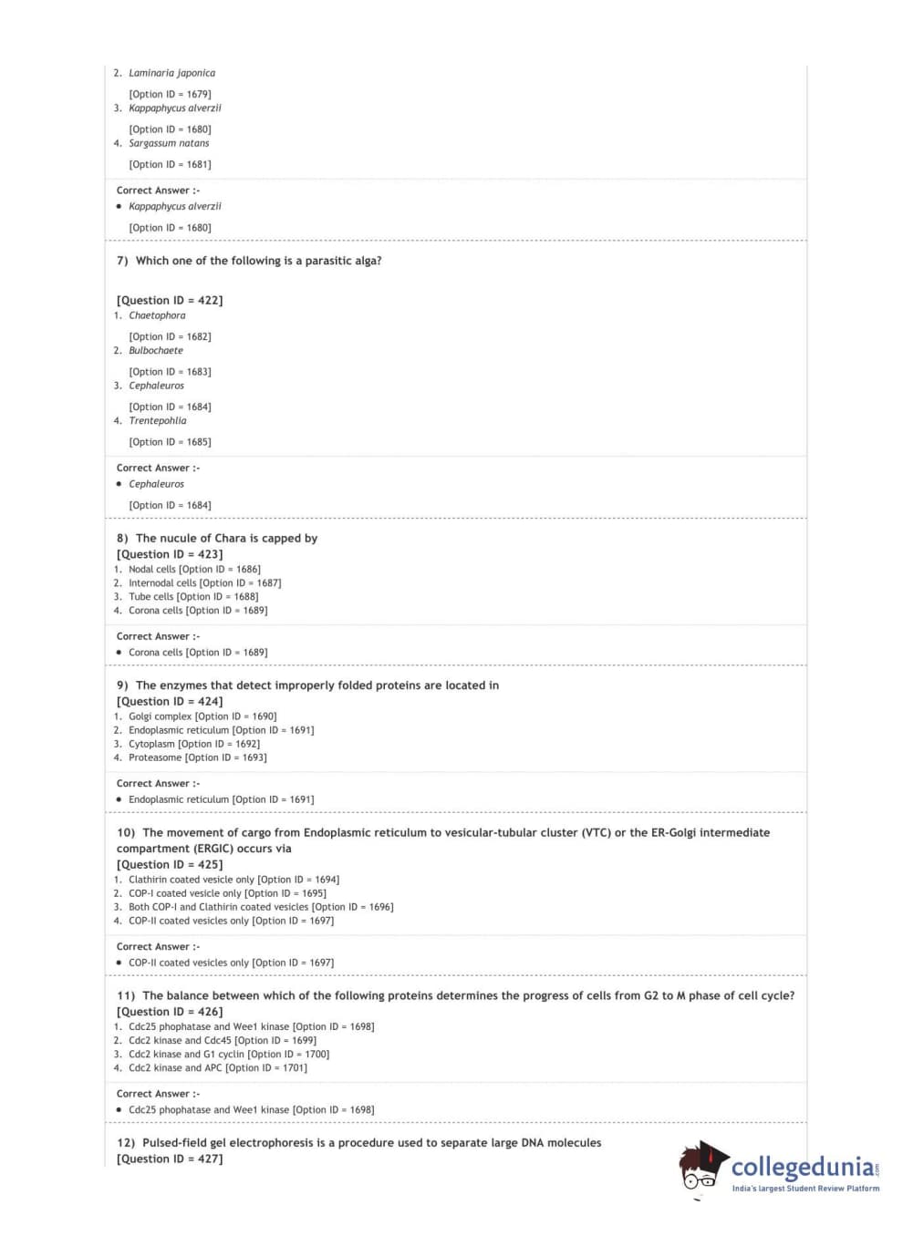 DUET 2020 M.Sc. Botany Question Paper with Answer Key PDF Shift 3