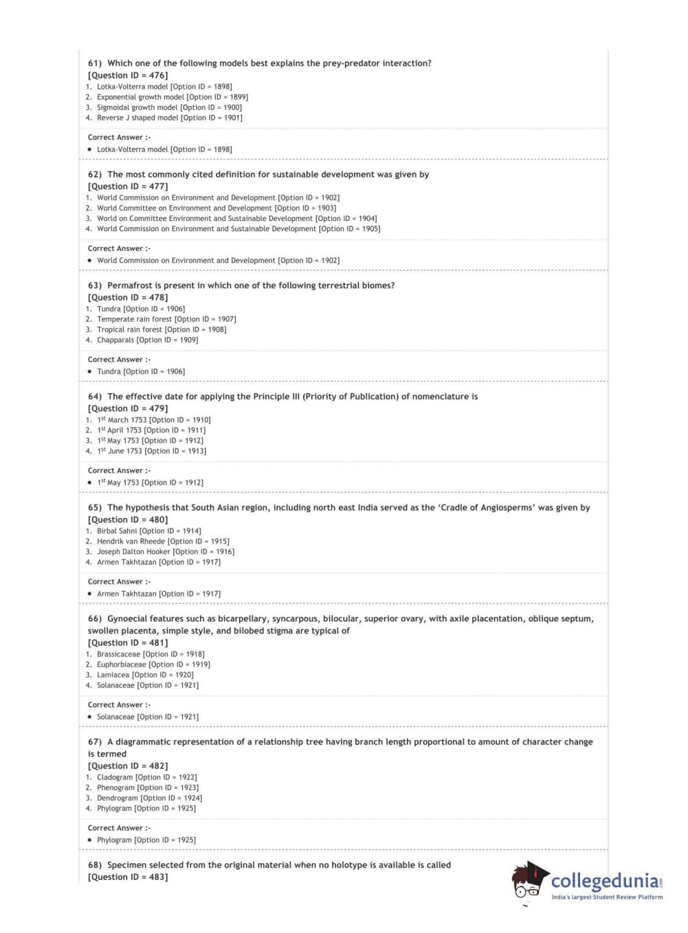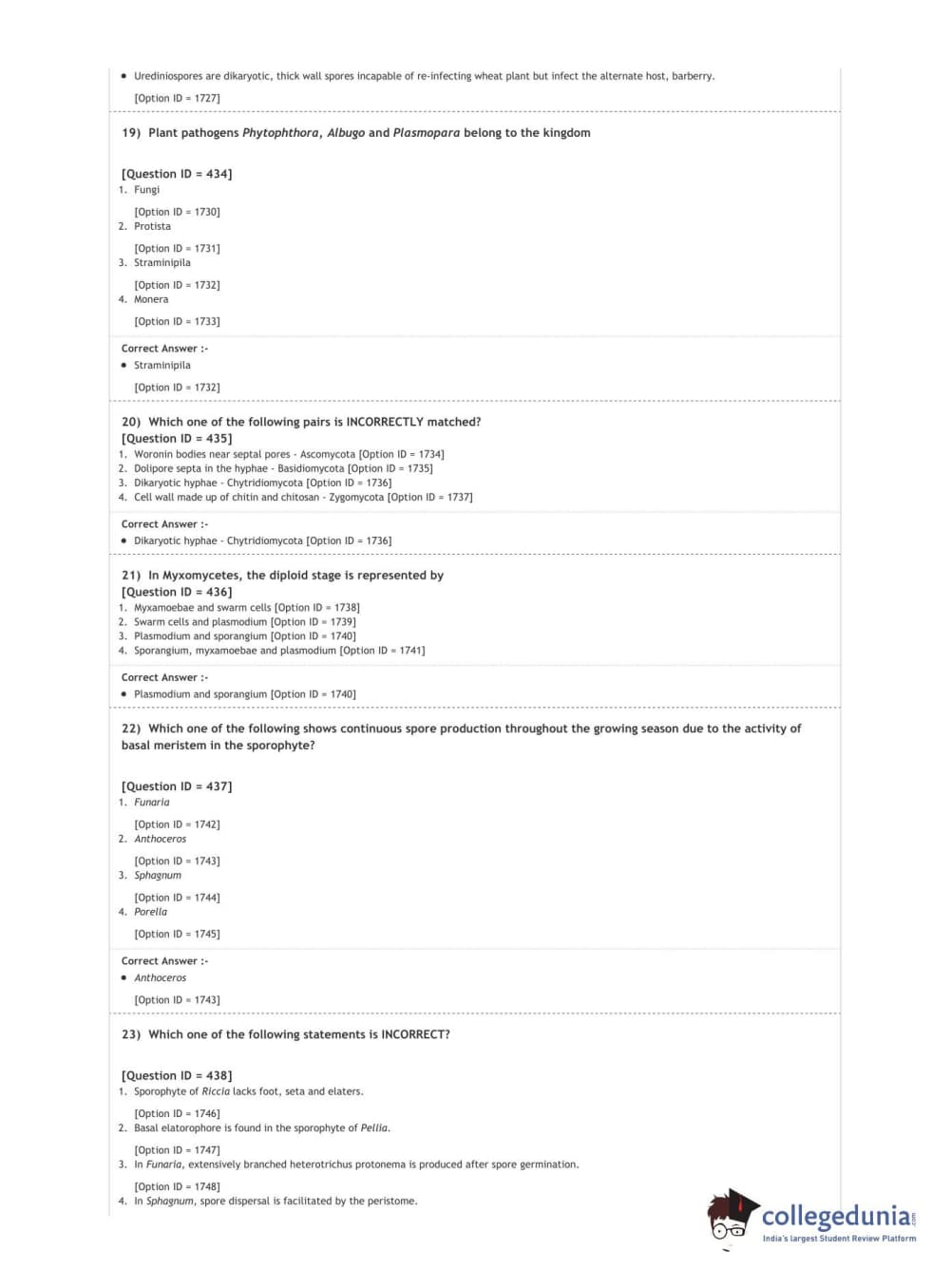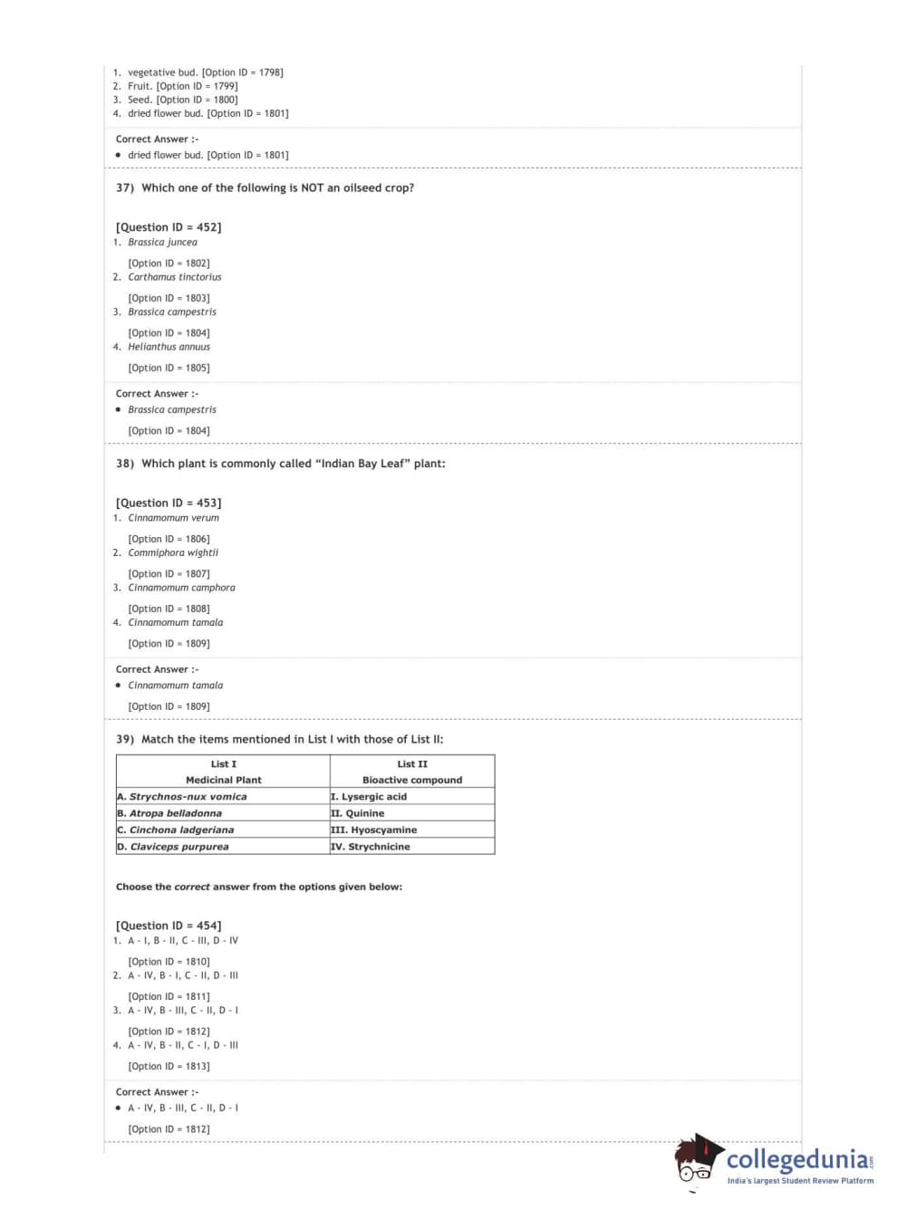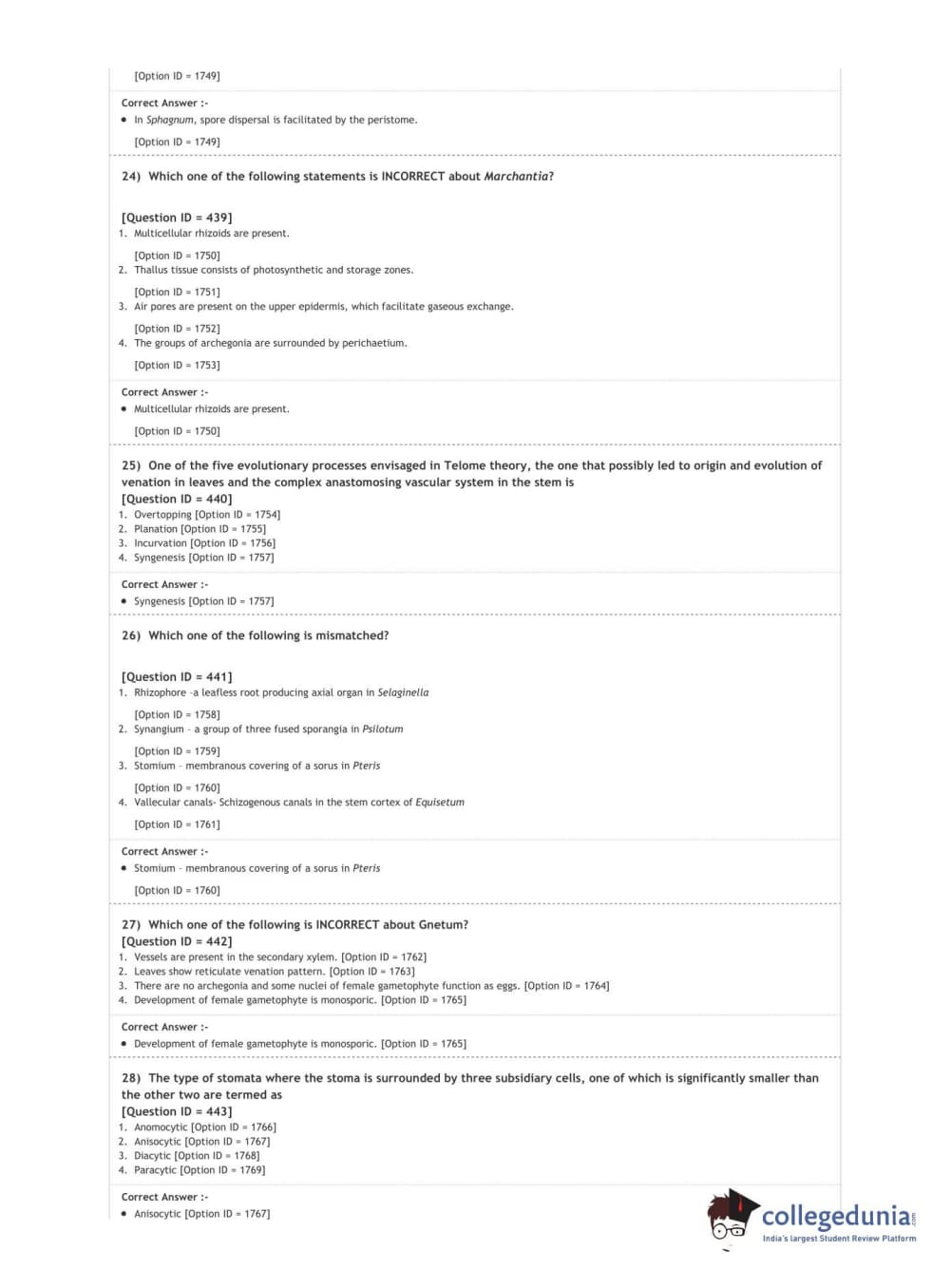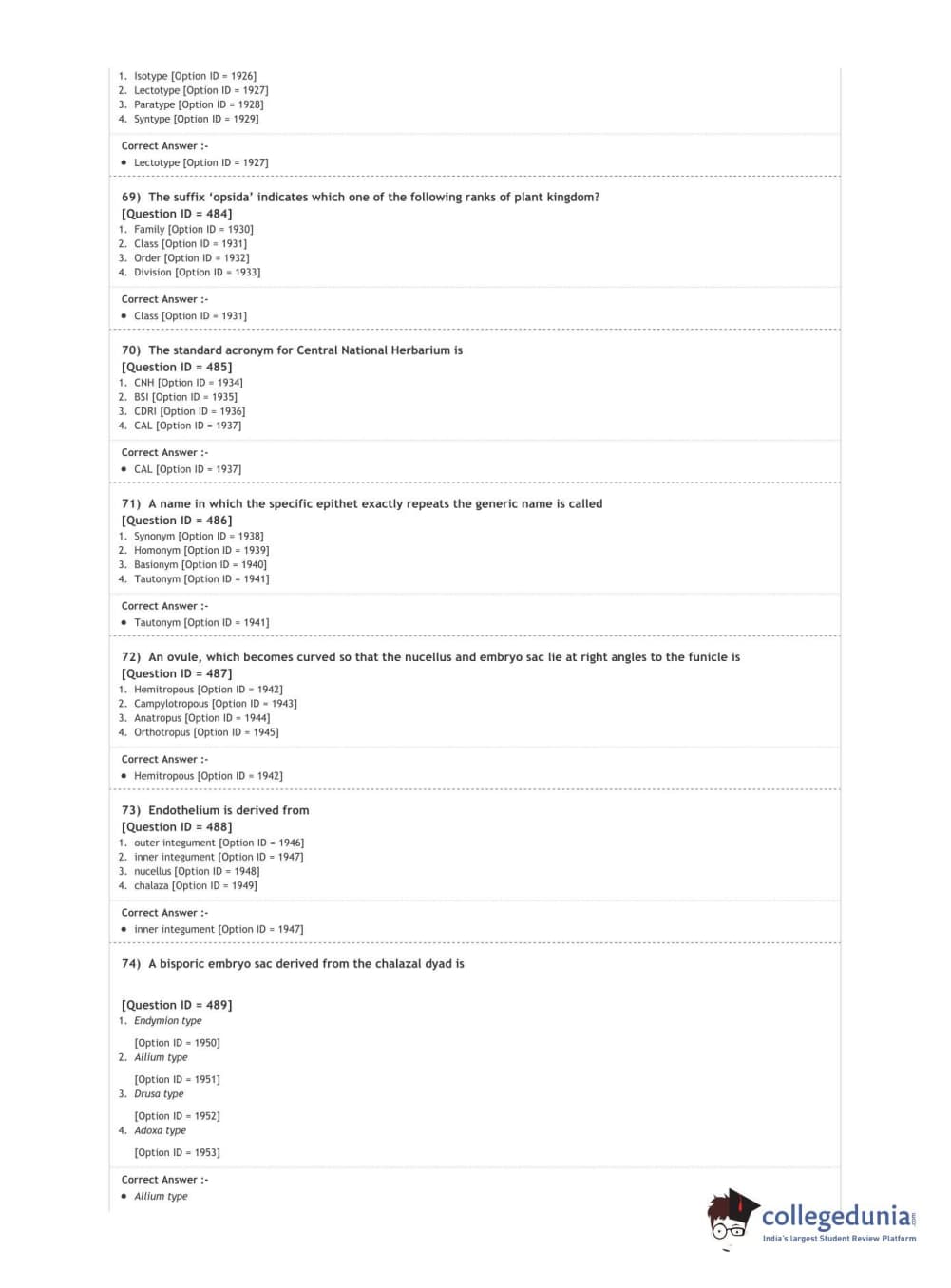 DUET 2020 M.Sc. Botany Question Paper with Answer Key PDF Shift 3