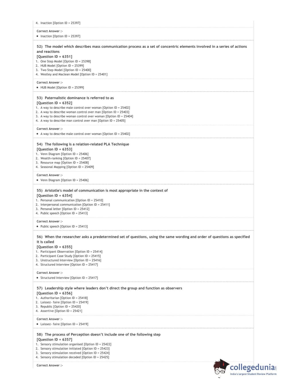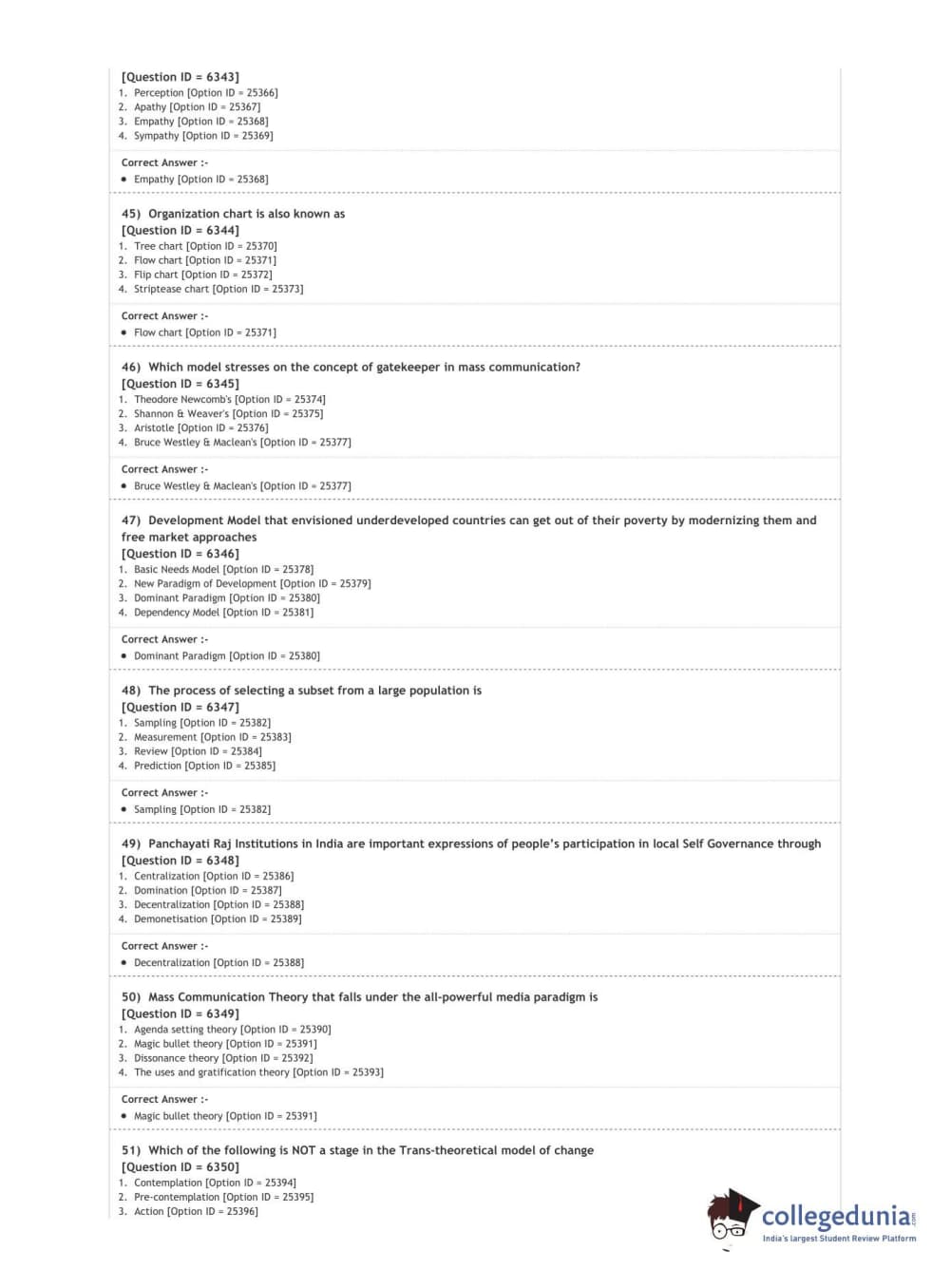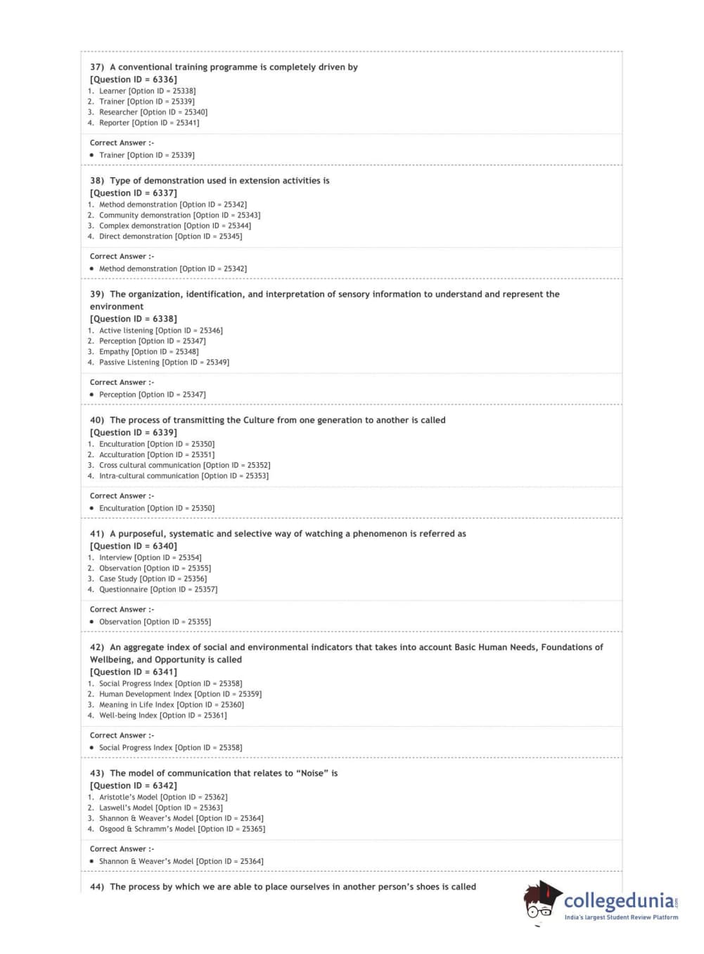 DUET 2020 M.Sc. Development Communication and Extension Question Paper with Answer Key PDF Shift 2