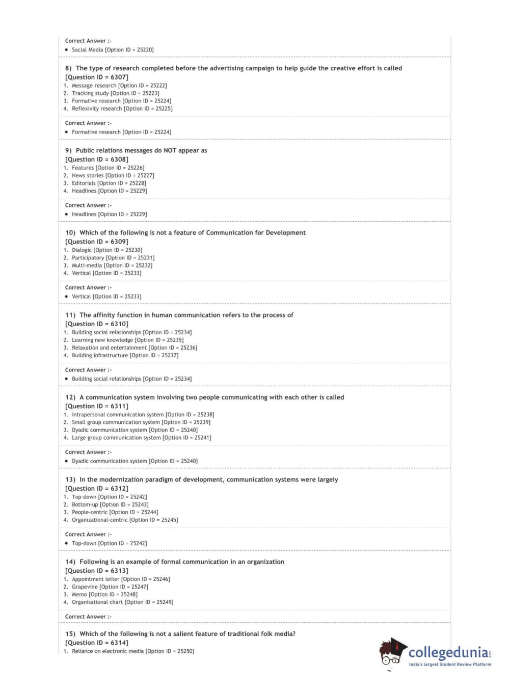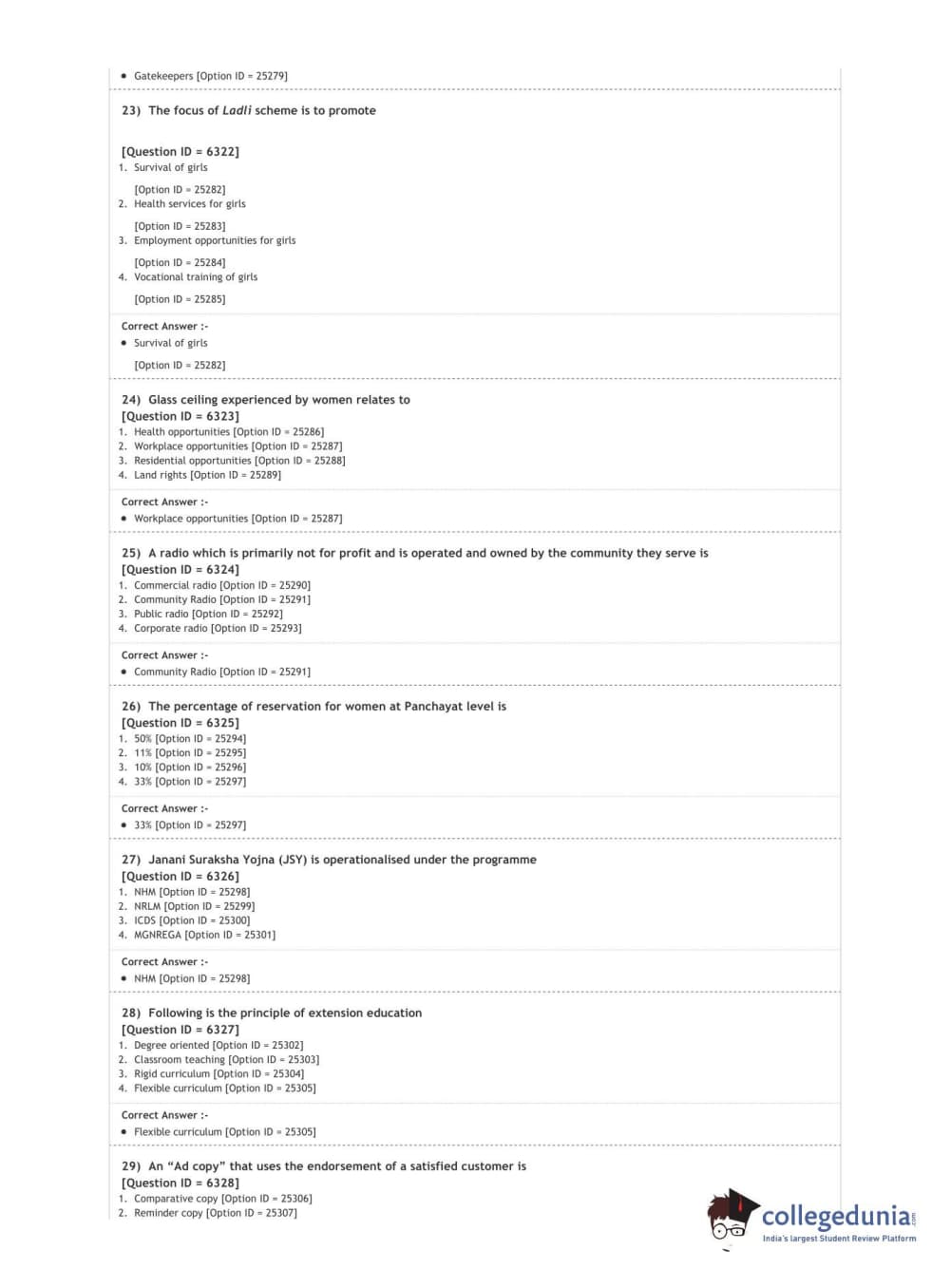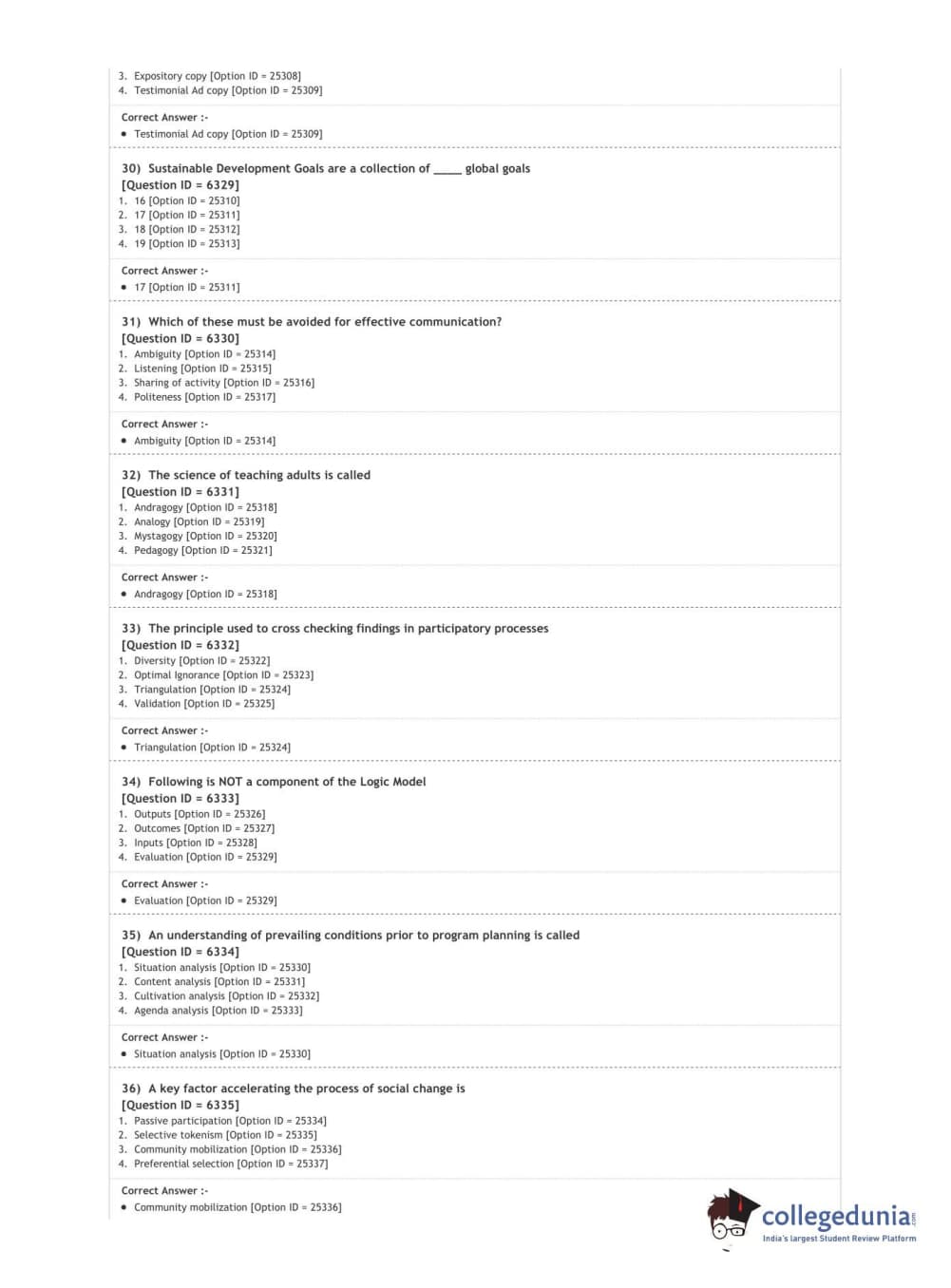 DUET 2020 M.Sc. Development Communication and Extension Question Paper with Answer Key PDF Shift 2