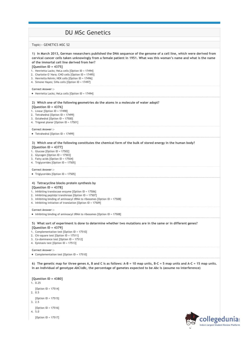 DUET 2020 M.Sc. Genetics Question paper with answer key pdf conducted on June 9, 2020 in Shift 3 is available for download. The exam was successfully organized by National Testing Agency (NTA). The question paper comprised a total of 100 questions.