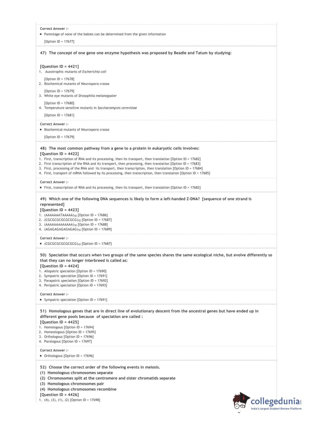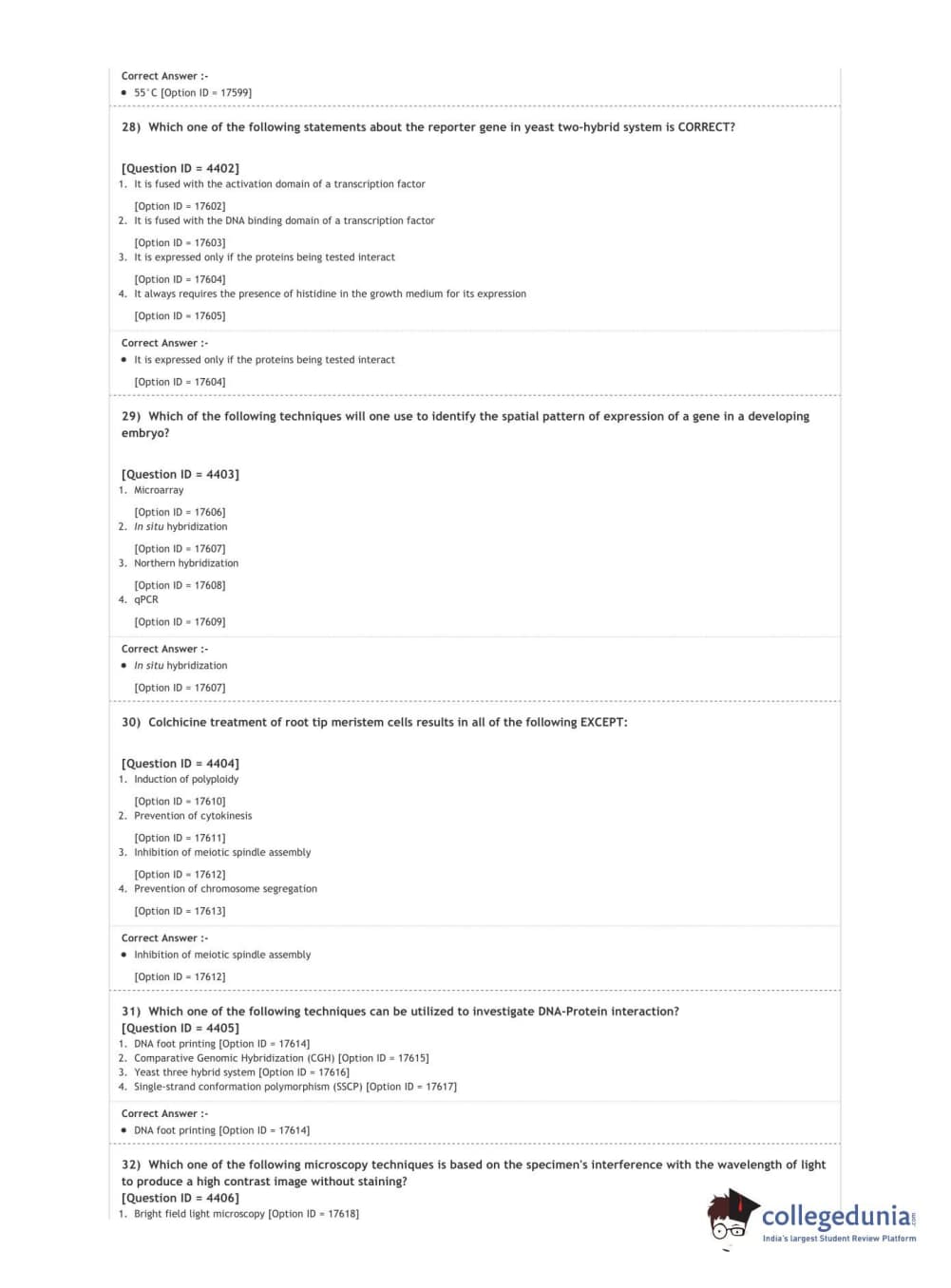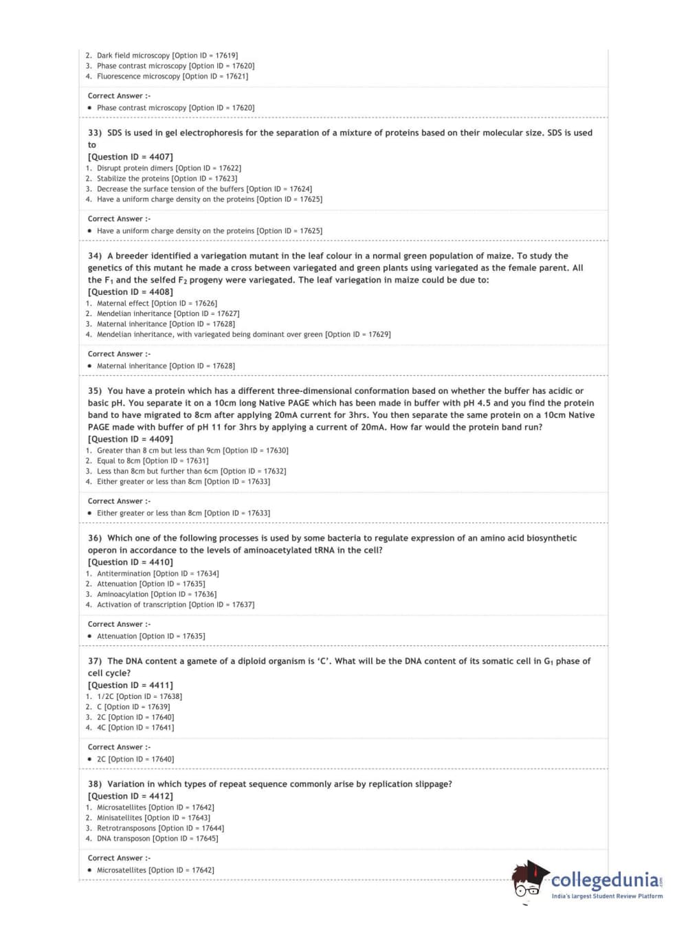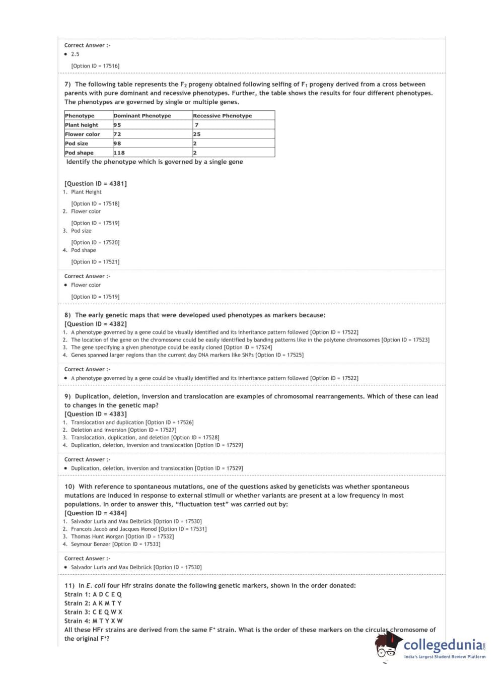 DUET 2020 M.Sc. Genetics Question Paper with Answer Key PDF Shift 3