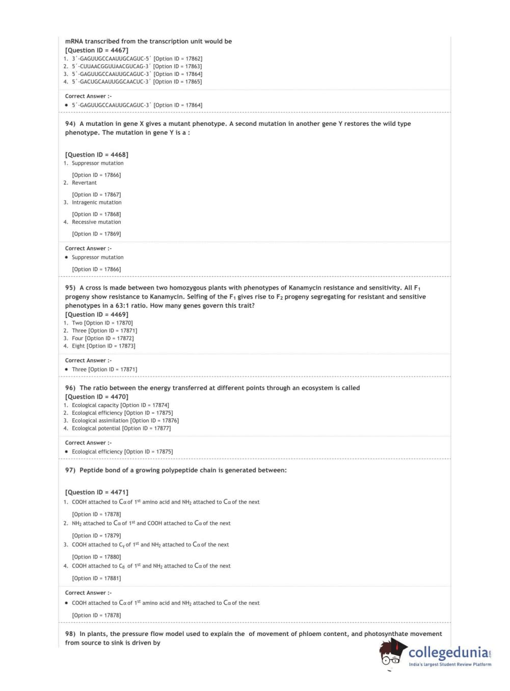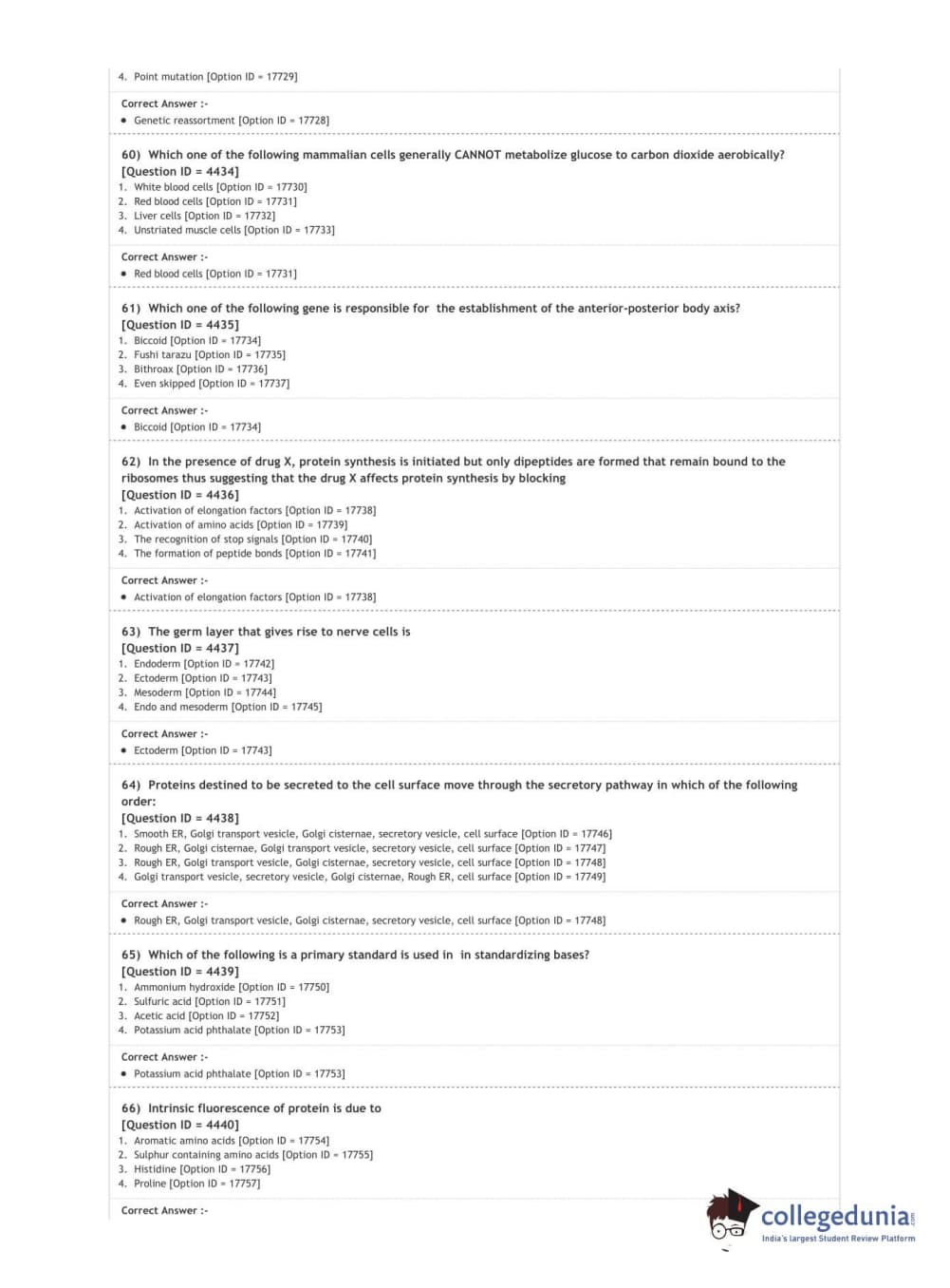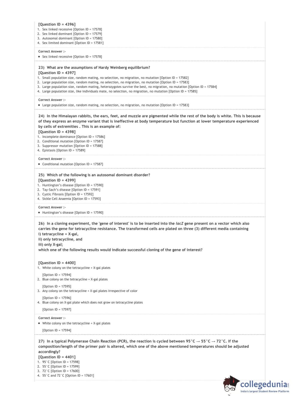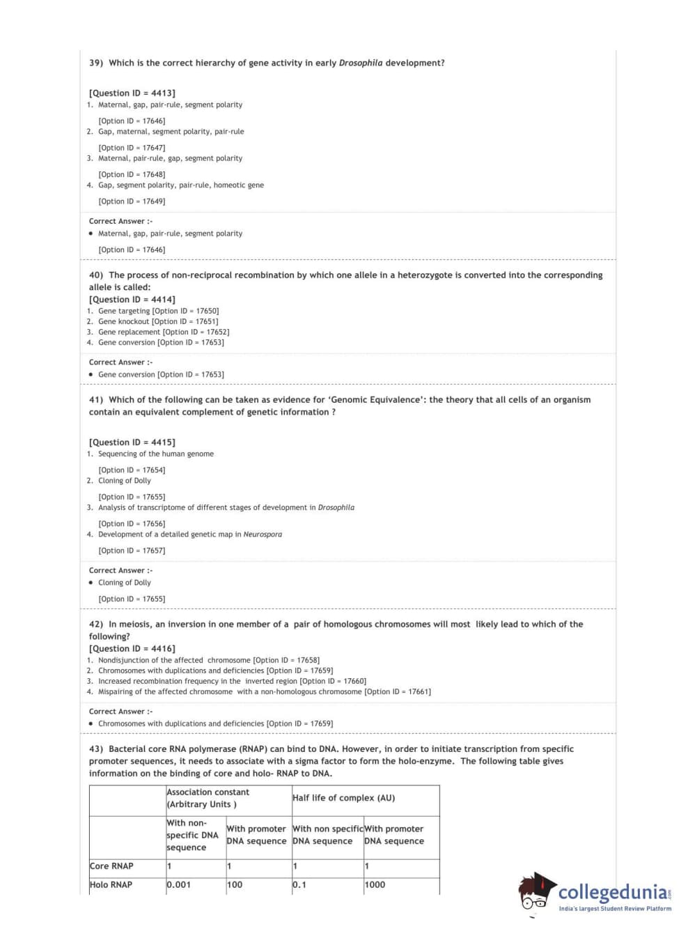DUET 2020 M.Sc. Genetics Question Paper with Answer Key PDF Shift 3
