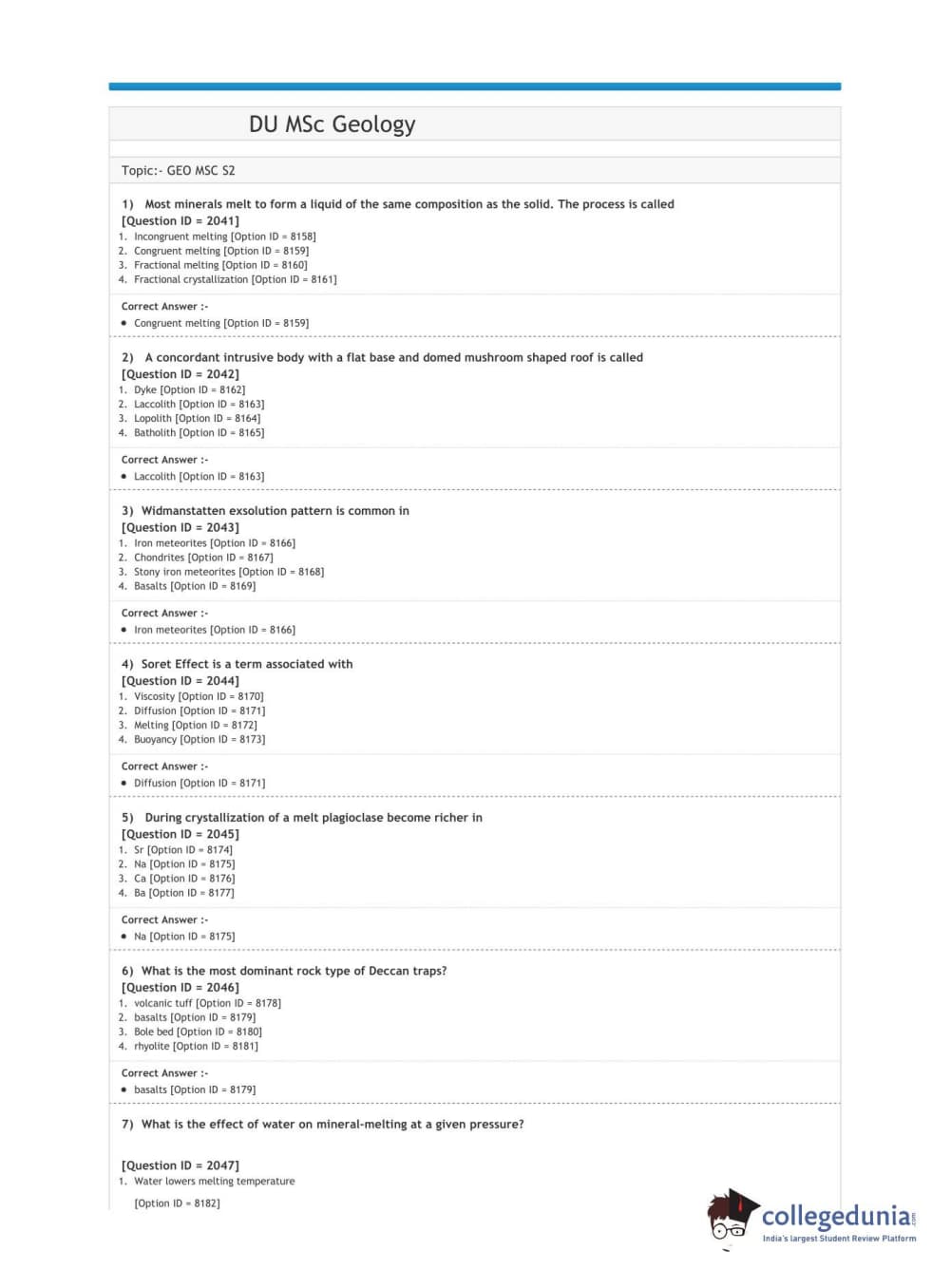 DUET 2020 M.Sc. Geology Question paper with answer key pdf conducted on June 9, 2020 in Shift 1 is available for download. The exam was successfully organized by National Testing Agency (NTA). The question paper comprised a total of 100 questions.