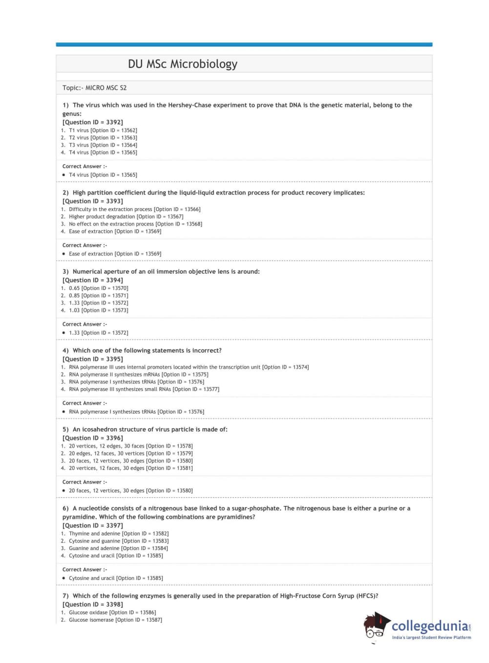 DUET 2020 M.Sc. Microbiology Question paper with answer key pdf conducted on November 9, 2020 in Shift 2 is available for download. The exam was successfully organized by National Testing Agency (NTA). The question paper comprised a total of 100 questions.