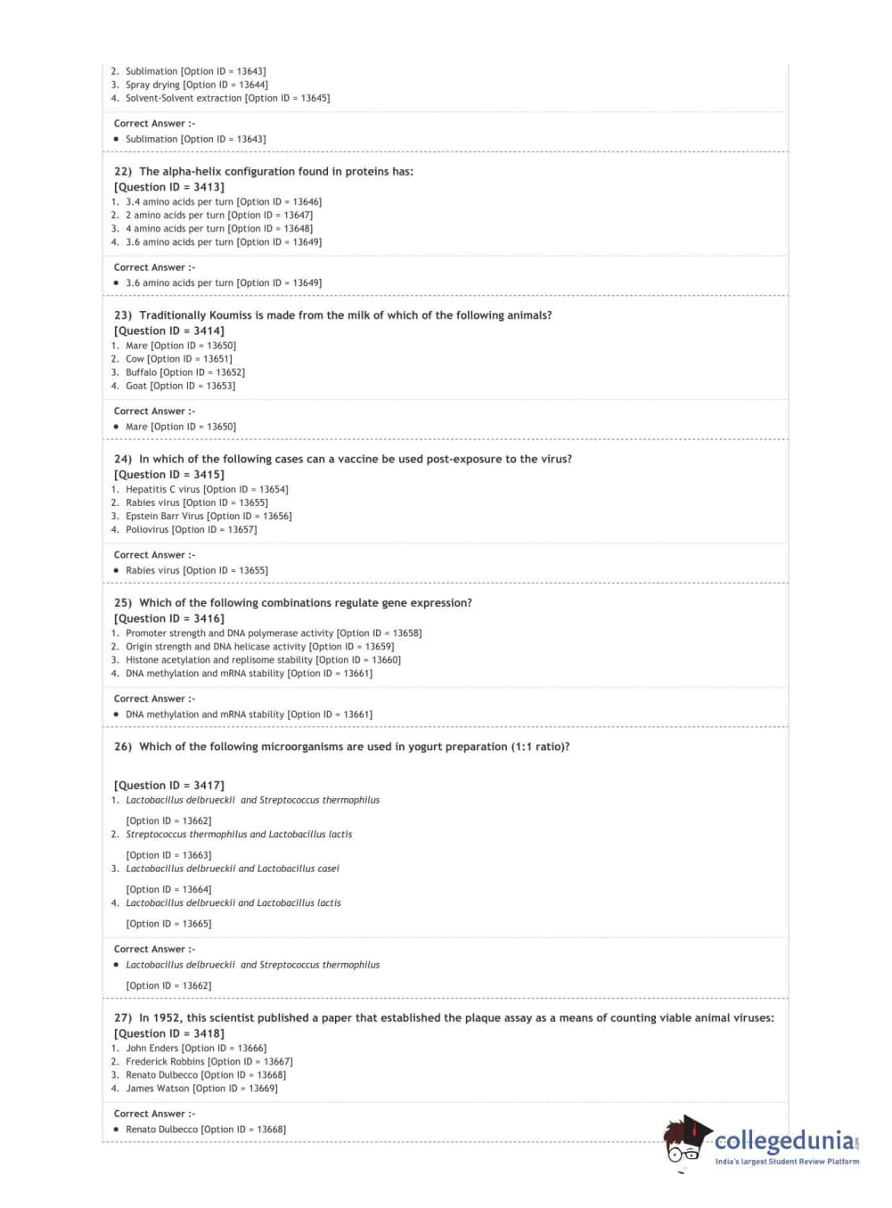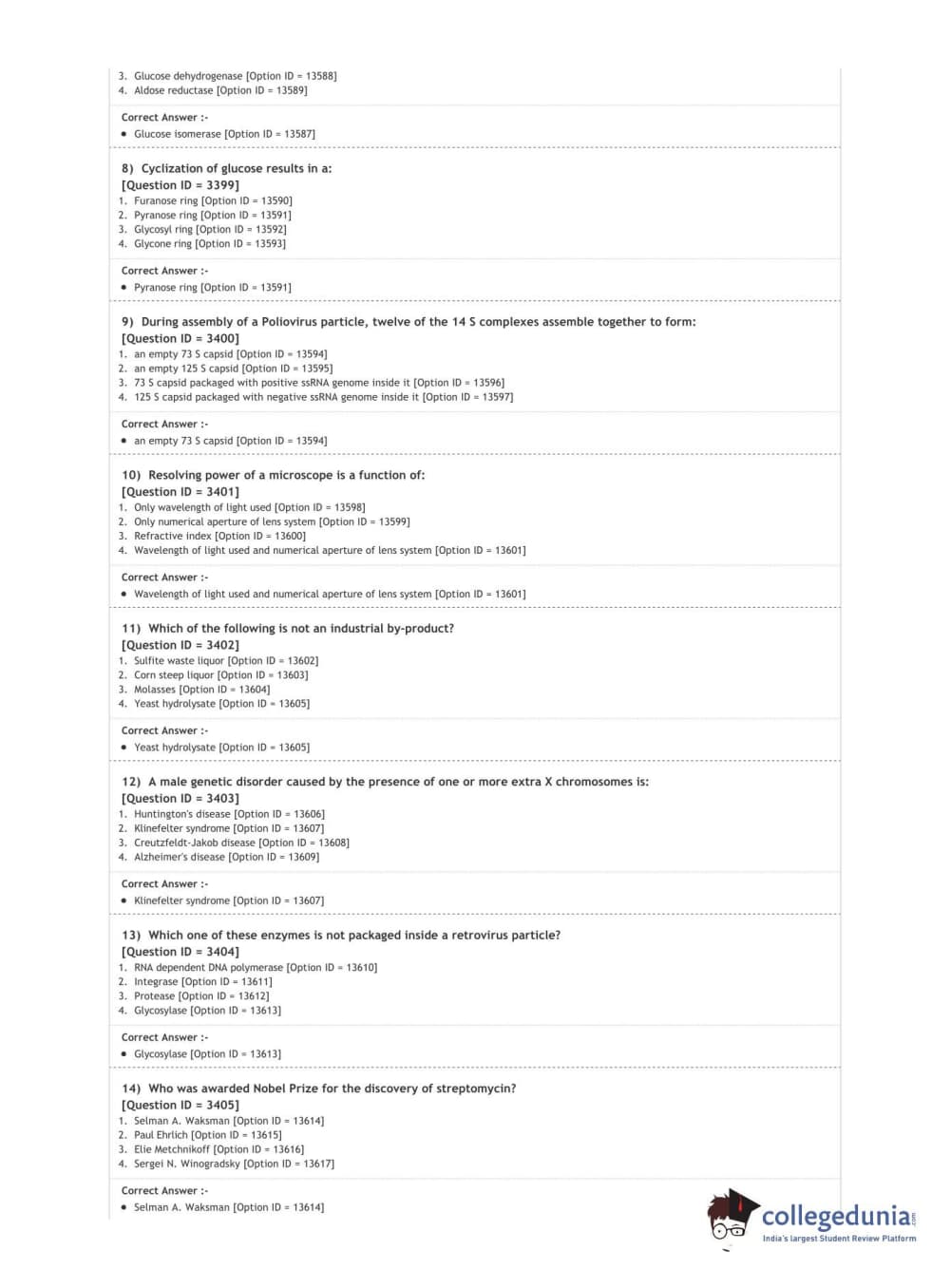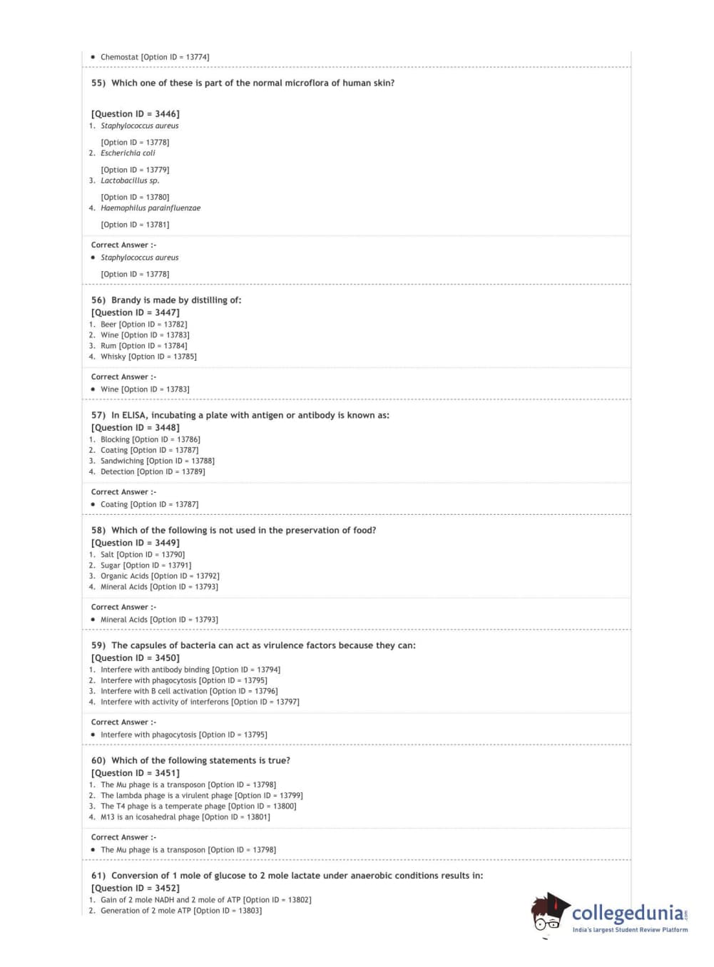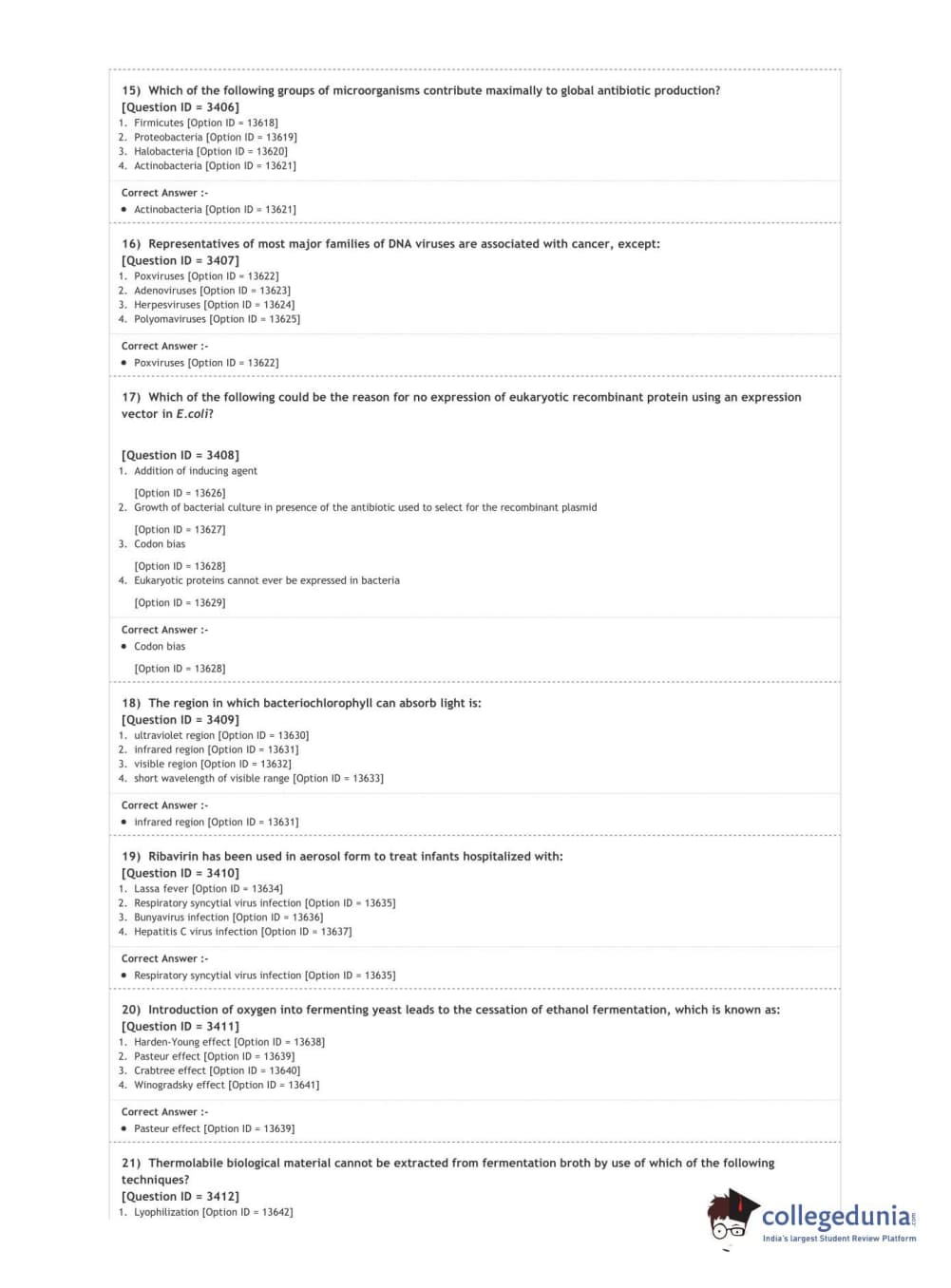 DUET 2020 M.Sc. Microbiology Question Paper with Answer Key PDF Shift 2