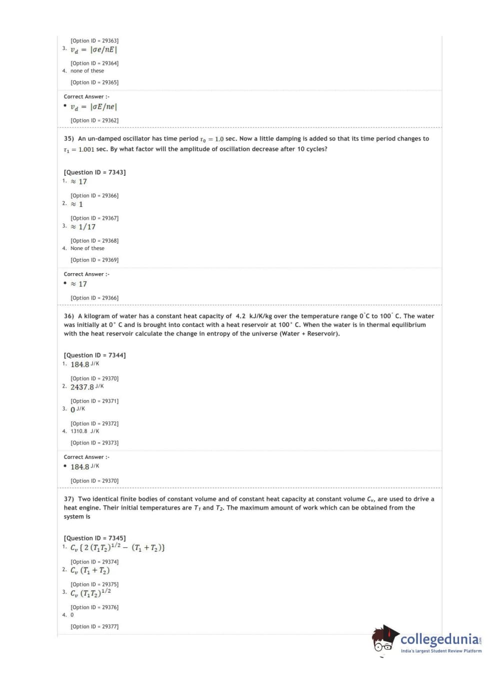 DUET 2020 M.Sc. Physics Question Paper with Answer Key PDF Shift 1