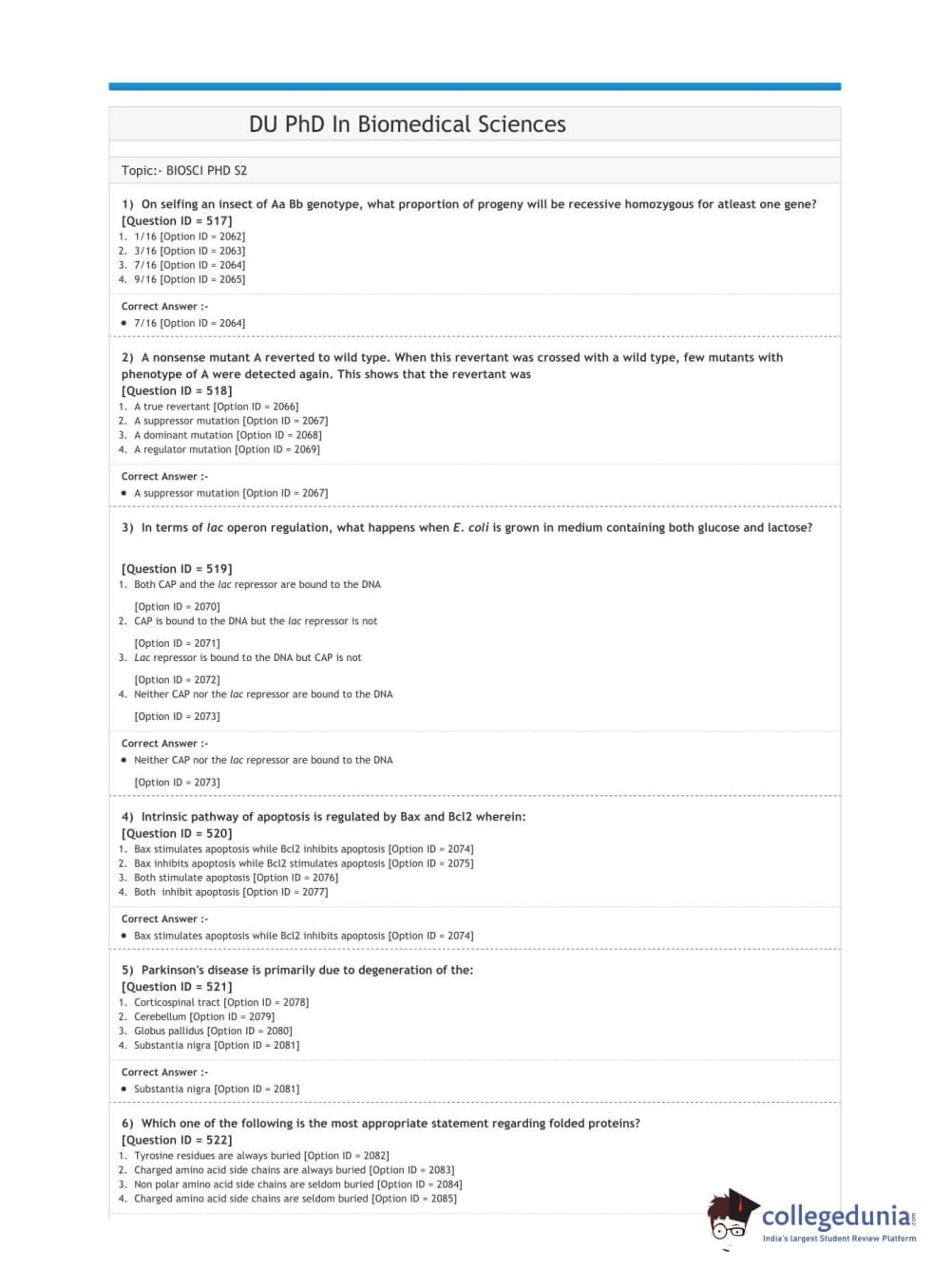 DUET 2020 Ph.D. in Biomedical Sciences Question paper with answer key pdf conducted on November 9, 2020 in Shift 1 is available for download. The exam was successfully organized by National Testing Agency (NTA). The question paper comprised a total of 50 questions.
