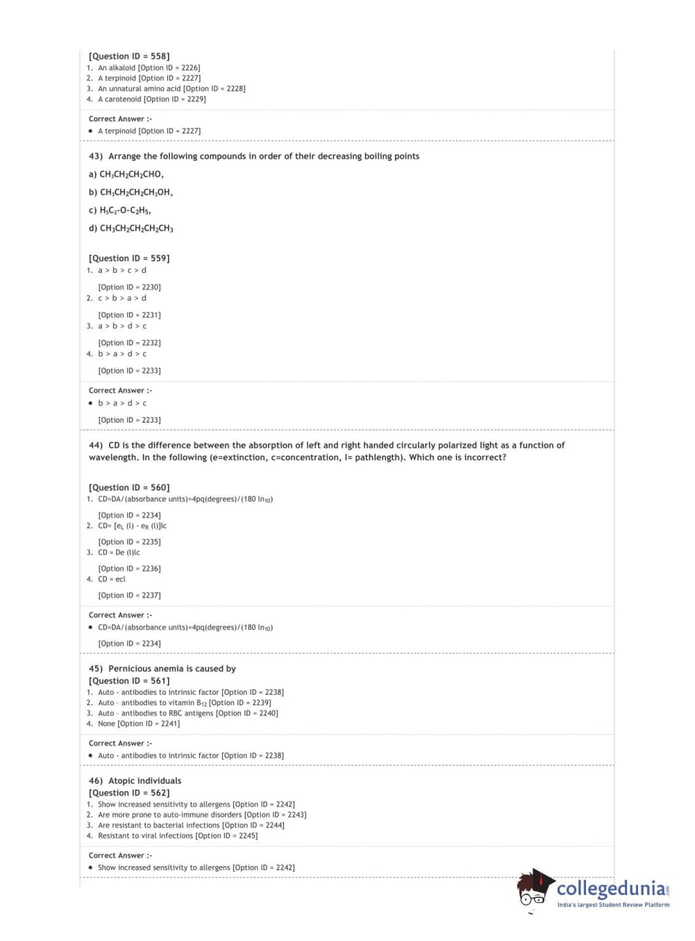DUET 2020 Ph.D. in Biomedical Sciences Question Paper with Answer Key PDF Shift 1