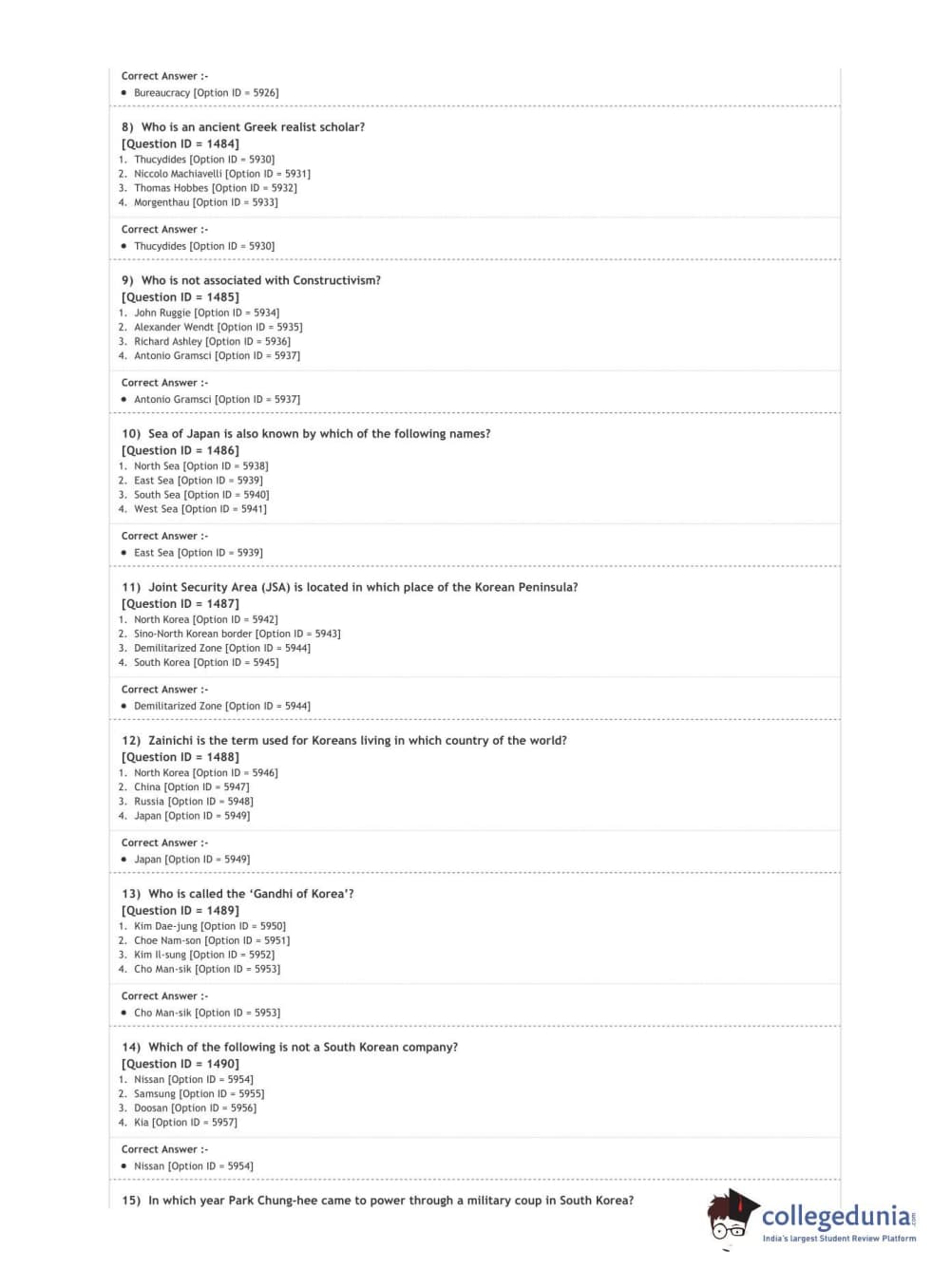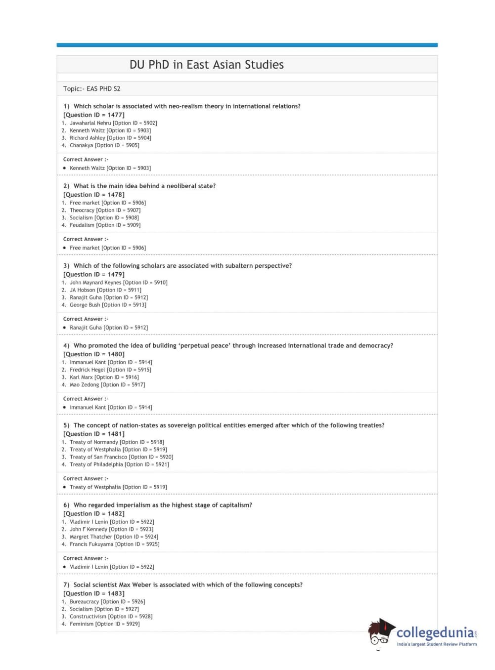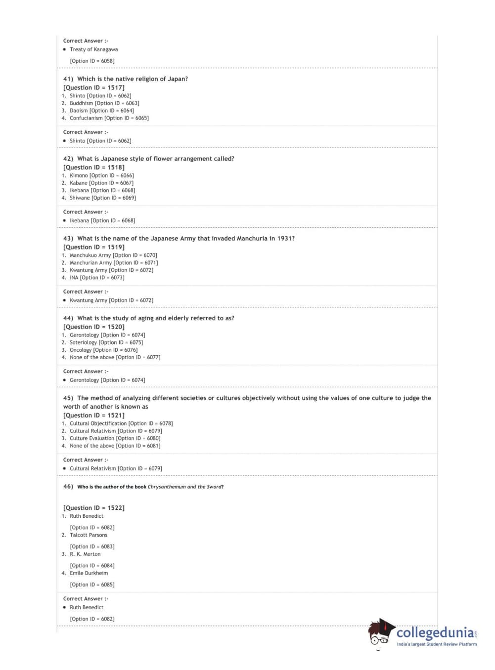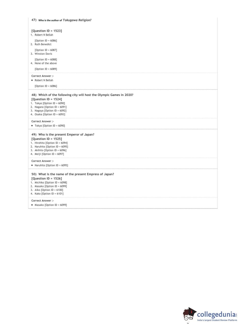DUET 2020 Ph.D. in East Asian Studies Question Paper with Answer Key PDF Shift 2