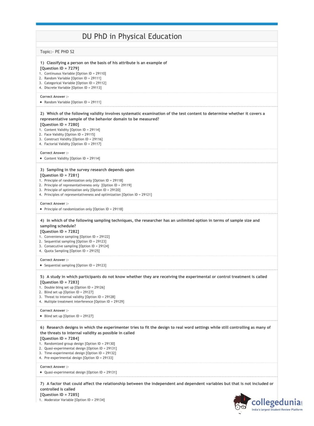 DUET 2020 Ph.D. in Physical Education (Department of Physical Education & Sports Sciences) Question paper with answer key pdf conducted on June 9, 2020 in Shift 2 is available for download. The exam was successfully organized by National Testing Agency (NTA). The question paper comprised a total of 50 questions.