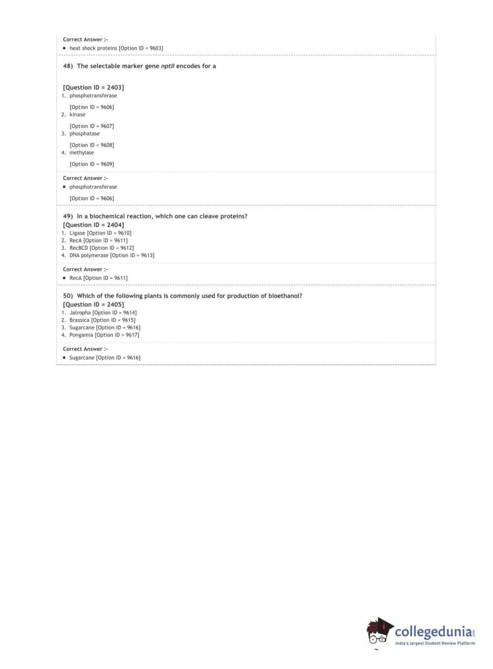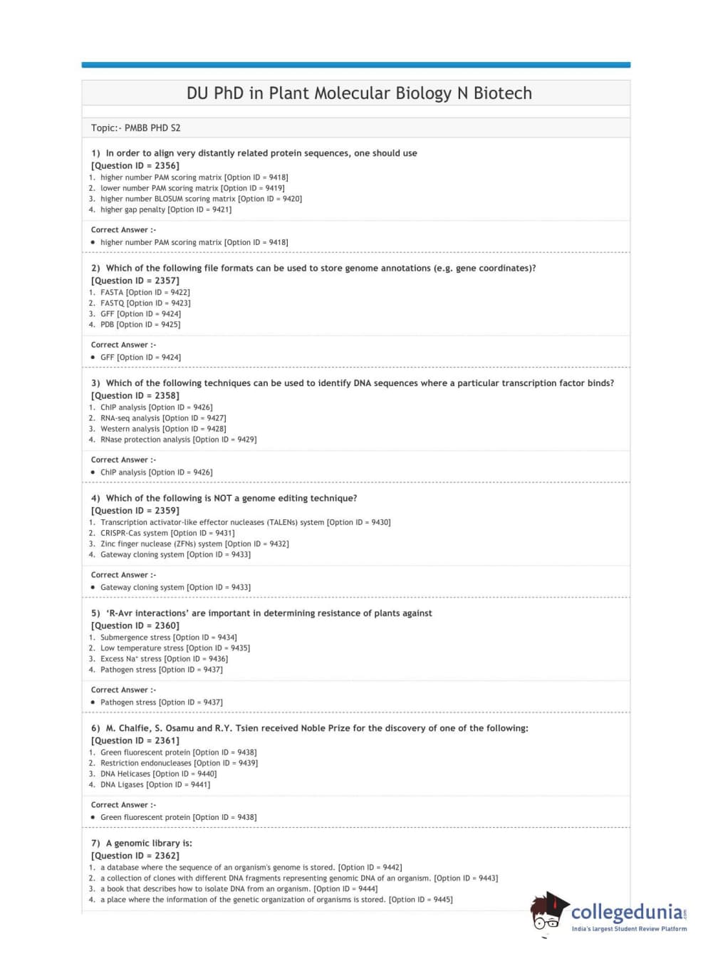 DUET 2020 Ph.D. in Plant Molecular Biology and Biotechnology Question paper with answer key pdf conducted on October 9, 2020 in Shift 1 is available for download. The exam was successfully organized by National Testing Agency (NTA). The question paper comprised a total of 50 questions.