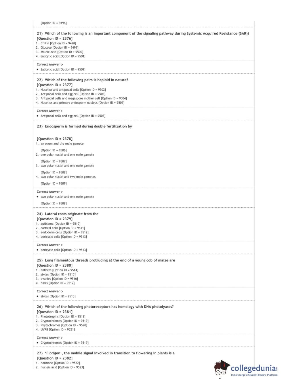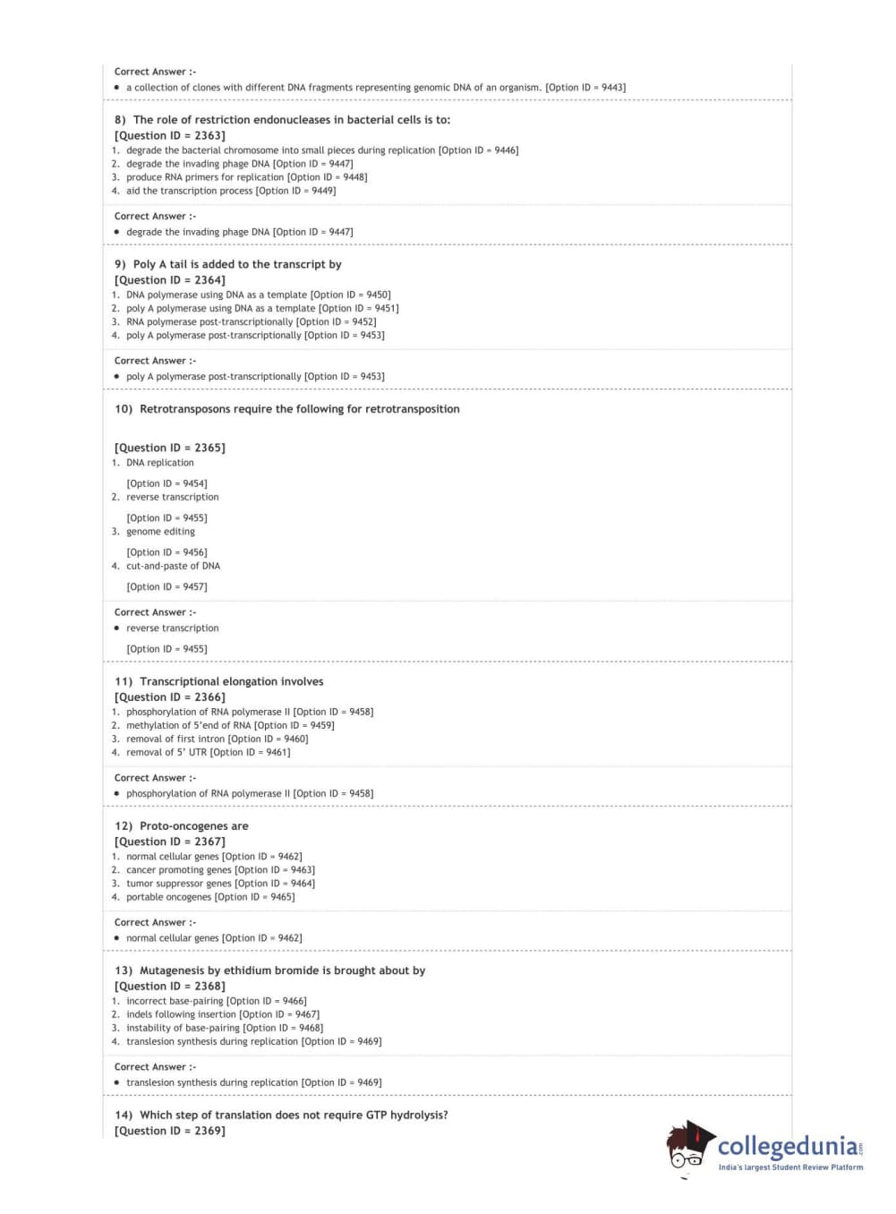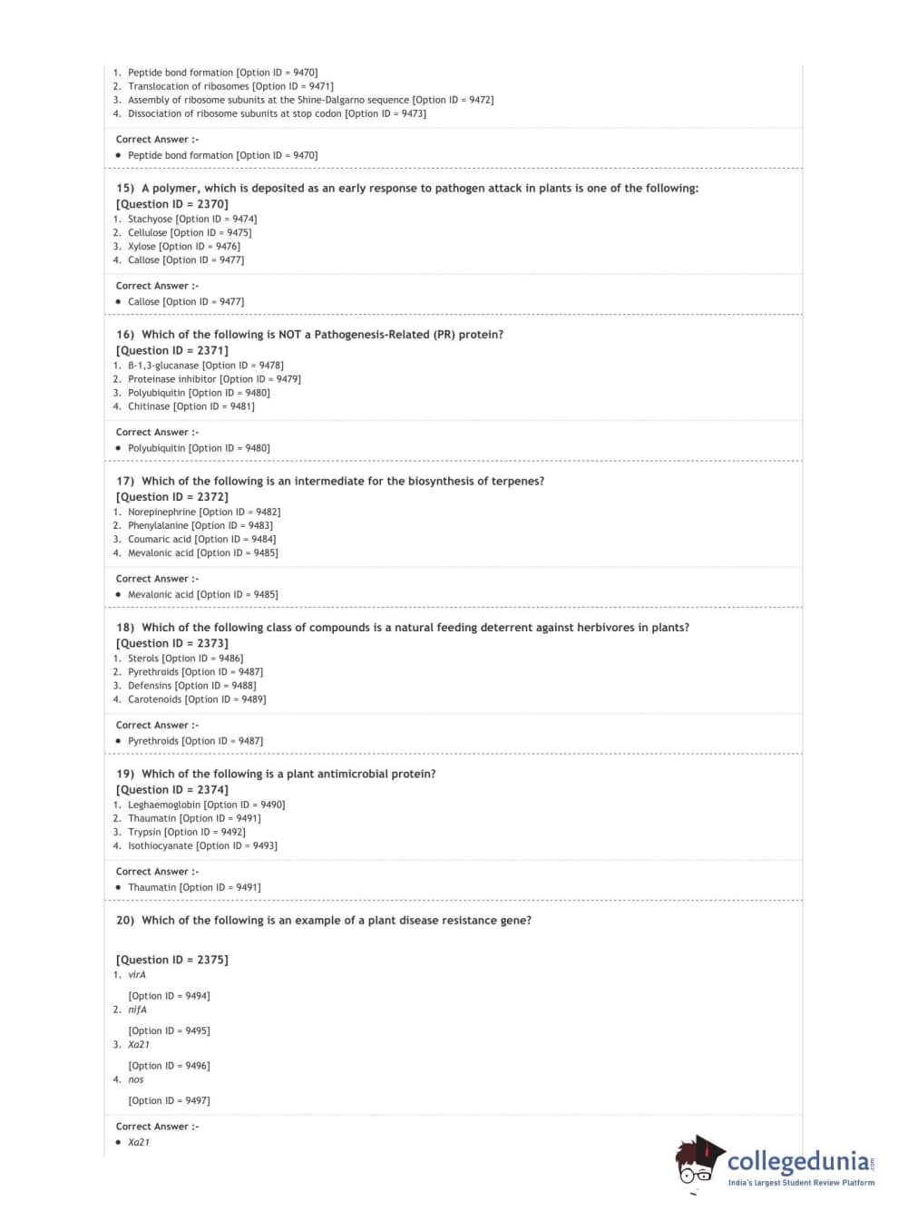 DUET 2020 Ph.D. in Plant Molecular Biology and Biotechnology Question Paper with Answer Key PDF Shift 1