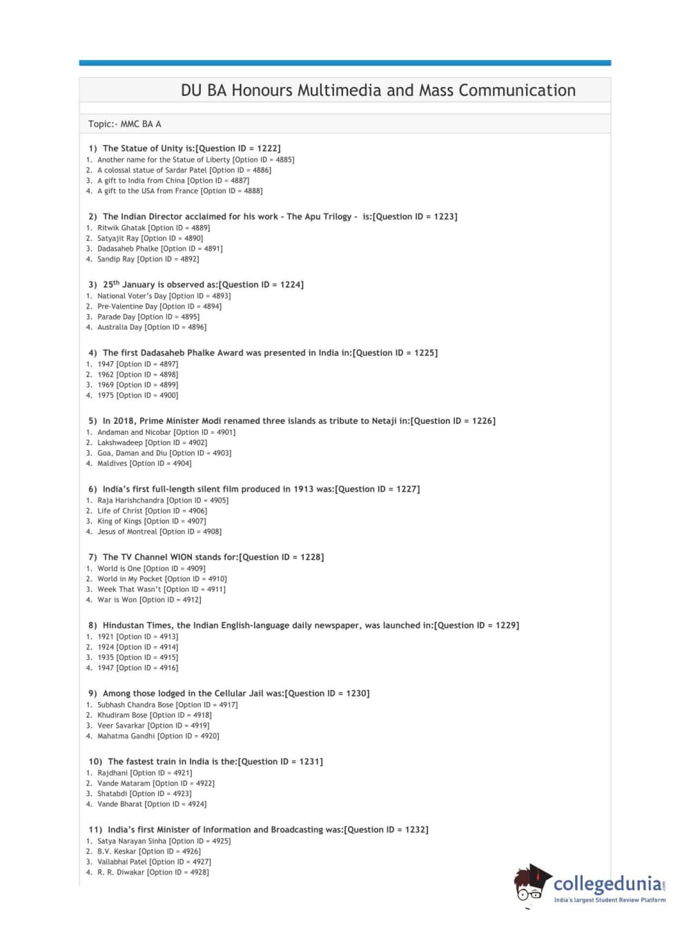 | DUET 2021 DU BA Honours Multimedia and Mass Communication Question Paper PDF | DUET 2021 DU BA Honours Multimedia and Mass Communication Answer Key PDF |