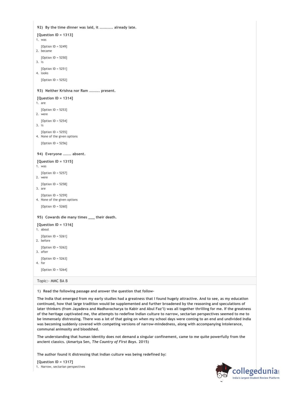 DUET 2021 DU BA Honours Multimedia and Mass Communication Question paper with answer key pdf conducted on September 27, 2021 in Shift 1 is available for download. The exam was successfully organized by National Testing Agency (NTA). The question paper comprised a total of 100 questions.