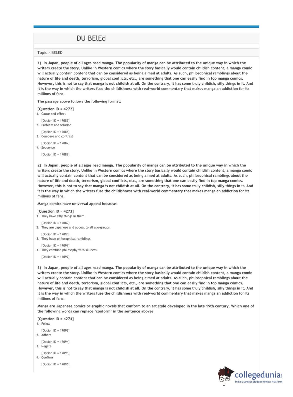 DUET 2021 DU BElEd Question Paper with Answer Key PDFs Shift 2