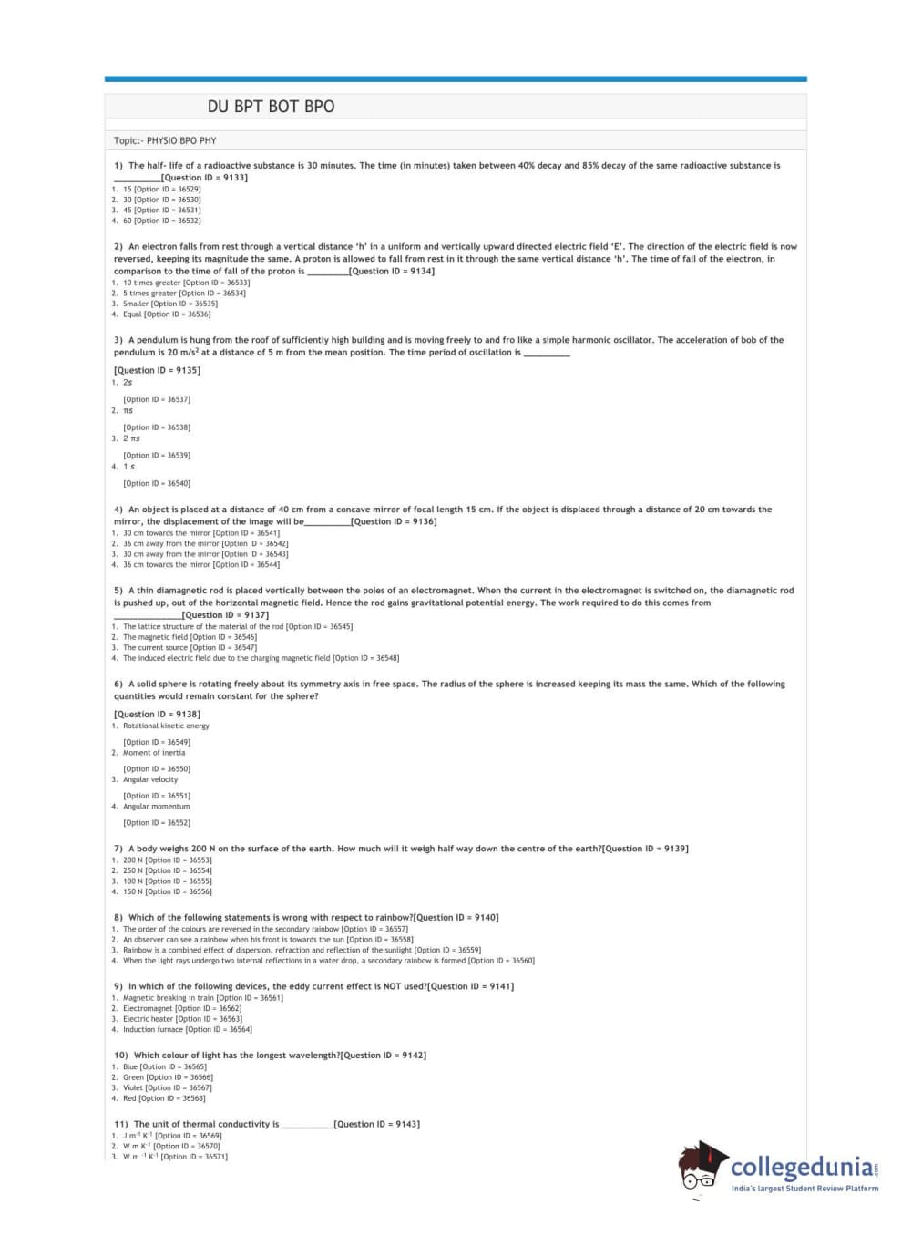 DUET 2021 DU BPT BOT BPO Question Paper with Answer Key PDFs Shift 3