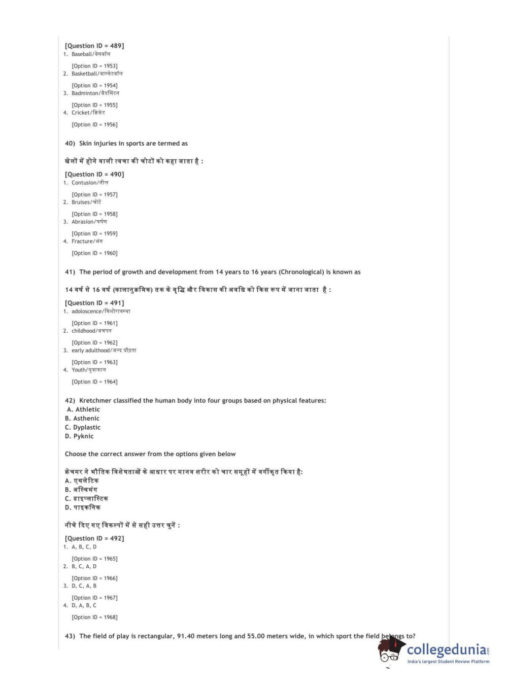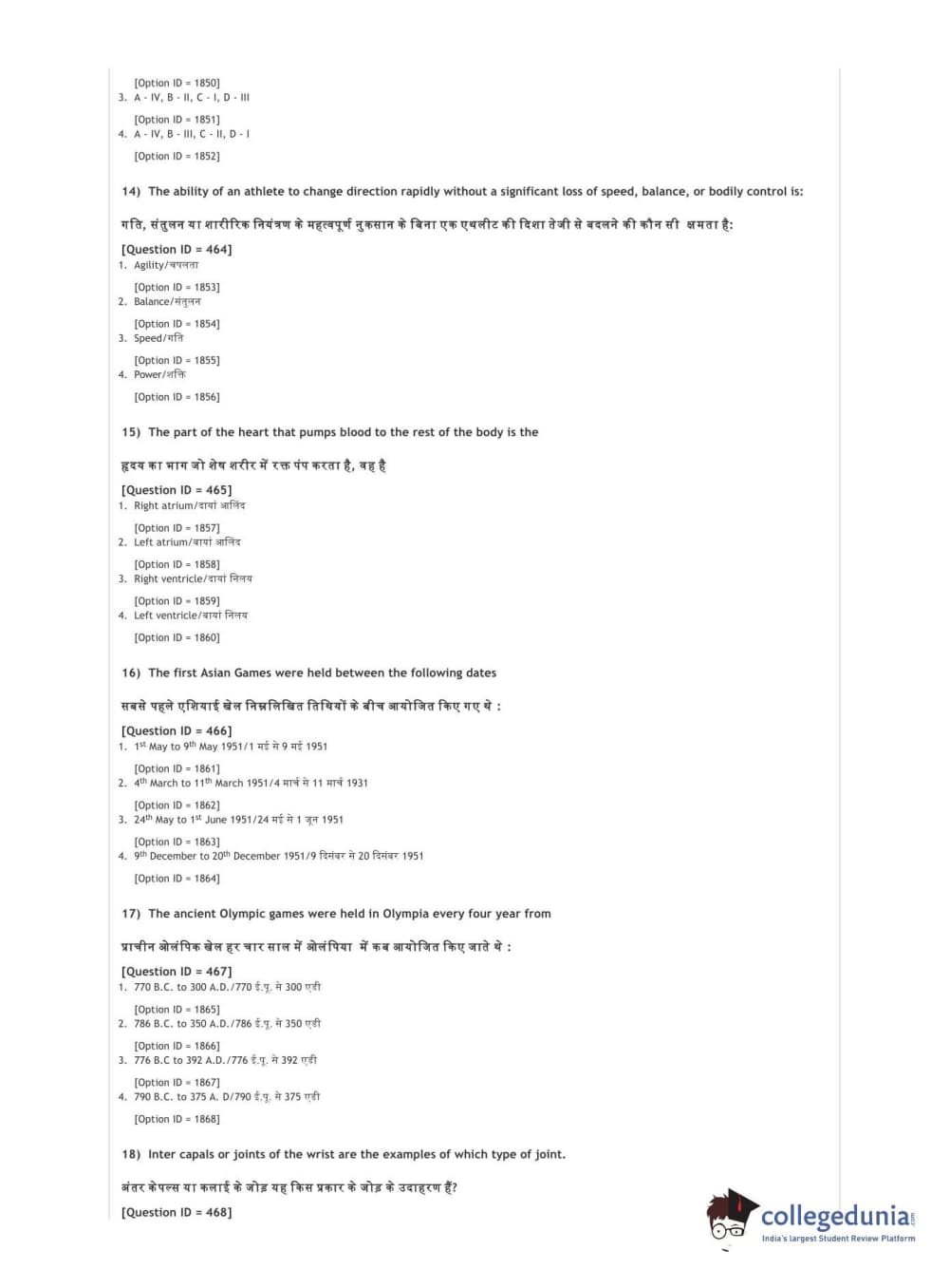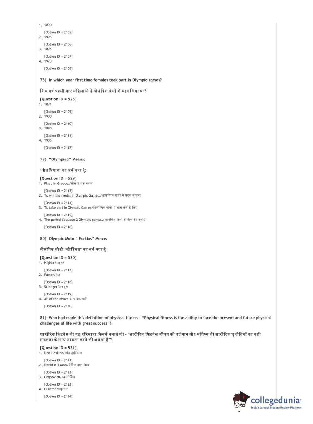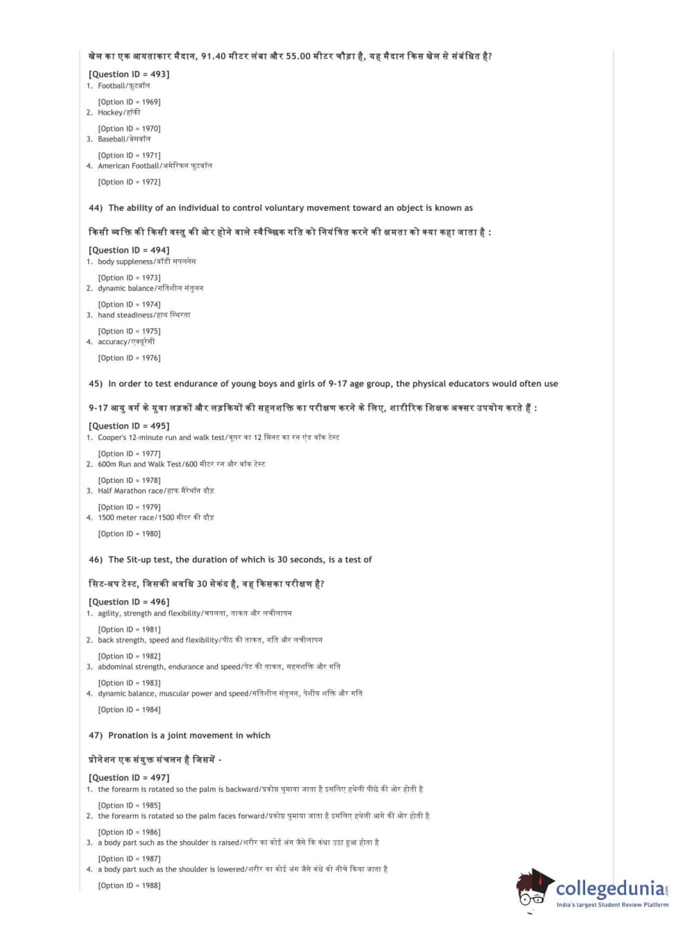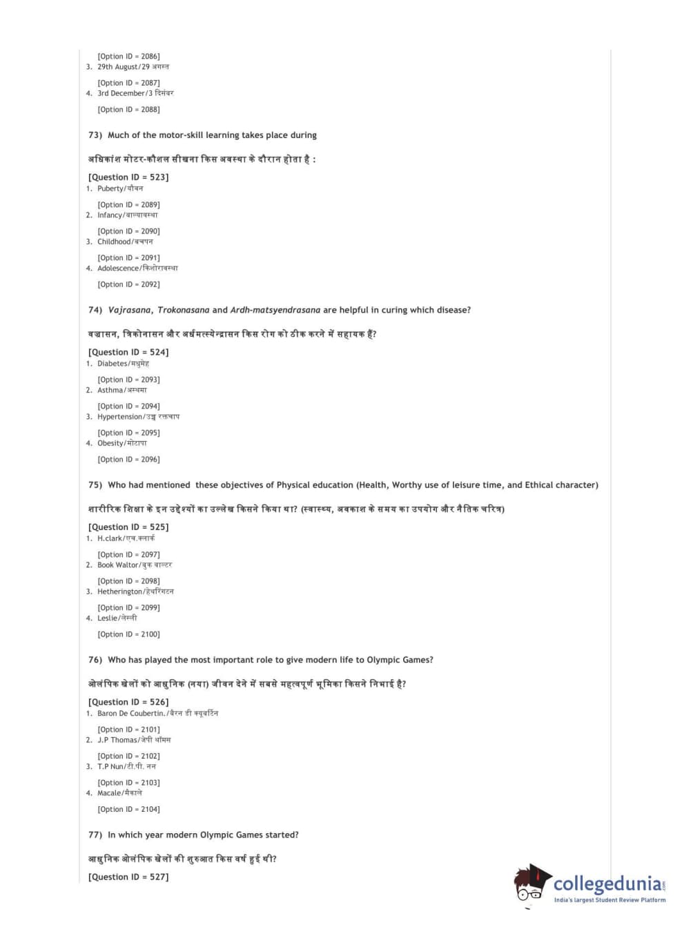 DUET 2021 DU BSc Physical Education N Sports Sciences Question Paper with Answer Key PDFs Shift 3