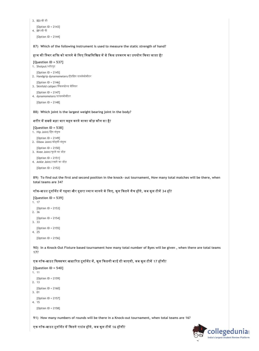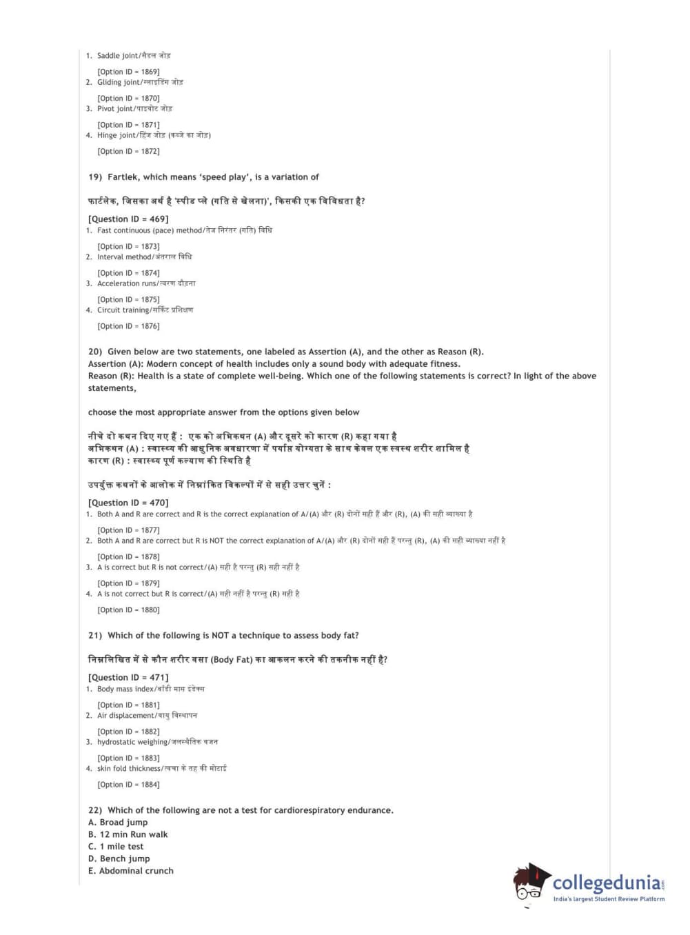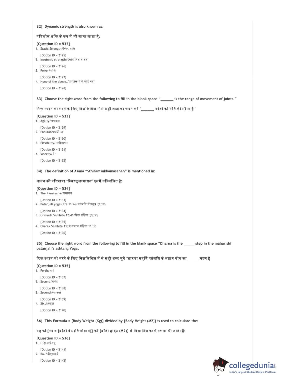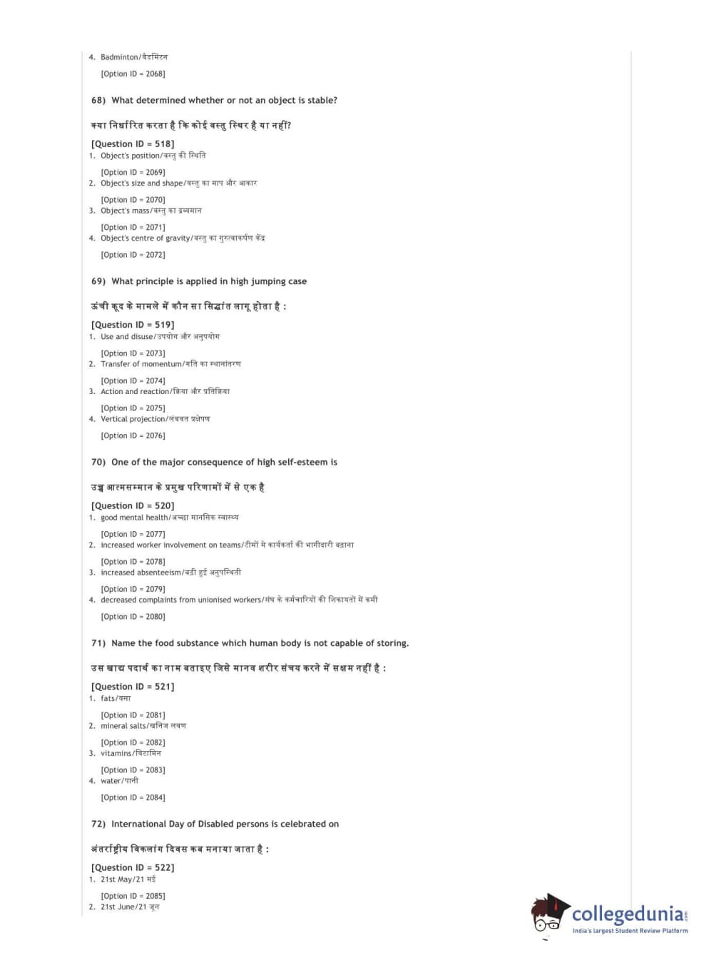 DUET 2021 DU BSc Physical Education N Sports Sciences Question Paper with Answer Key PDFs Shift 3