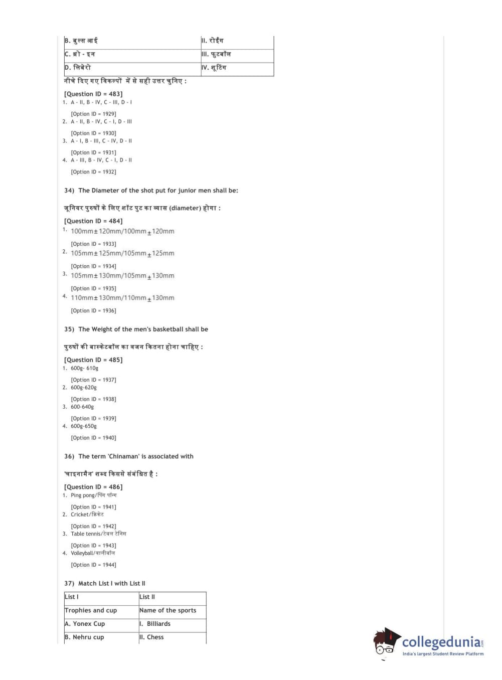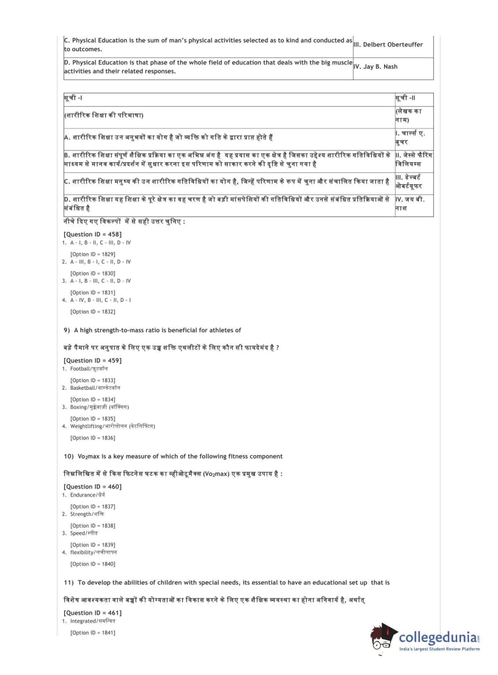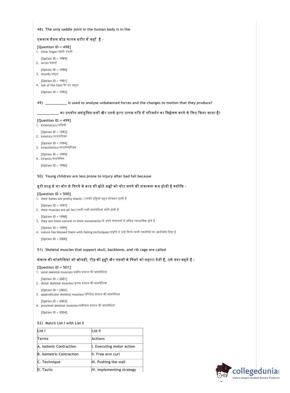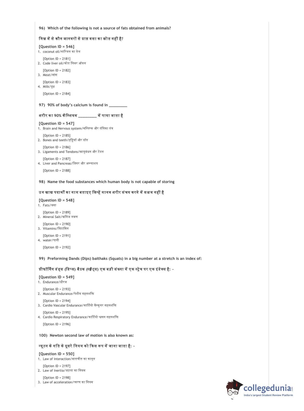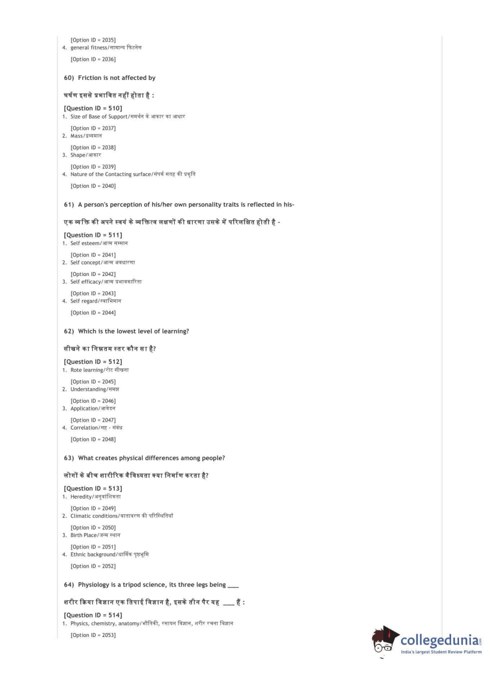 DUET 2021 DU BSc Physical Education N Sports Sciences Question Paper with Answer Key PDFs Shift 3