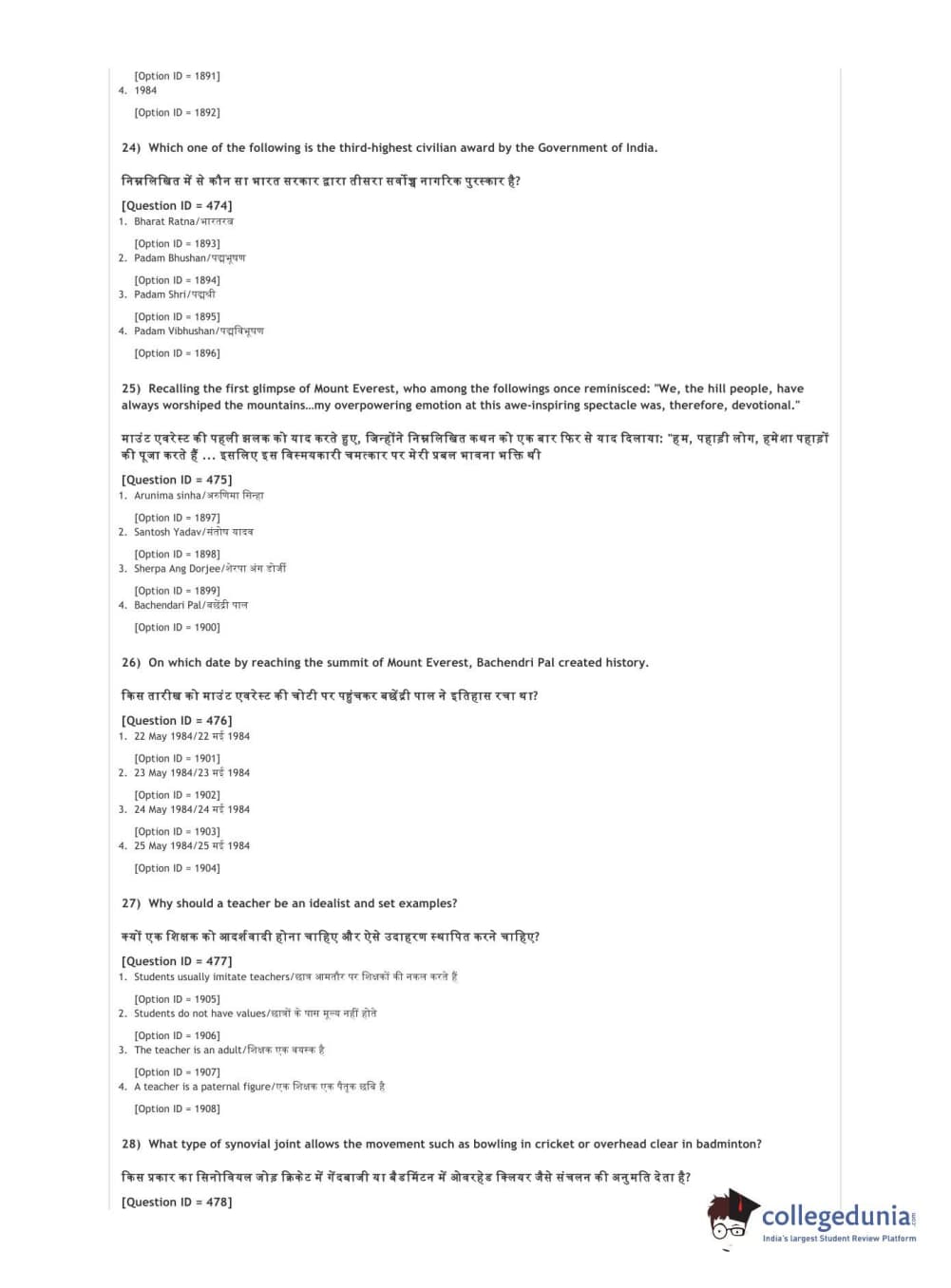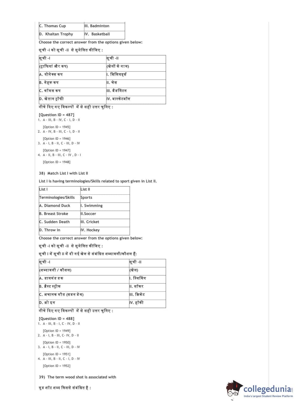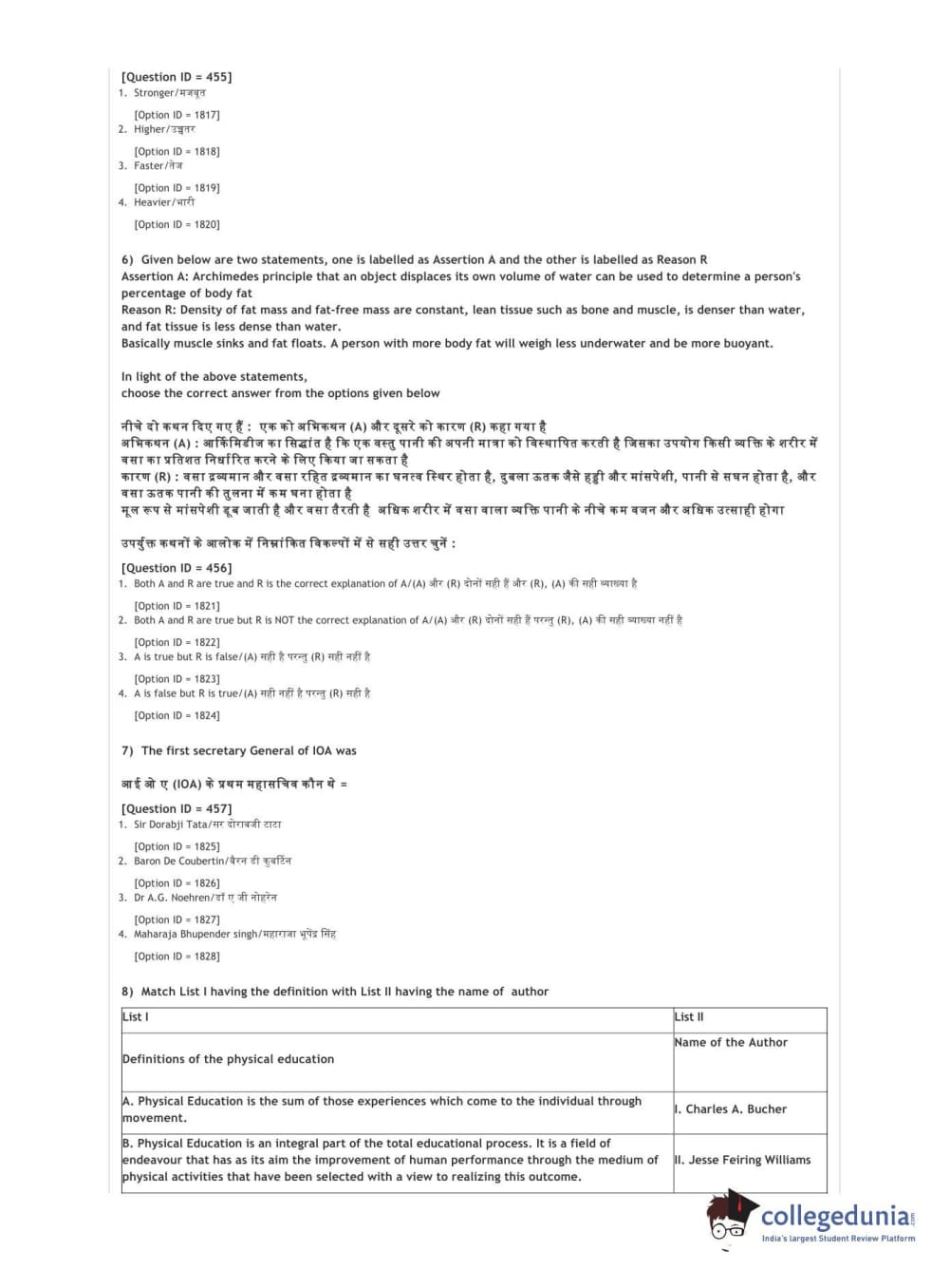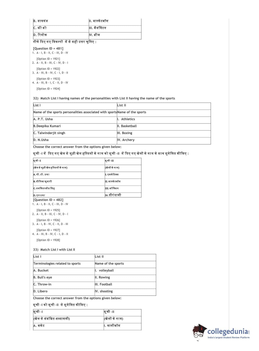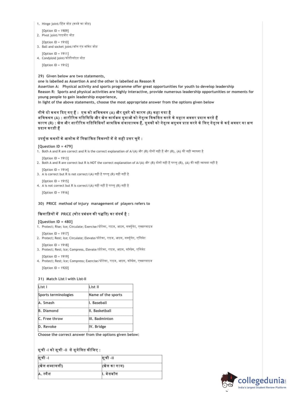 DUET 2021 DU BSc Physical Education N Sports Sciences Question Paper with Answer Key PDFs Shift 3