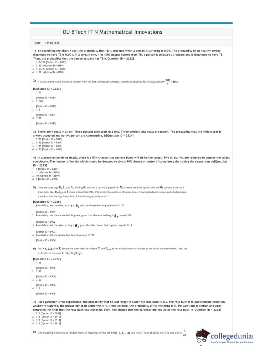 | DUET 2021 DU BTech IT N Mathematical Innovations Question Paper PDF | DUET 2021 DU BTech IT N Mathematical Innovations Answer Key PDF |