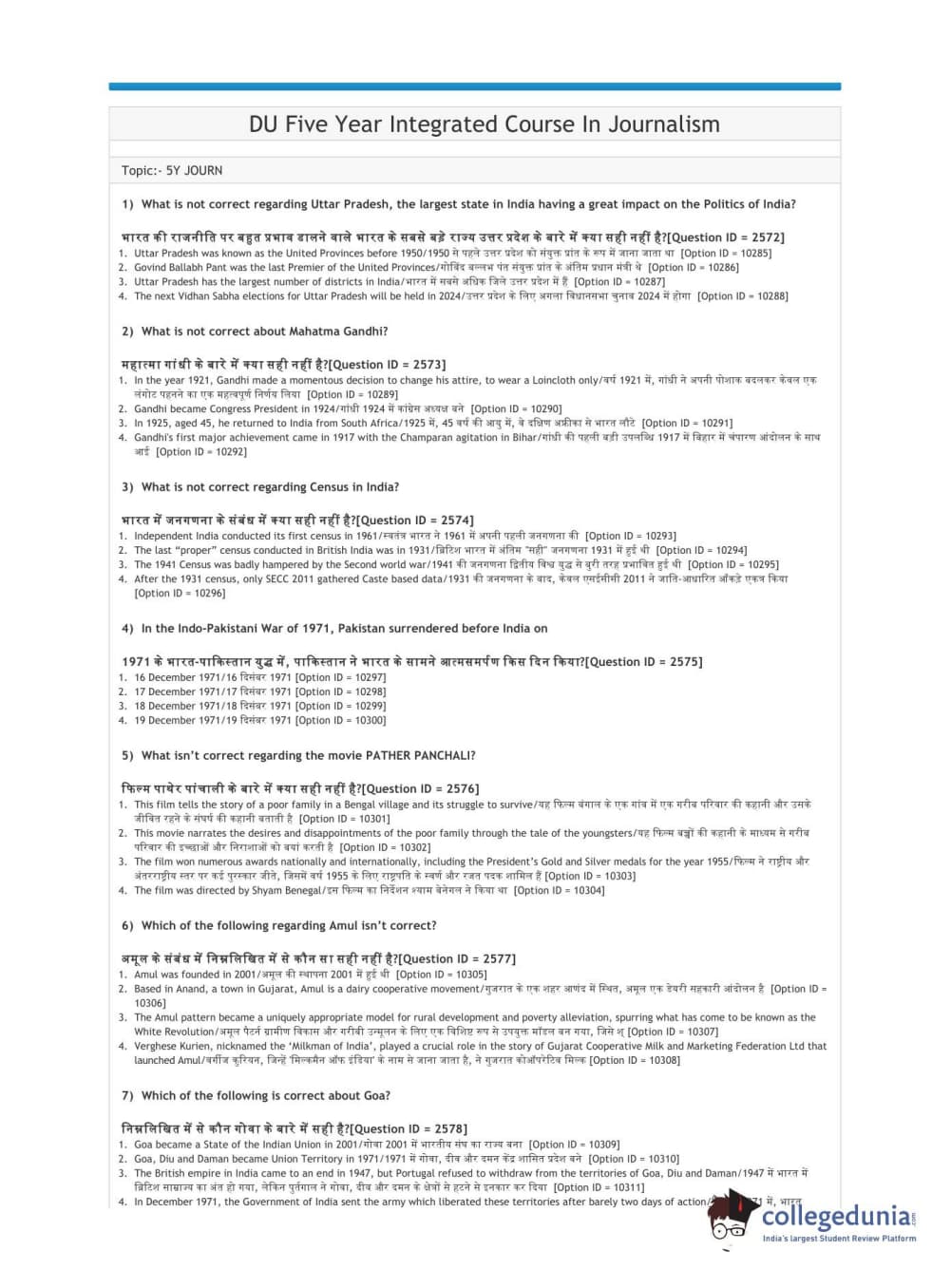 | DUET 2021 DU Five Year Integrated Course In Journalism Question Paper PDF | DUET 2021 DU Five Year Integrated Course In Journalism Answer Key PDF |