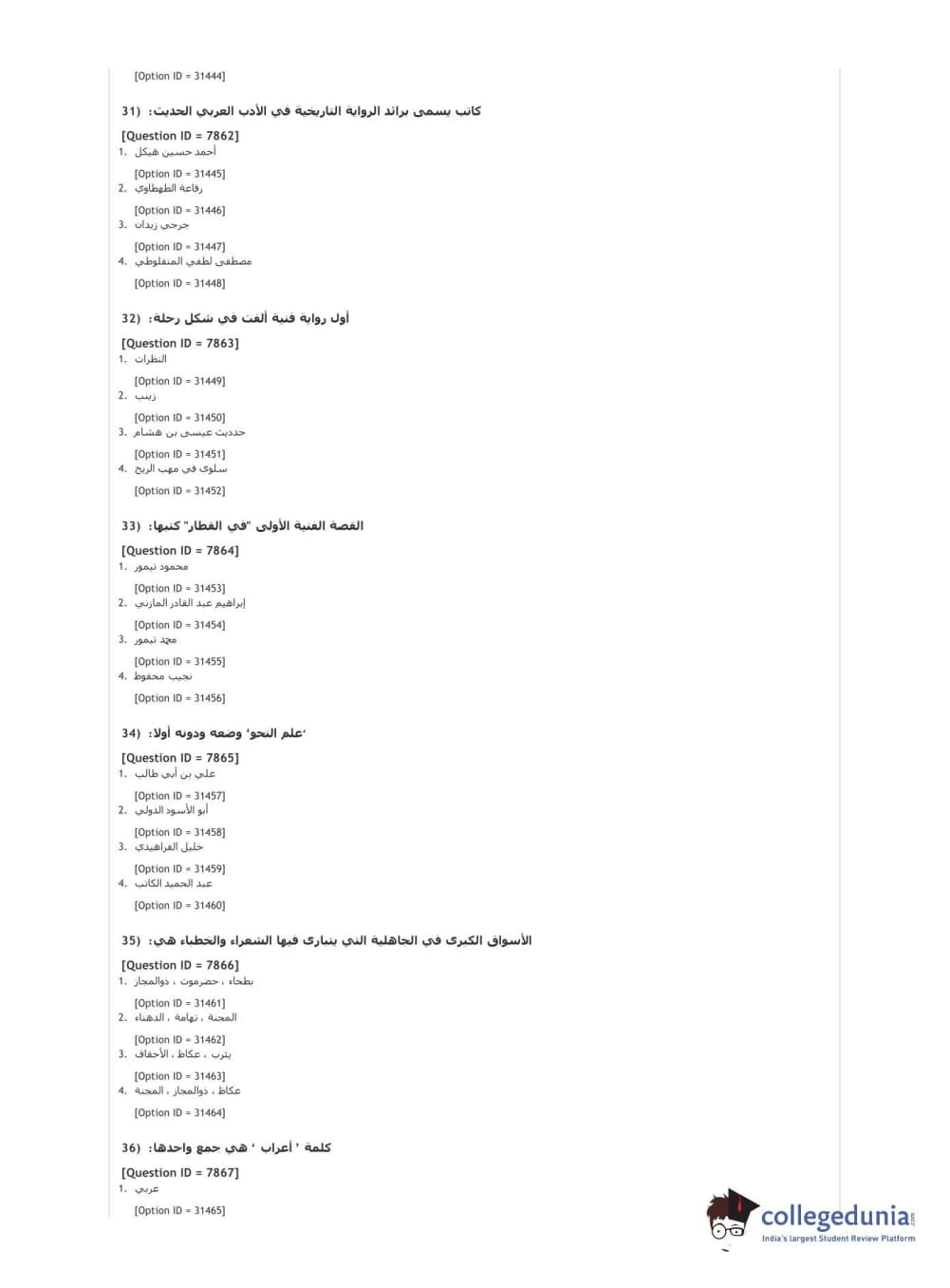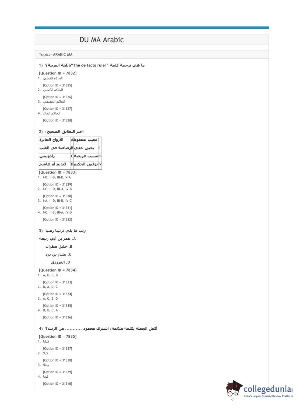 DUET 2021 DU MA Arabic Question Paper with Answer Key PDFs Shift 1