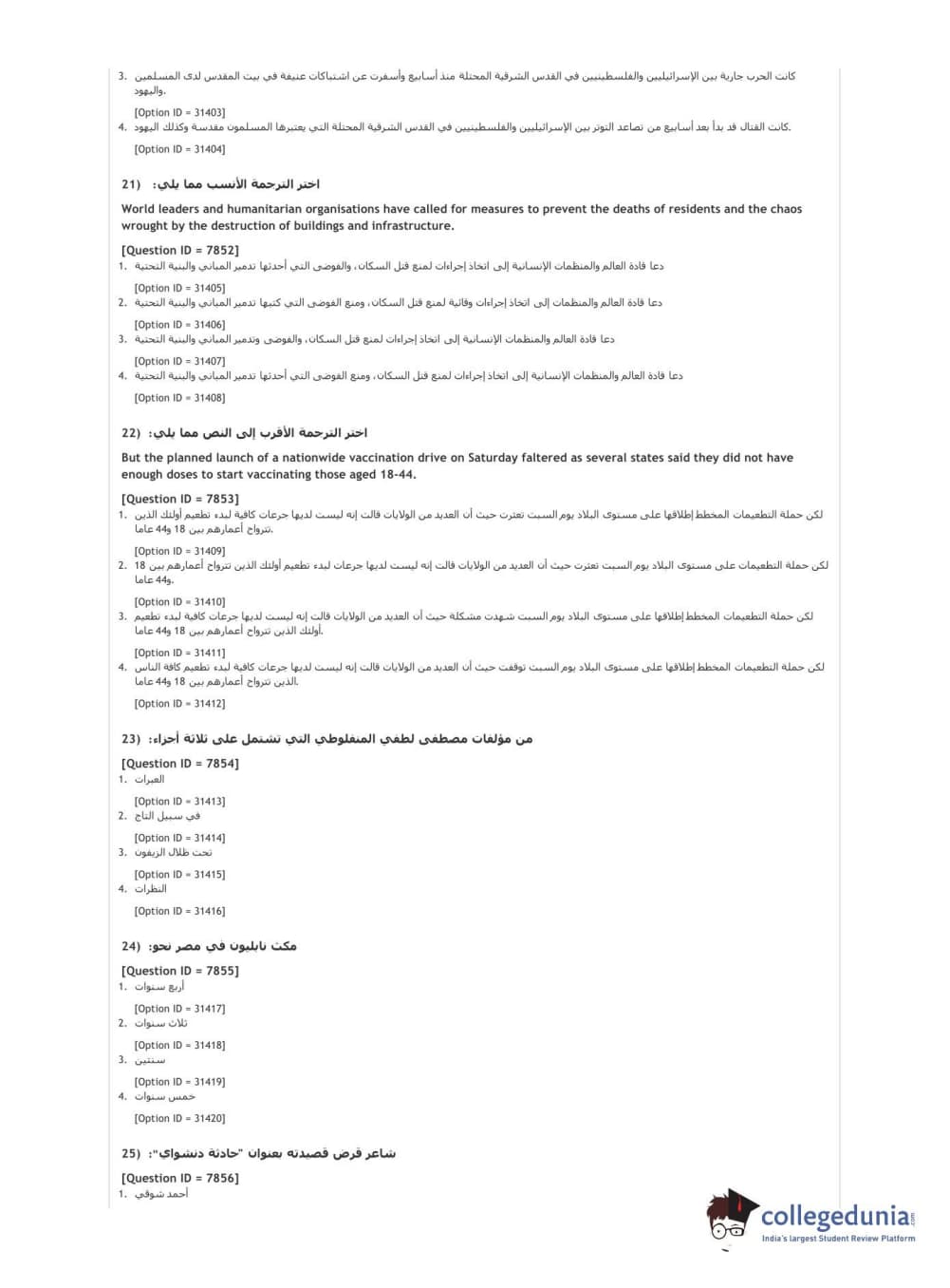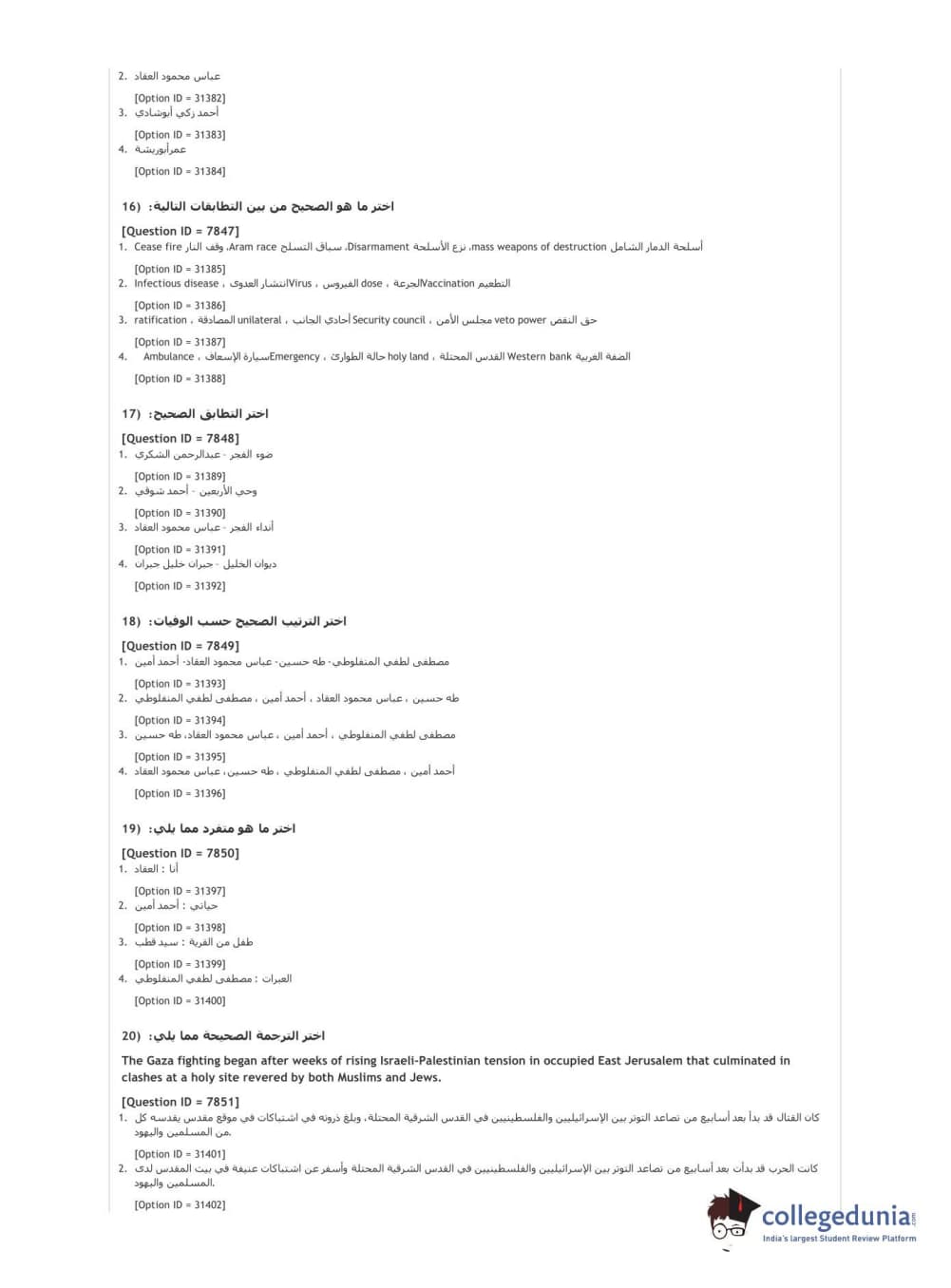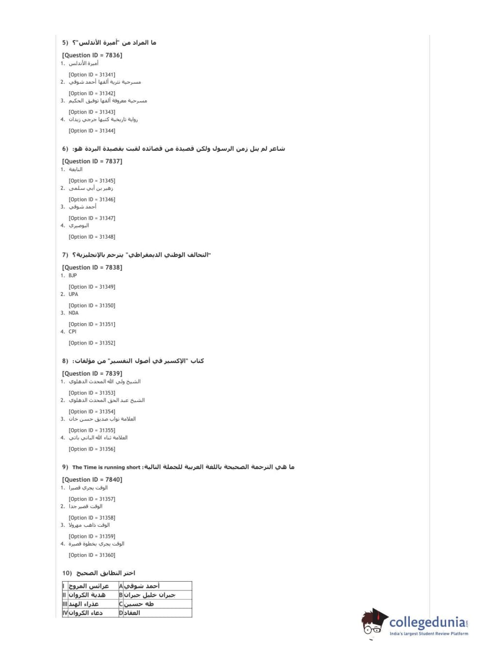 DUET 2021 DU MA Arabic Question paper with answer key pdf conducted on September 30, 2021 in Shift 1 is available for download. The exam was successfully organized by National Testing Agency (NTA). The question paper comprised a total of 50 questions.
