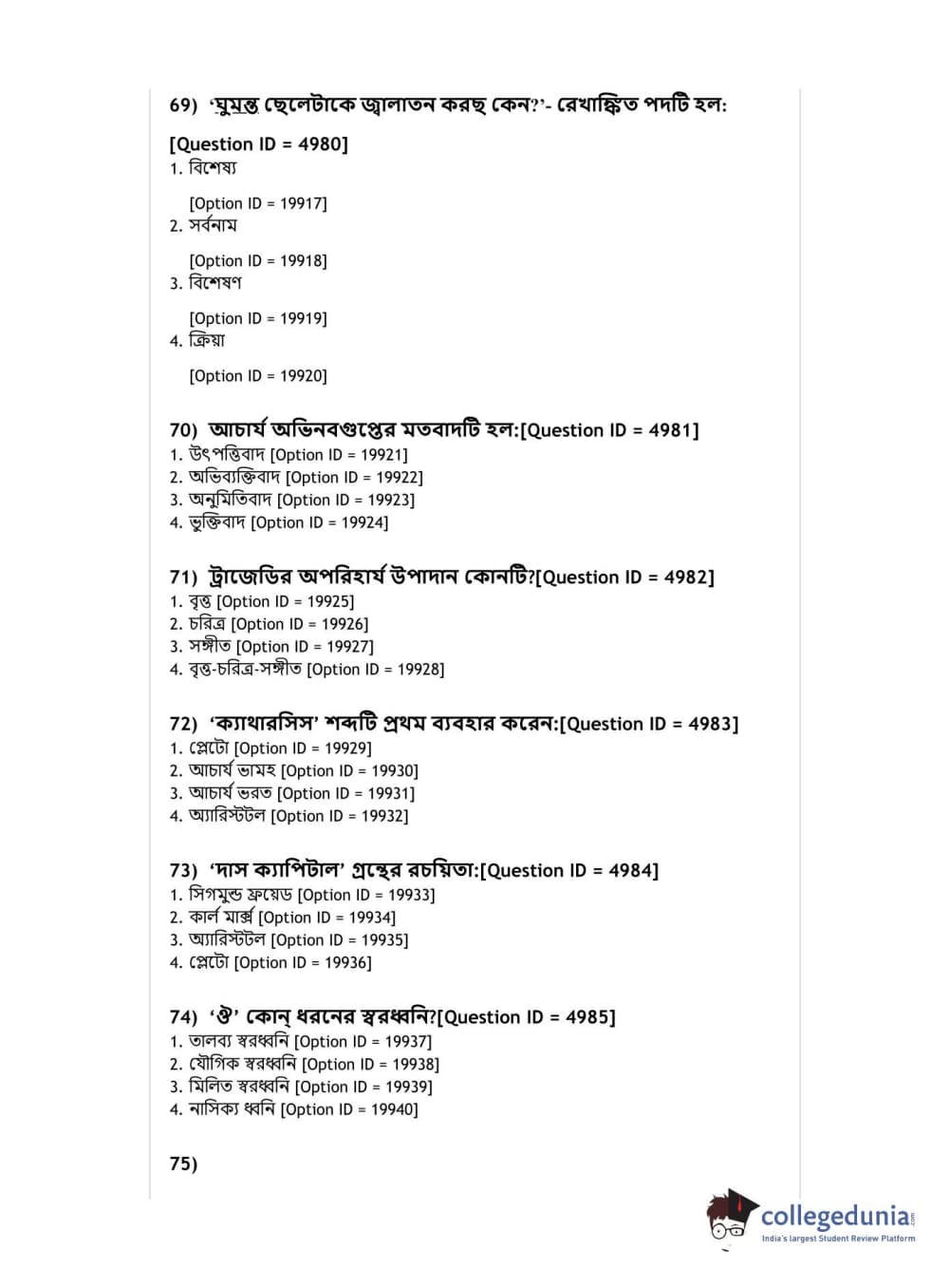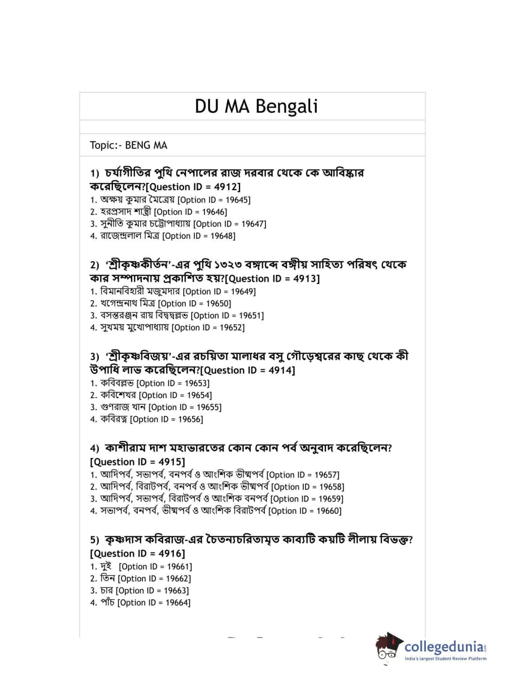 DUET 2021 DU MA Bengali Question paper with answer key pdf conducted on January 10, 2021 in Shift 2 is available for download. The exam was successfully organized by National Testing Agency (NTA). The question paper comprised a total of 100 questions.