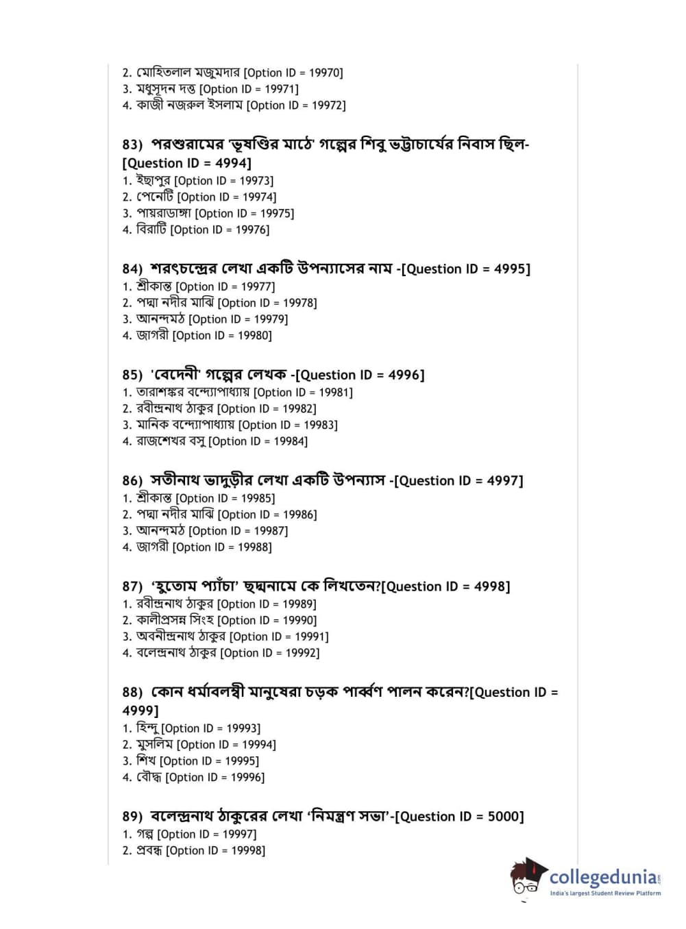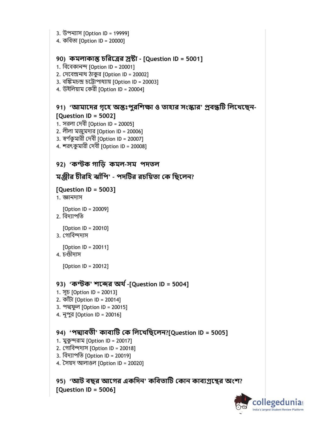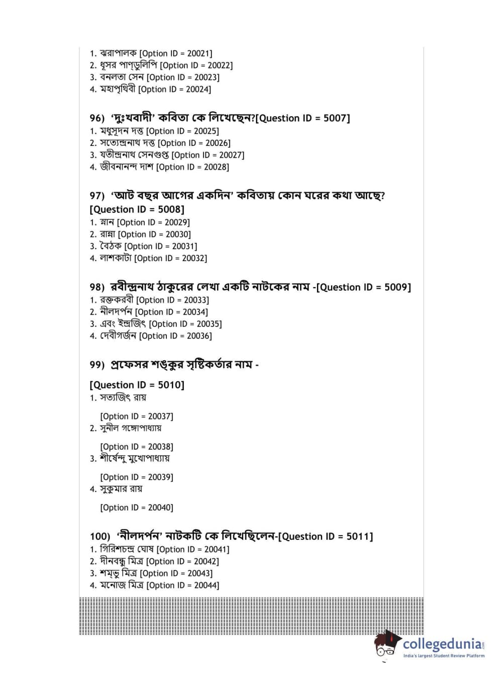 DUET 2021 DU MA Bengali Question Paper with Answer Key PDFs Shift 2