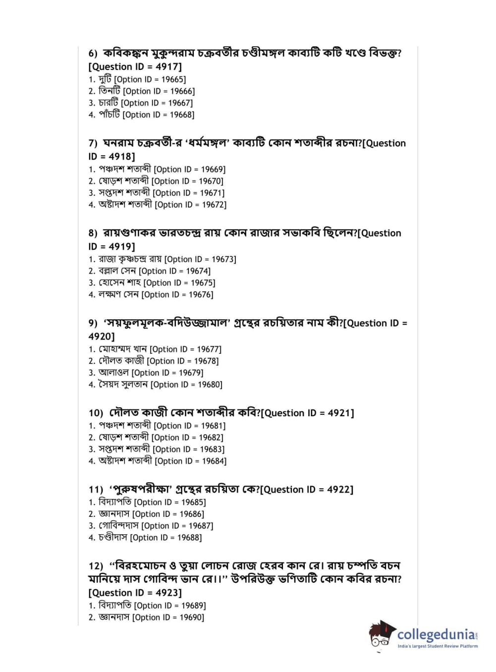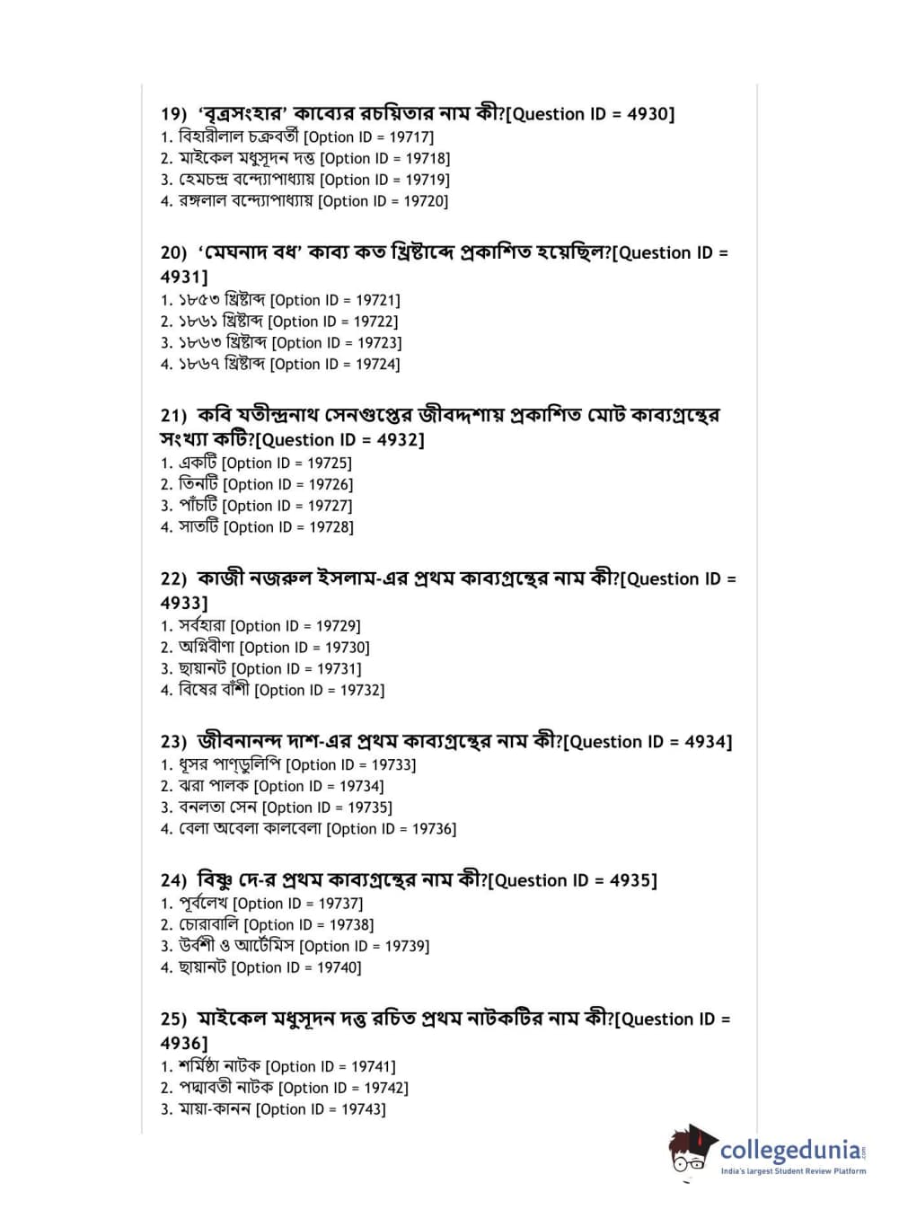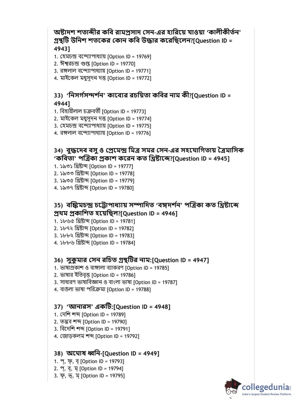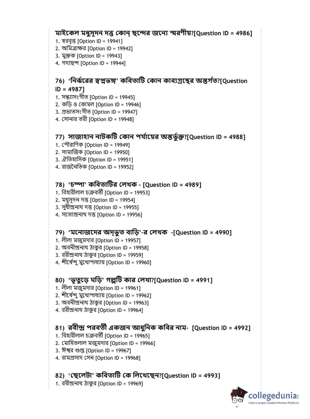 DUET 2021 DU MA Bengali Question Paper with Answer Key PDFs Shift 2