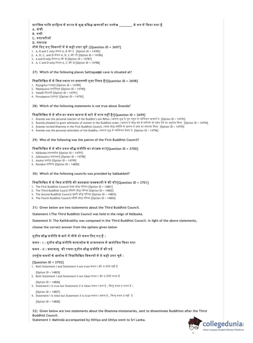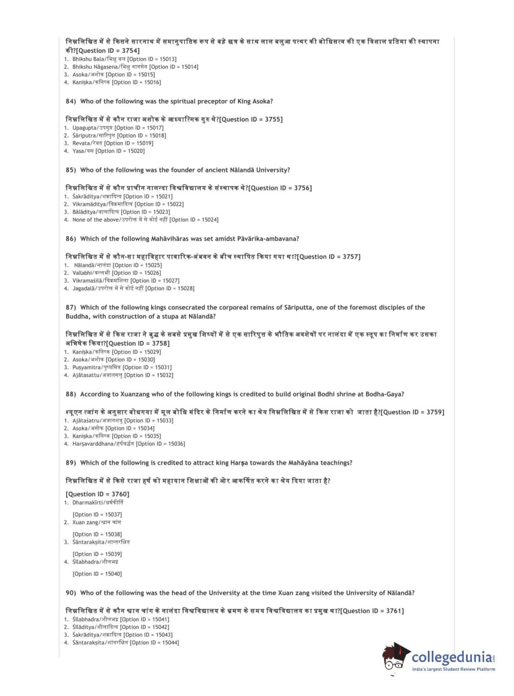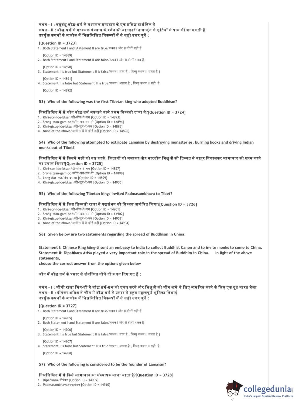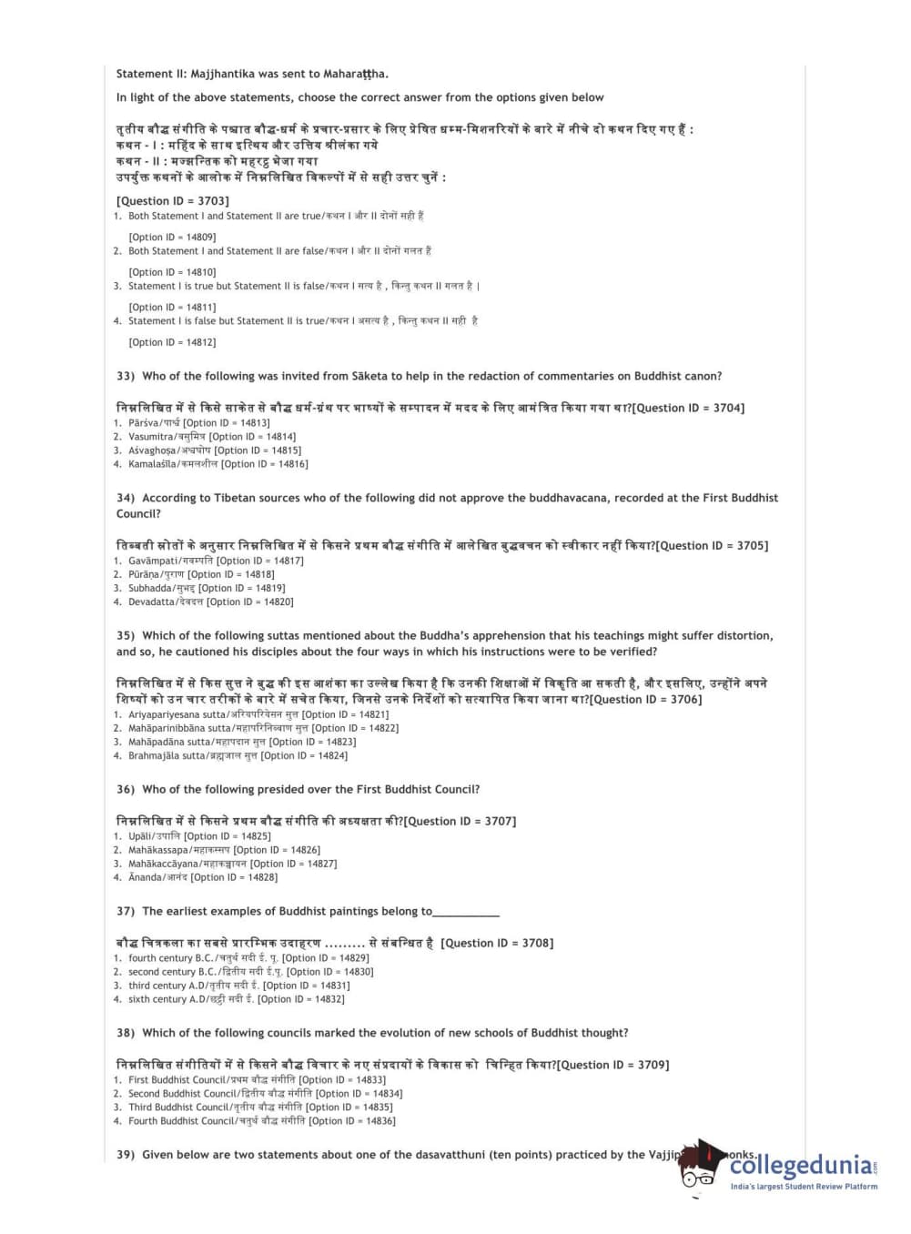 DUET 2021 DU MA Buddhist Studies Question Paper with Answer Key PDFs Shift 2