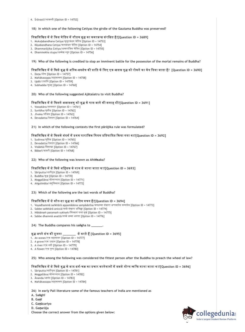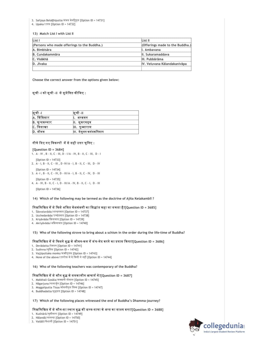 | DUET 2021 DU MA Buddhist Studies Question Paper PDF | DUET 2021 DU MA Buddhist Studies Answer Key PDF |