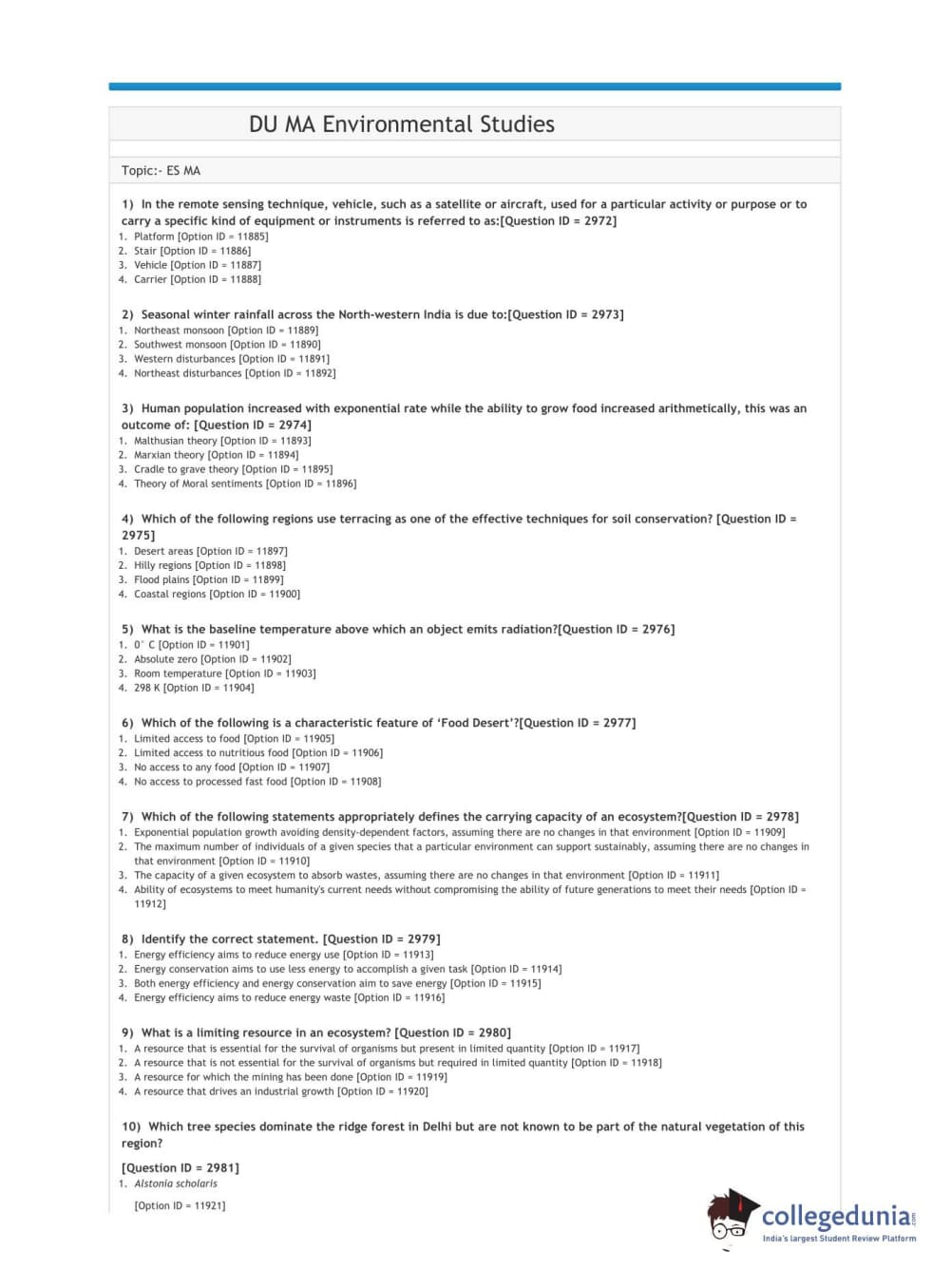 | DUET 2021 DU MA Environmental Studies Question Paper PDF | DUET 2021 DU MA Environmental Studies Answer Key PDF |