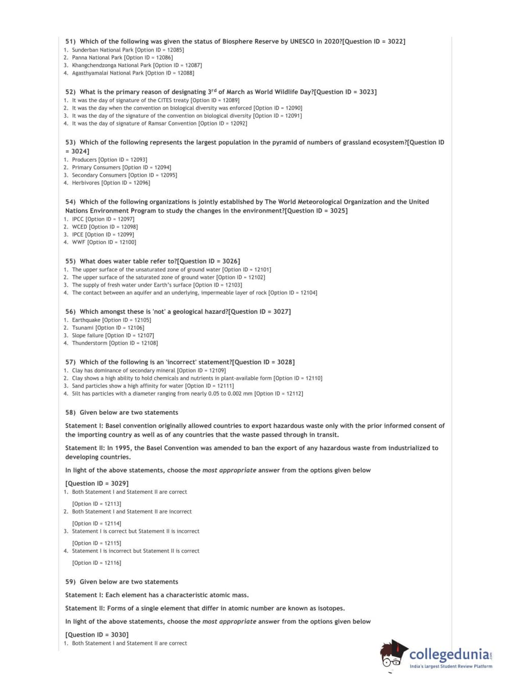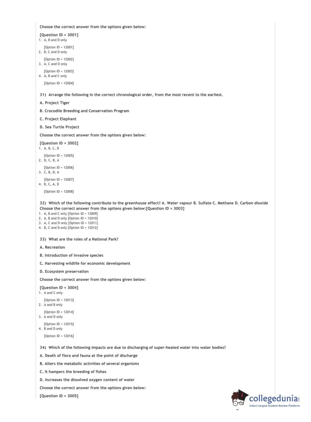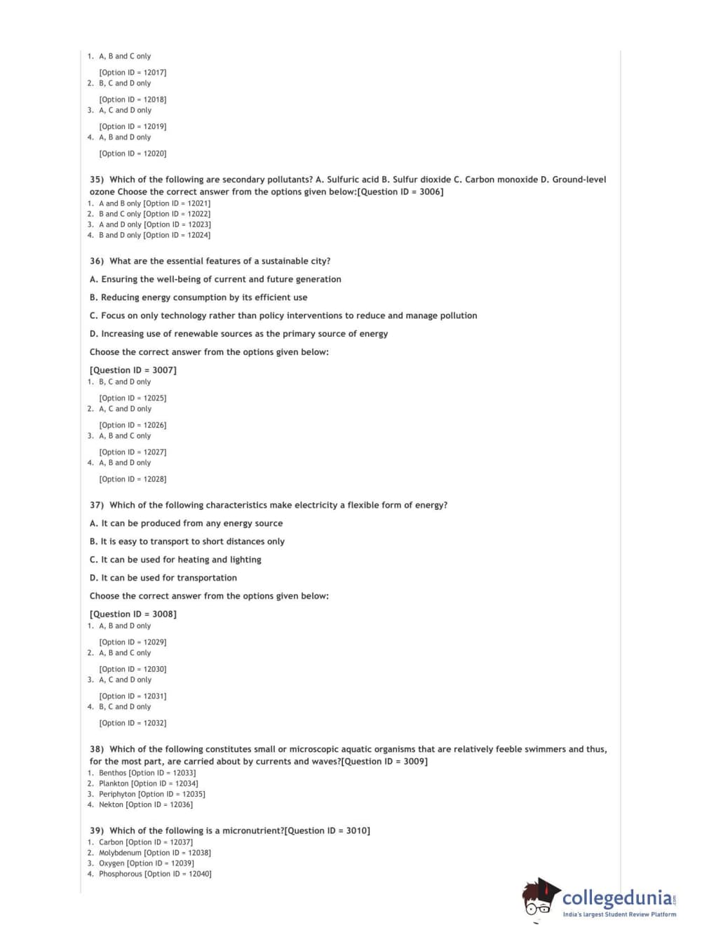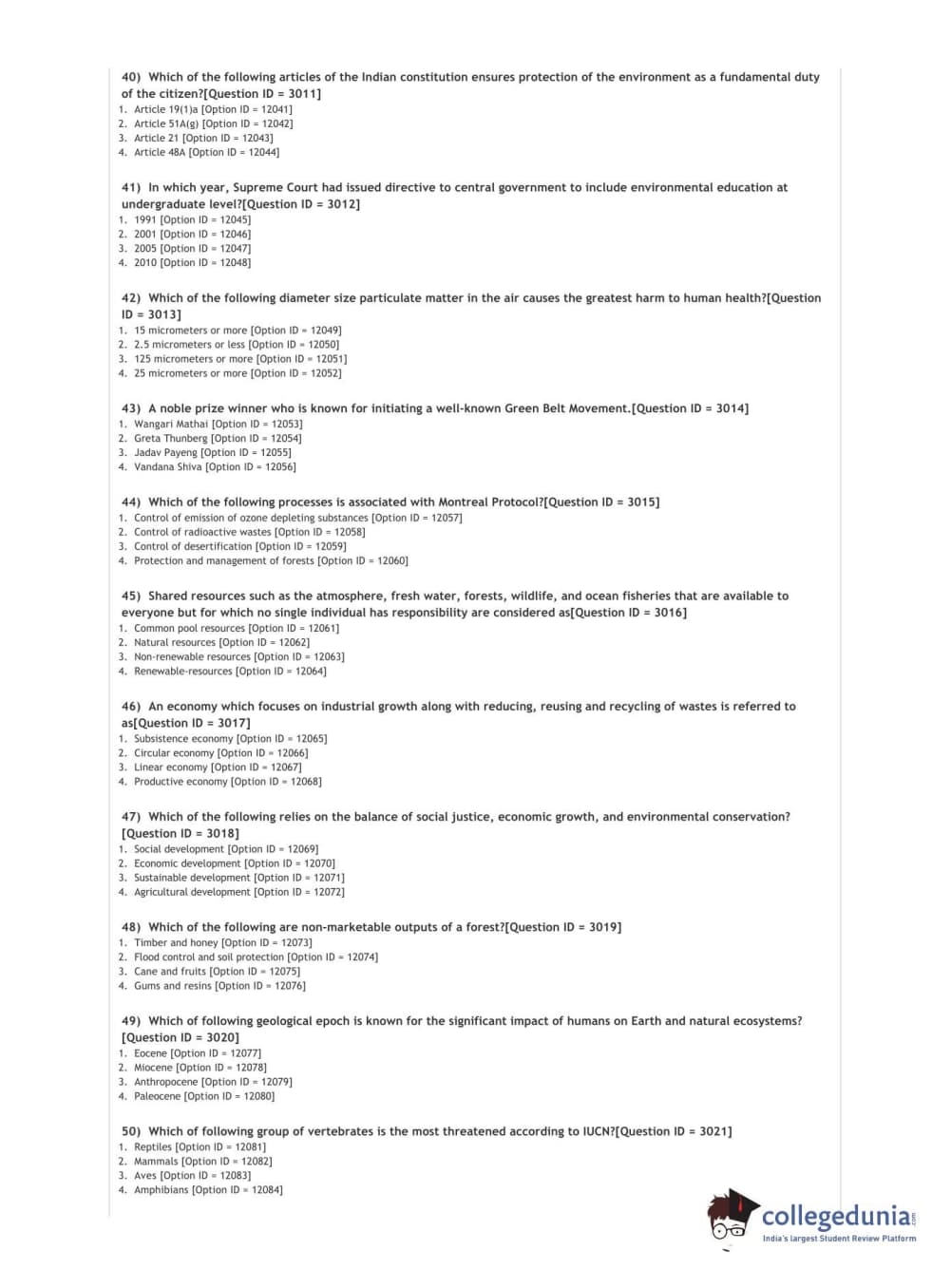 DUET 2021 DU MA Environmental Studies Question Paper with Answer Key PDFs Shift 1