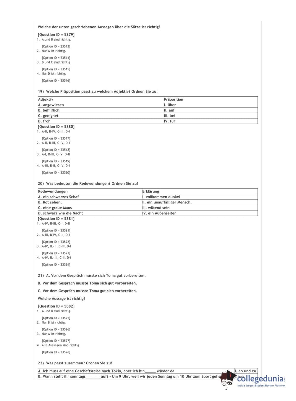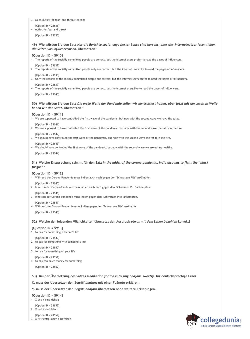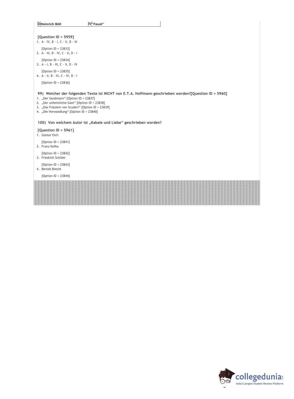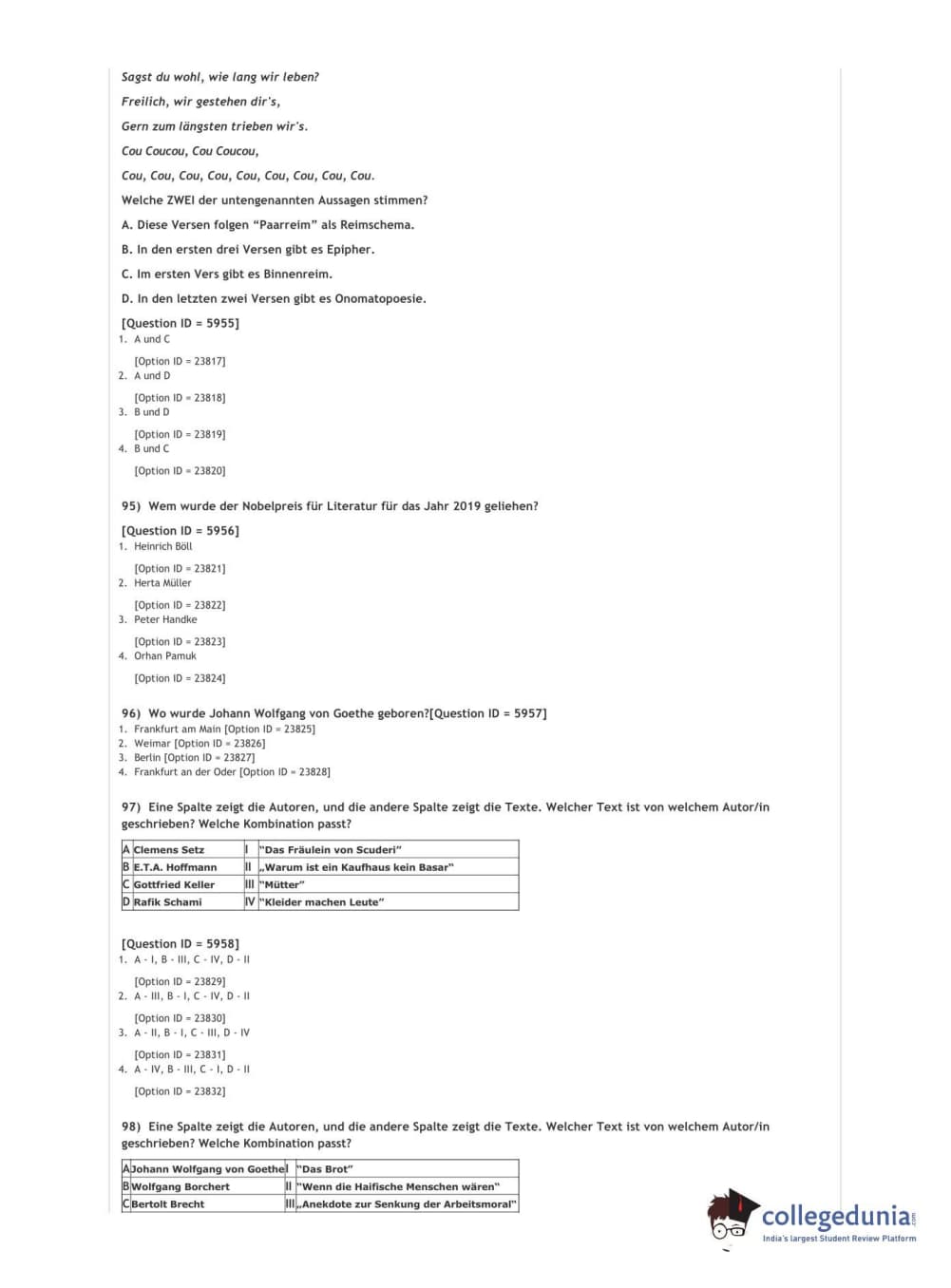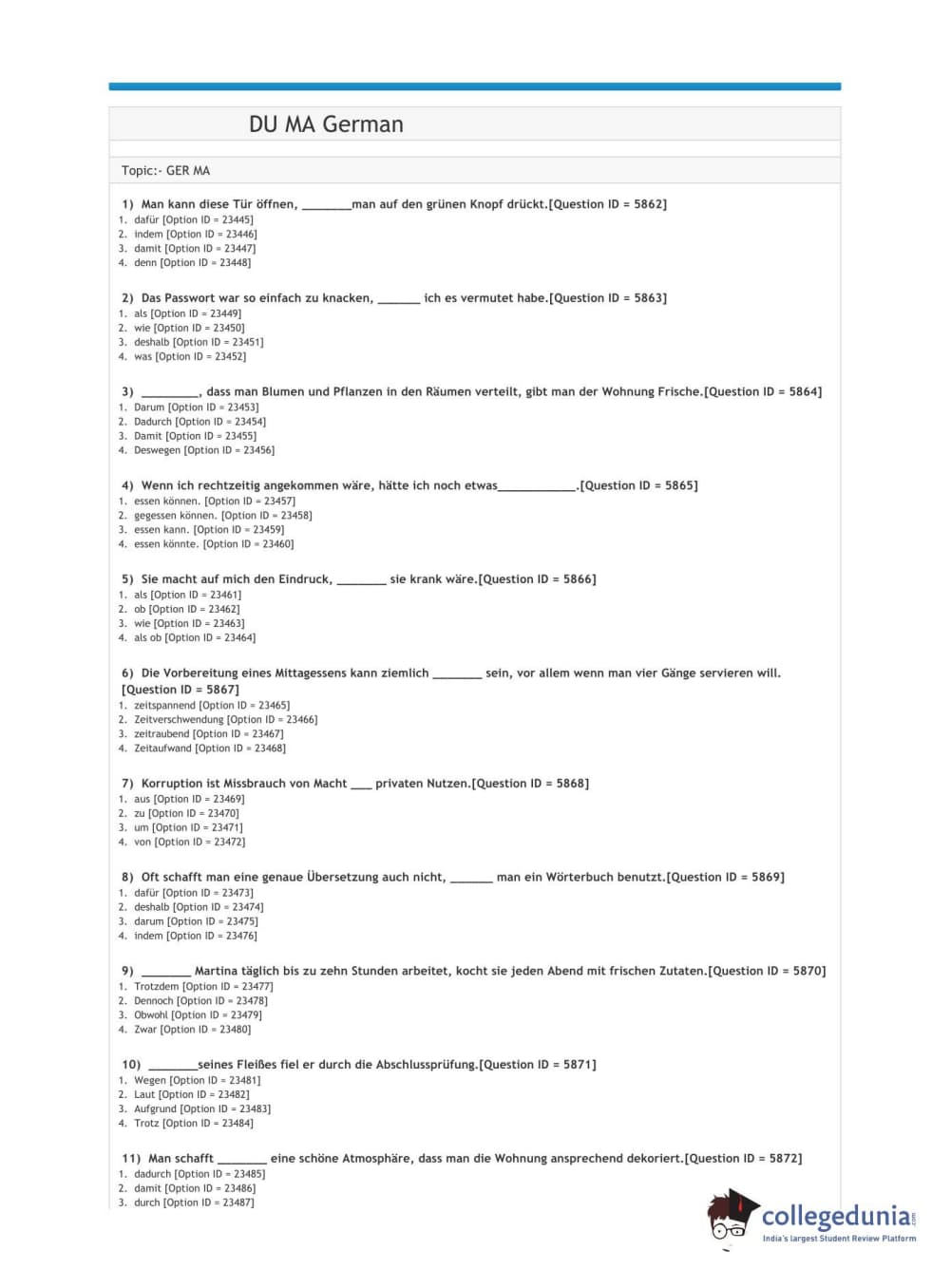 DUET 2021 DU MA German Question Paper with Answer Key PDFs Shift 2